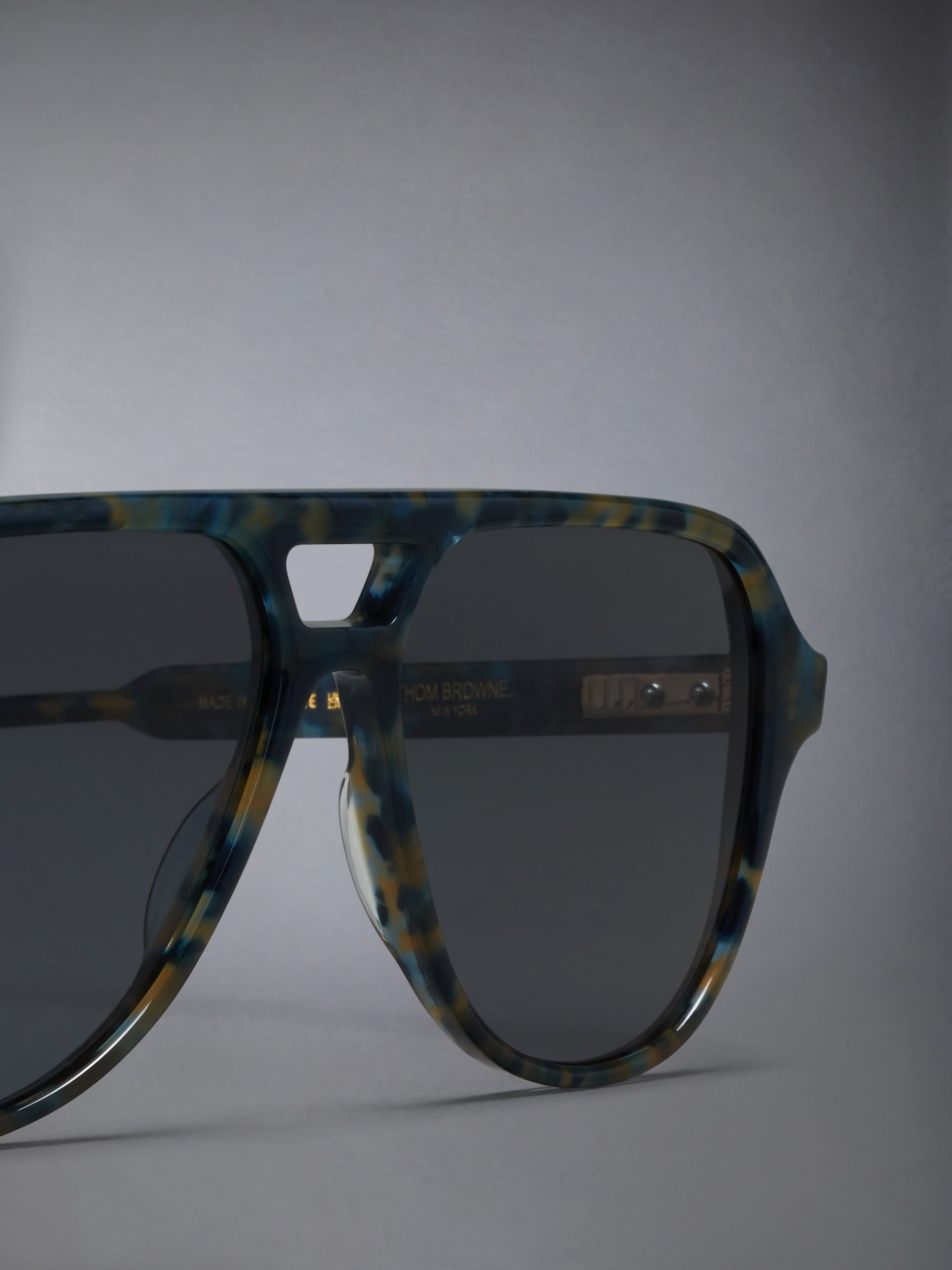 Featuring a rich blend of blue. green. and brown tortoise-shell hues. these striking frames are Thom’s modern interpretation of the iconic aviator silhouette.