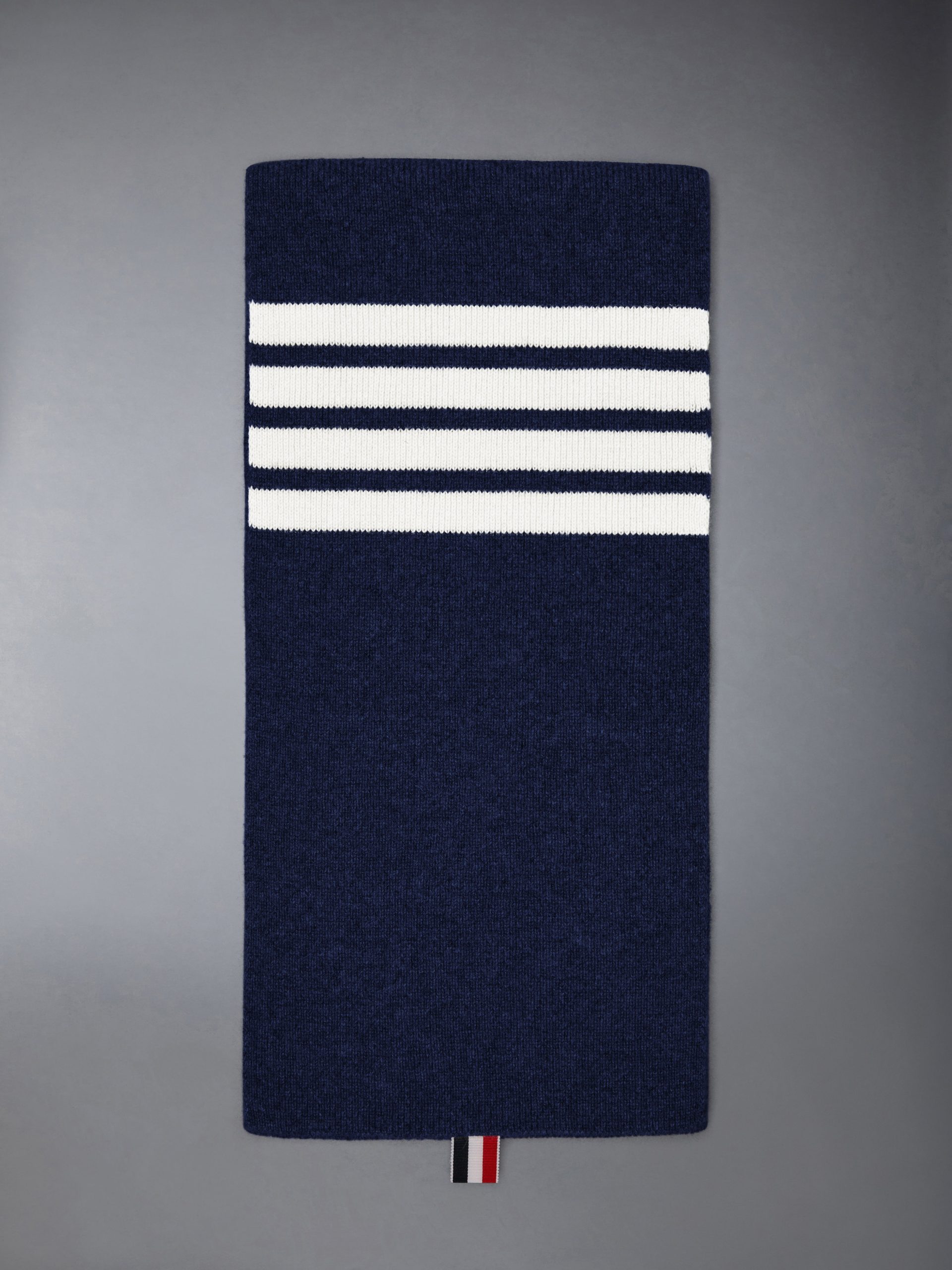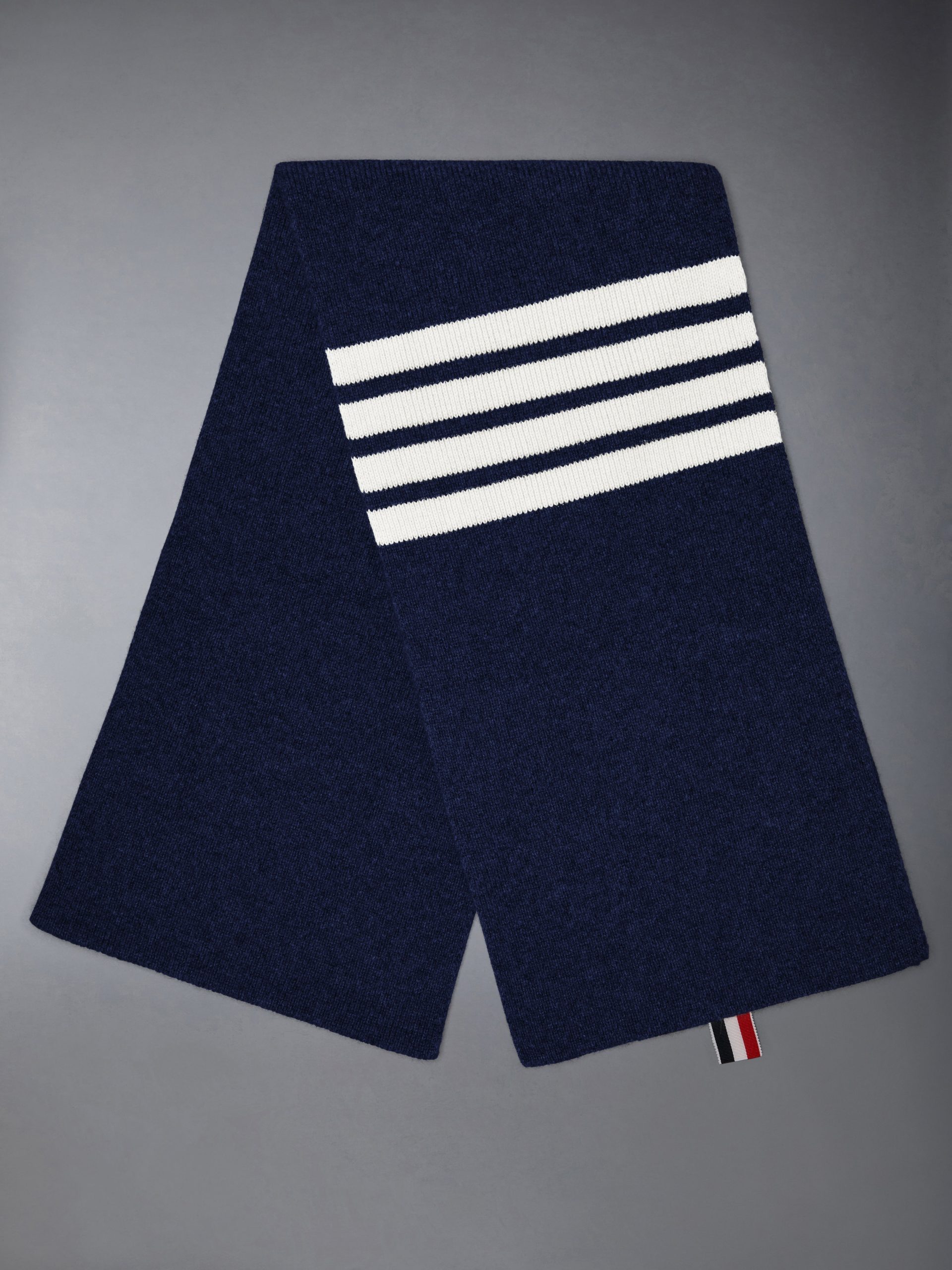 A statement-making essential for cooler months. our Cashmere Rib 4-Bar Scarfis adorned with Thom Browne’s signature 4-Bar Stripes.