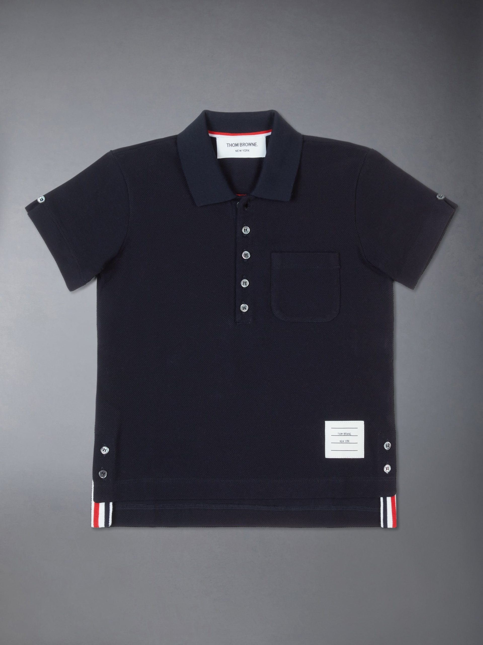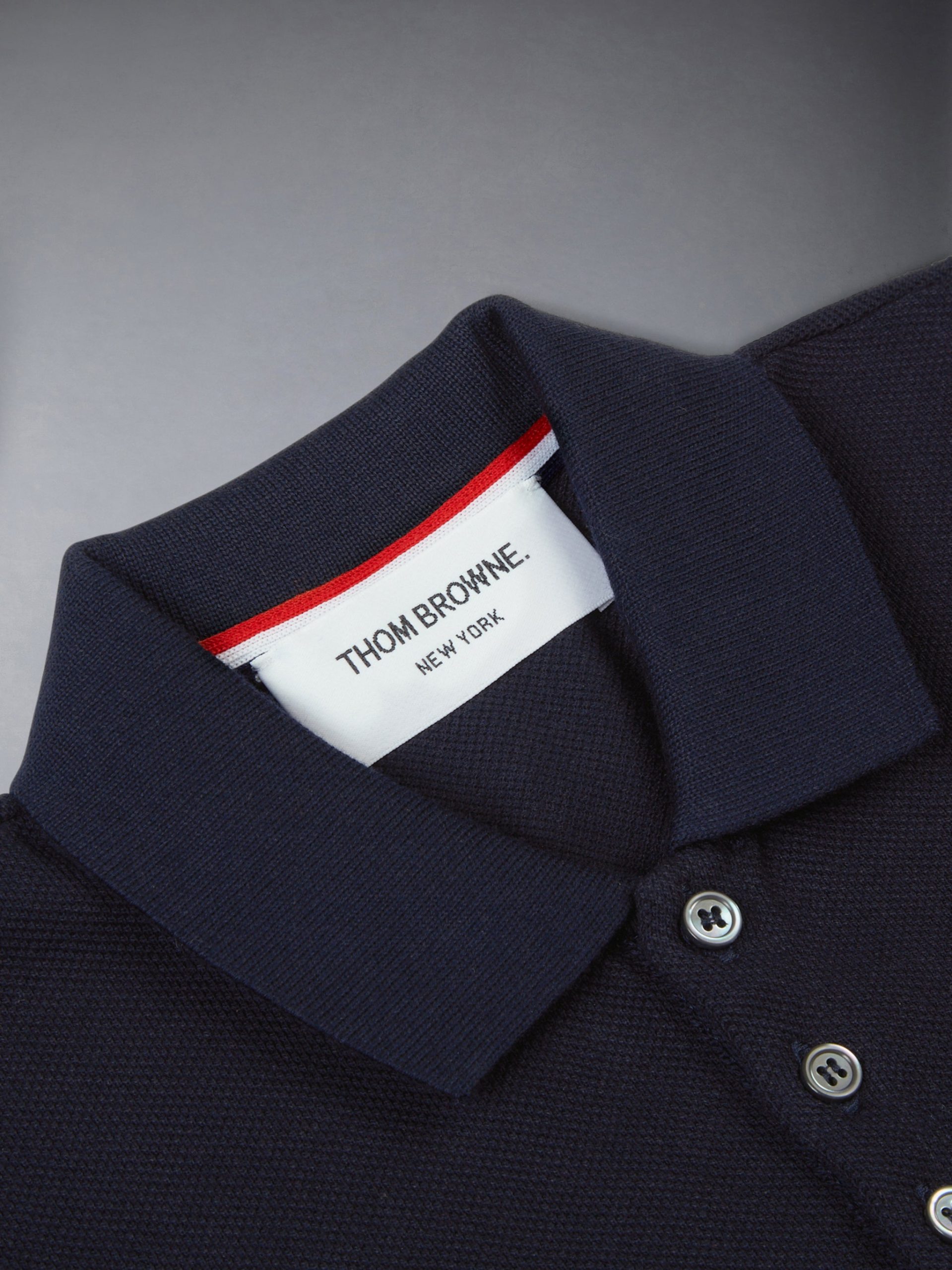 Made to dress up or down. this breathable cotton polo features signature Thom Browne emblems and a small chest pocket for essentials. A versatile staple that blends casual ease with sophisticated style.