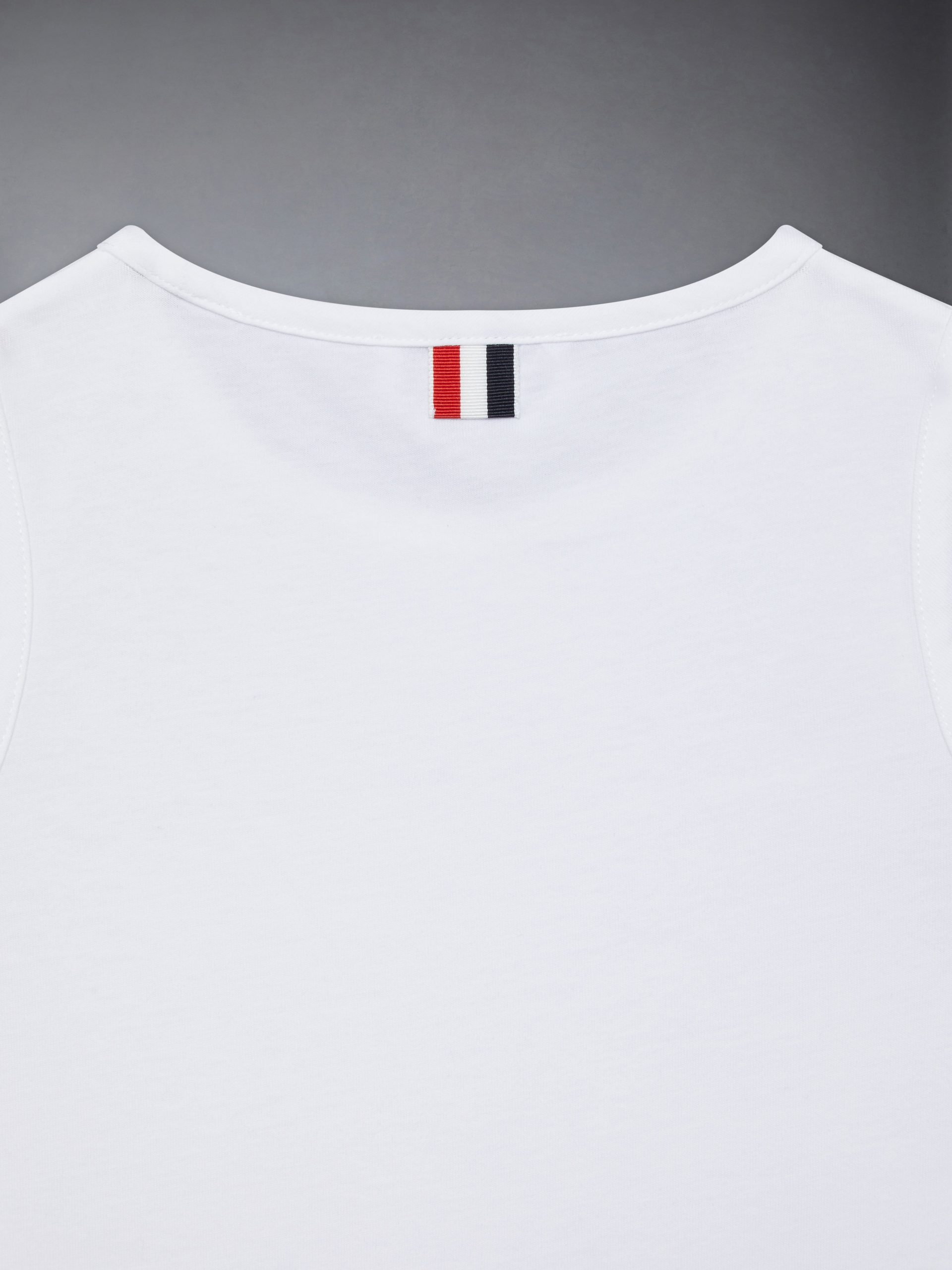 A casual dress elevated with our signature 4-bar detailing and name tag applique. Pair it with our Children’s Padded Vitello Calf Leather Heritage Sneakers.