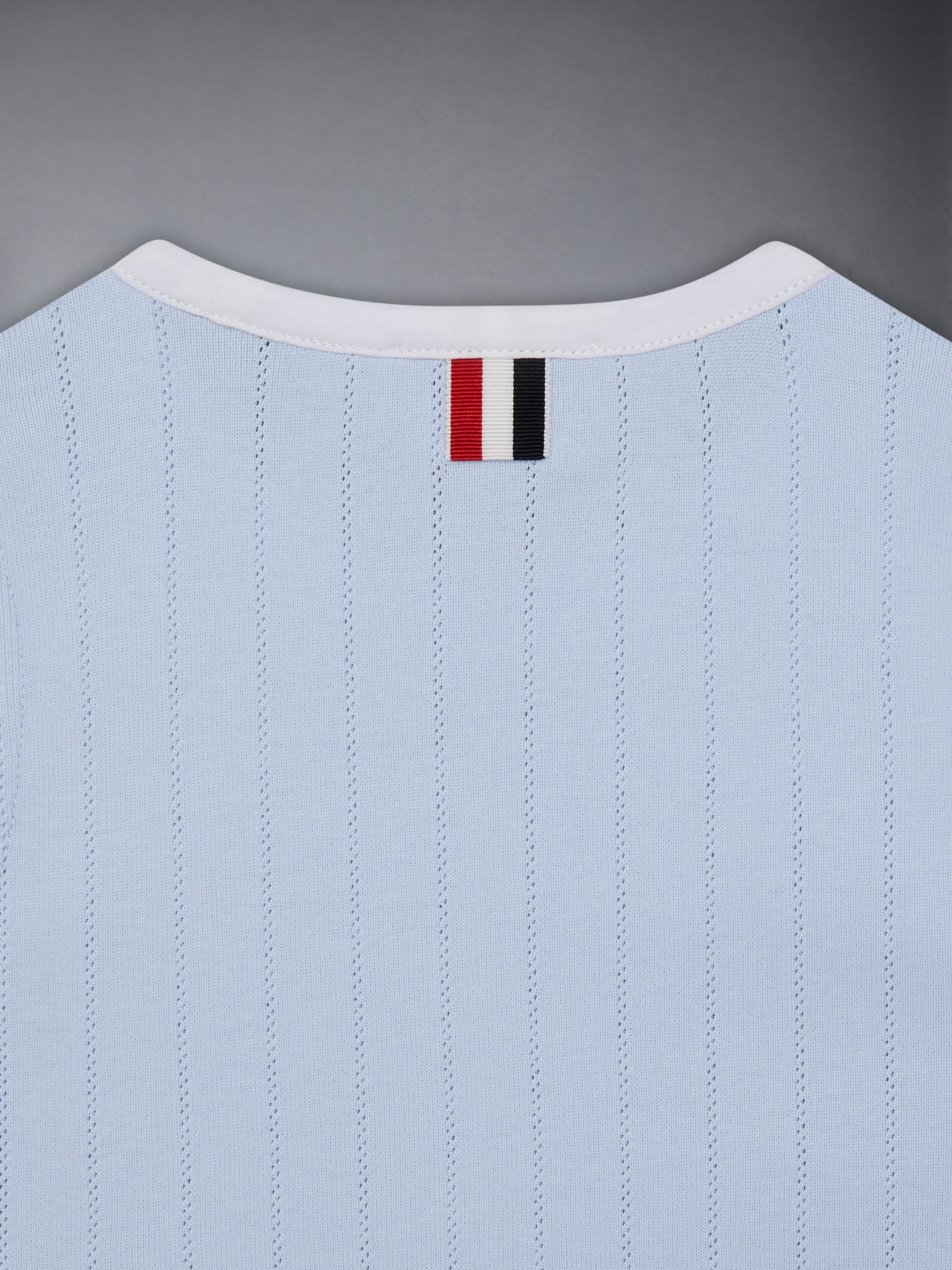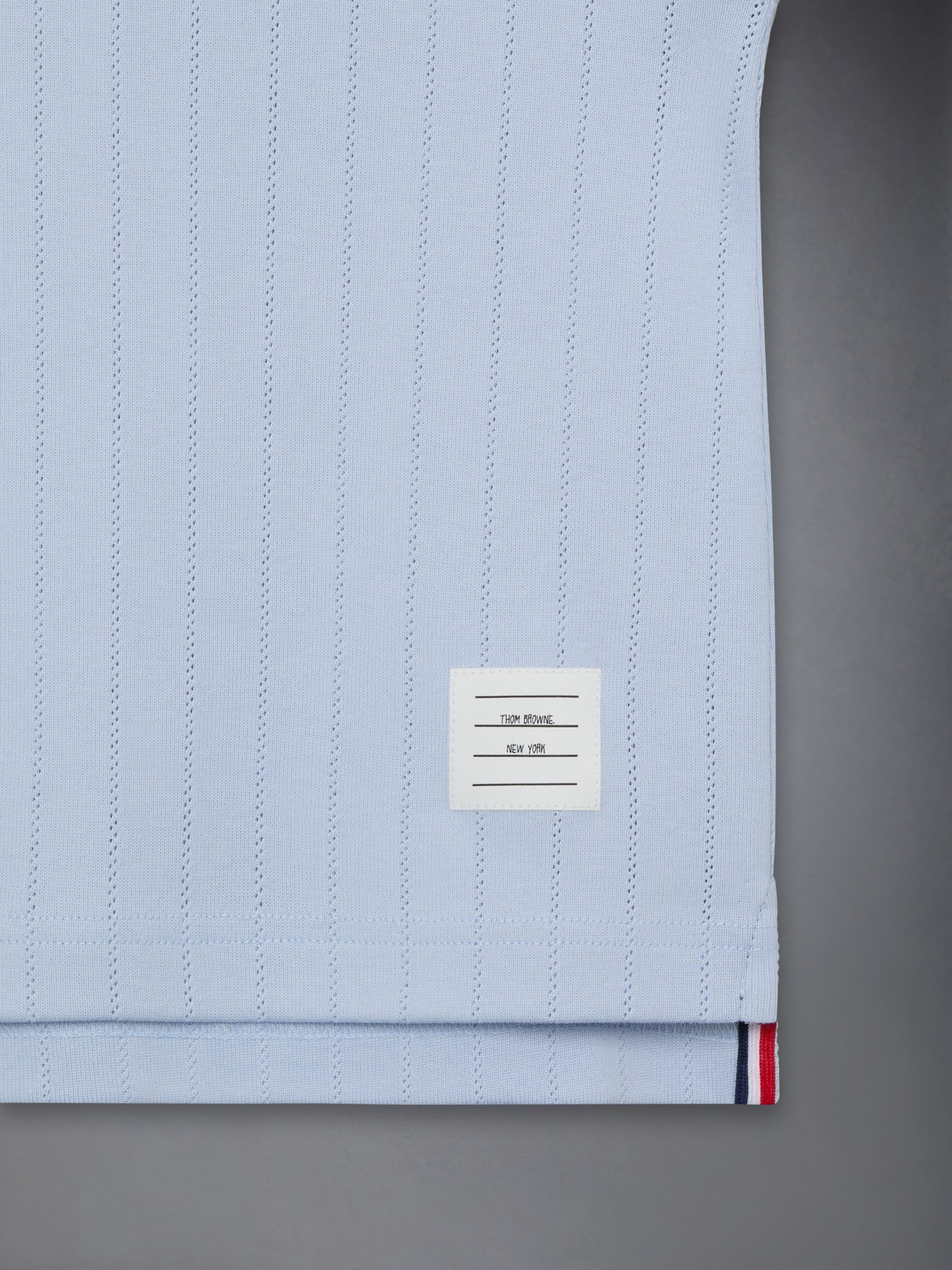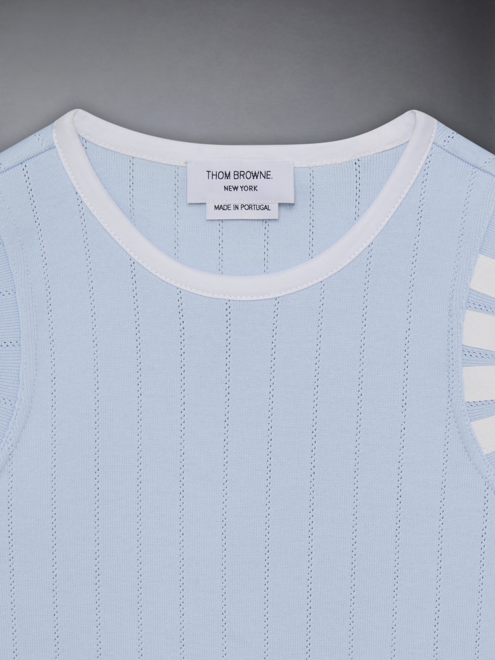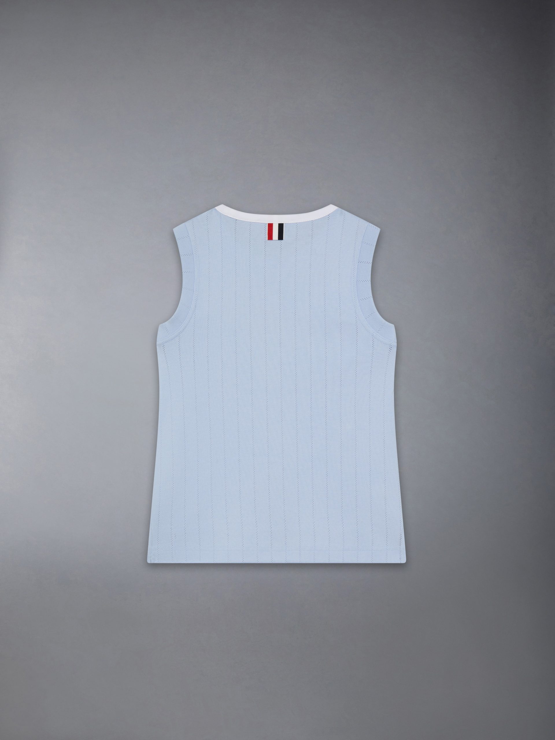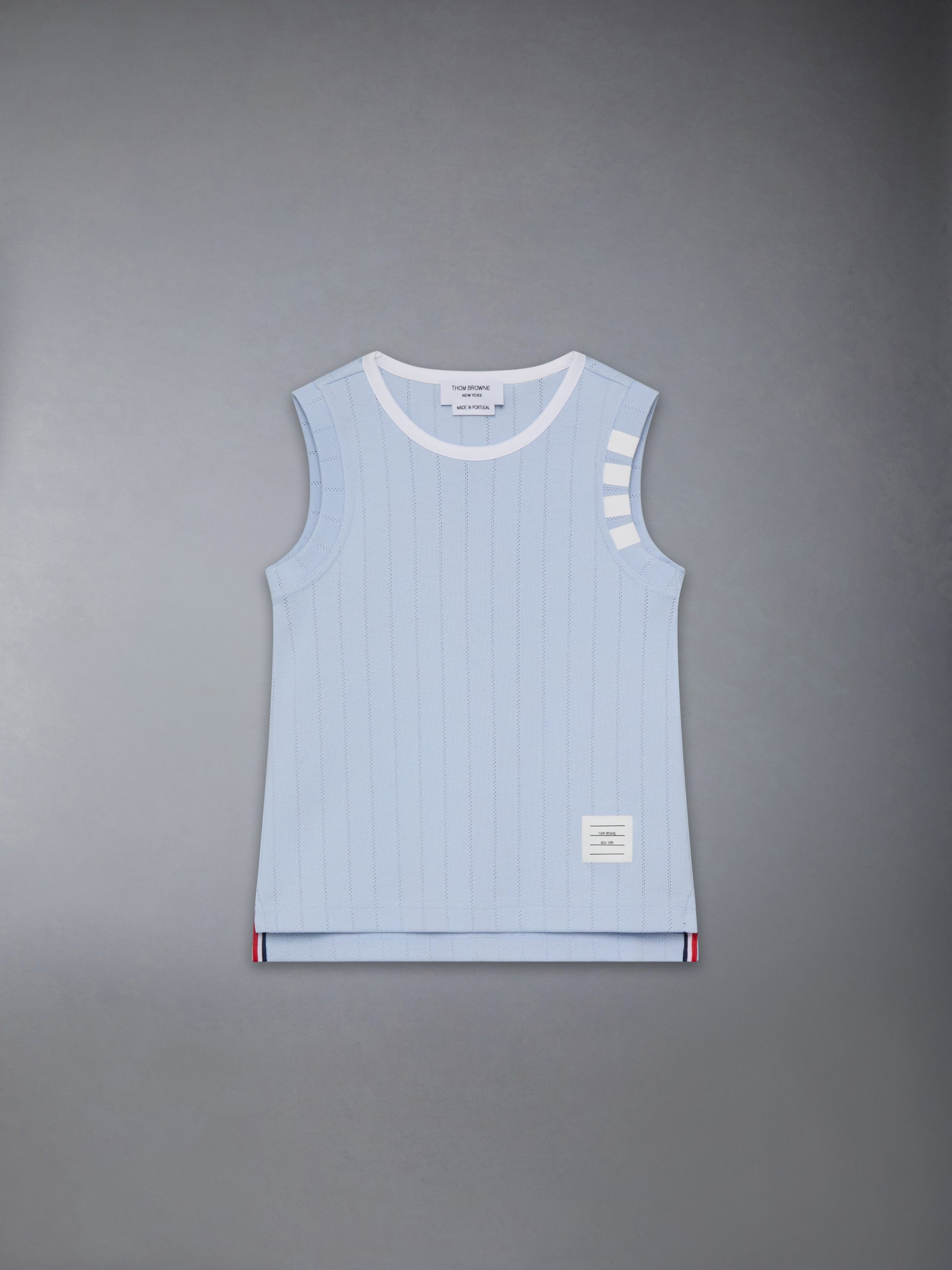 An airy tank top made to be paired with our Pointelle Cotton Mini Pleated Skirt. Featuring our name tag applique at the hem and subtle 4-bar detailing at the left arm.
