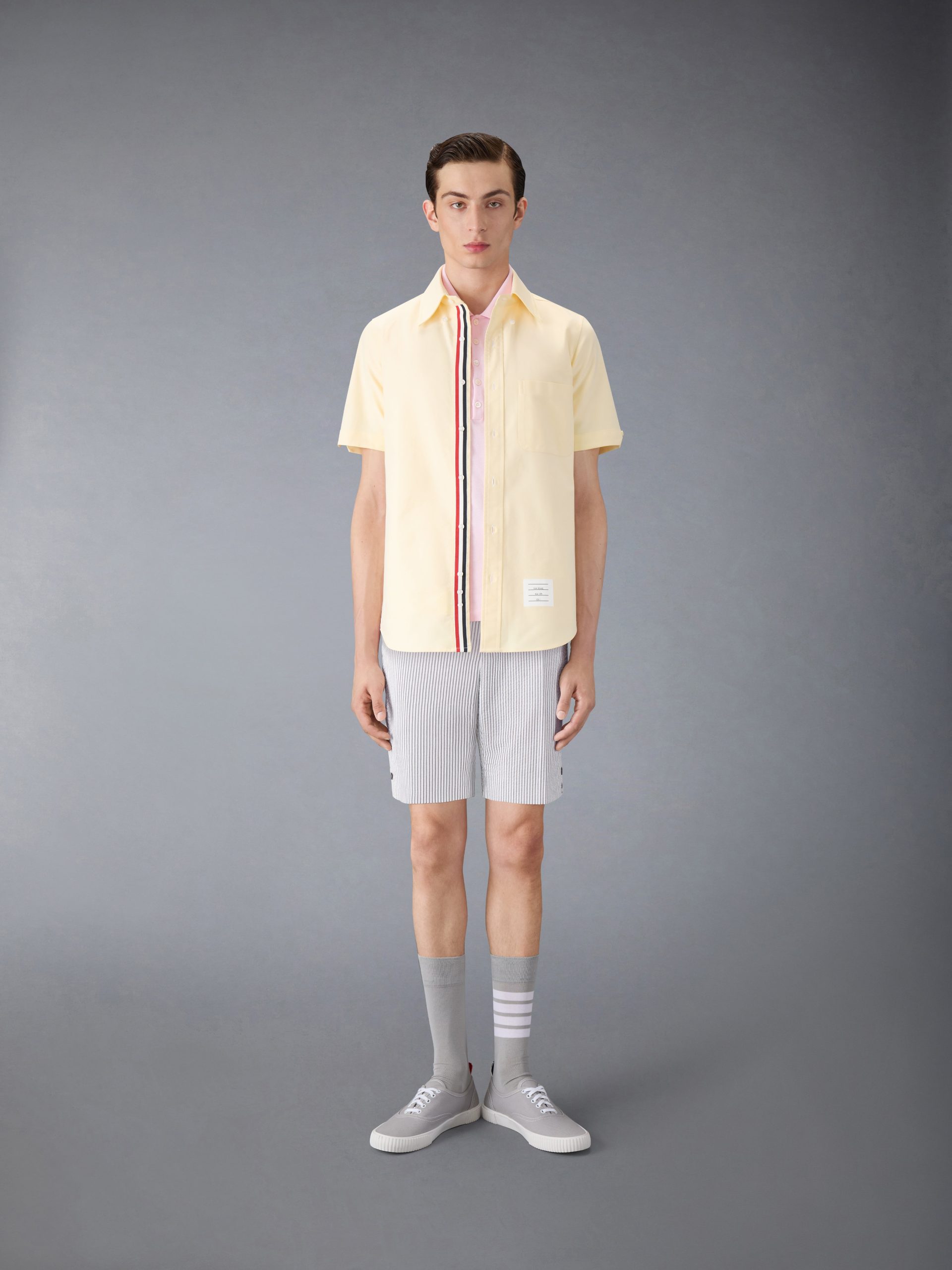 Effortless style meets sophistication in this breathable shirt. A classic polo collar pays homage to our sporty heritage. while breezy cotton fabric will keep you cool.
