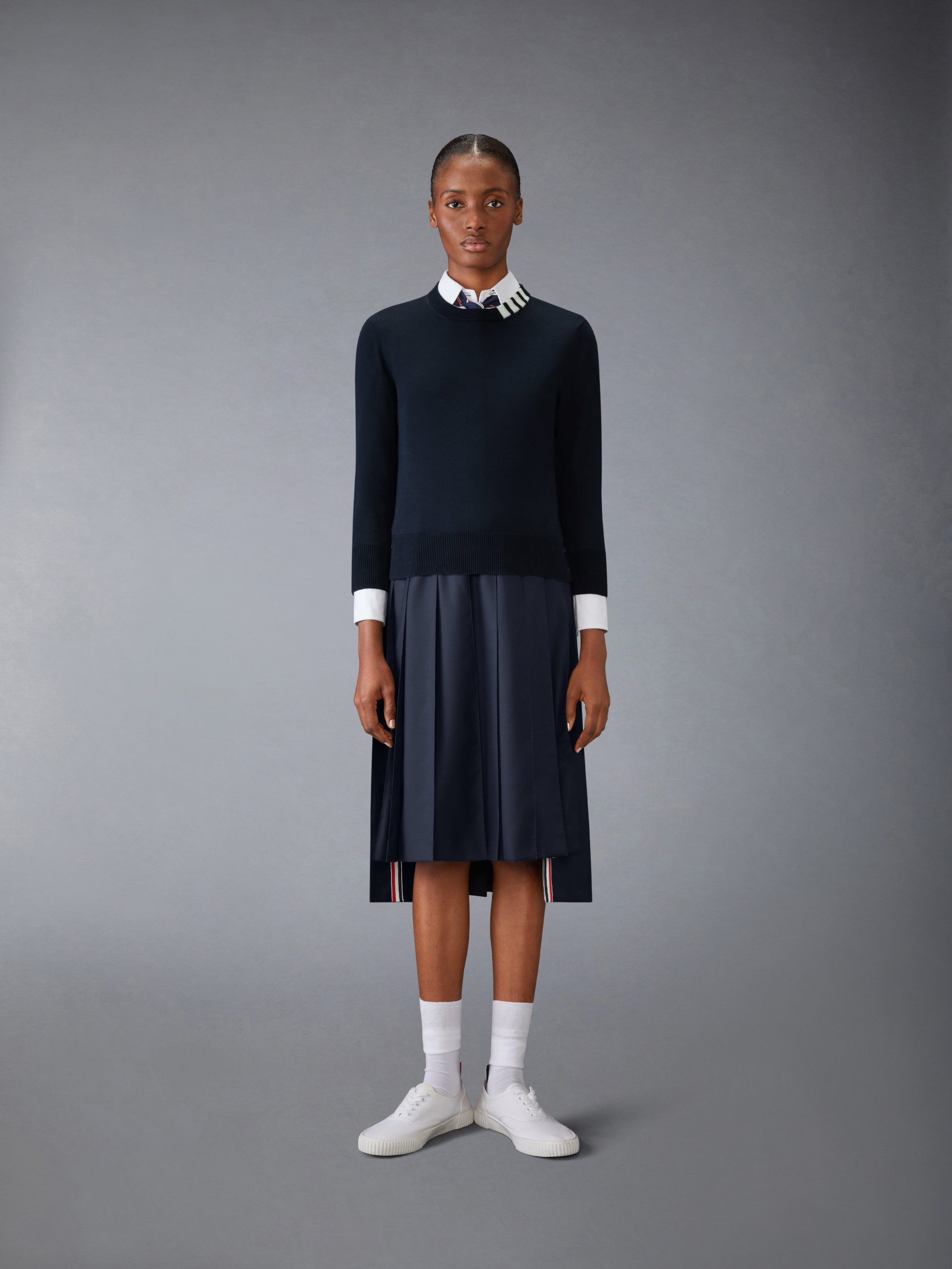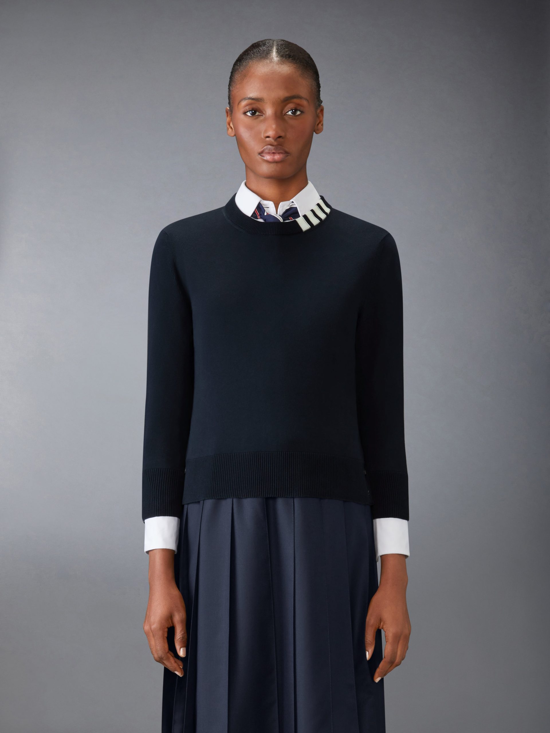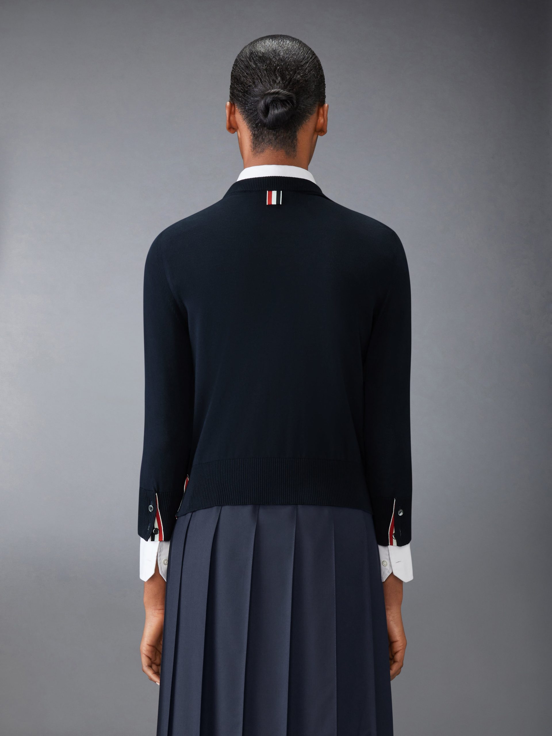 A silhouette that has stood the test of time. this luxe pullover is adorned with signature Thom Browne emblems throughout and tailored to perfection. Layer it over any of our signature dress shirts.