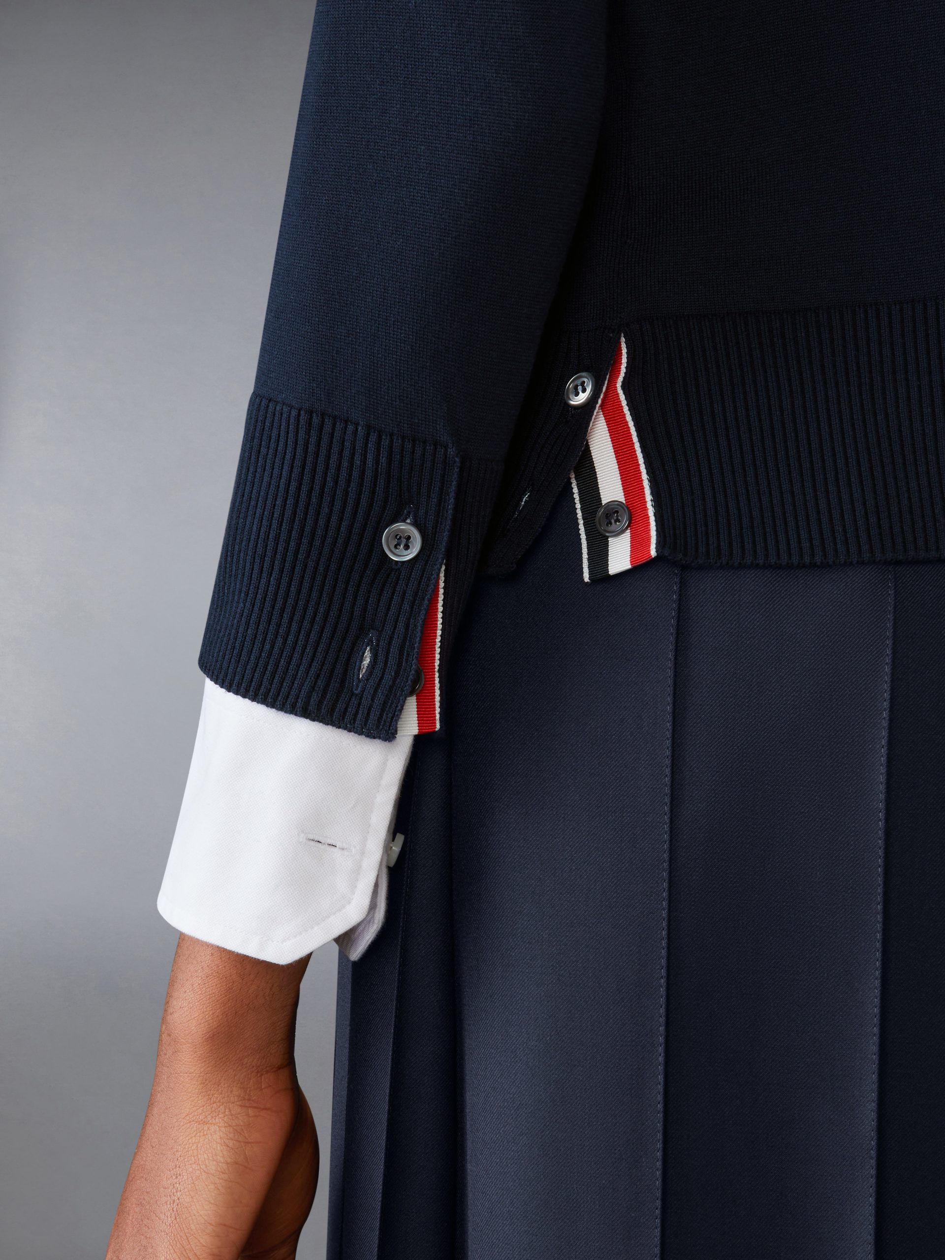 Buttoned cuffs with signature striped grosgrain trim