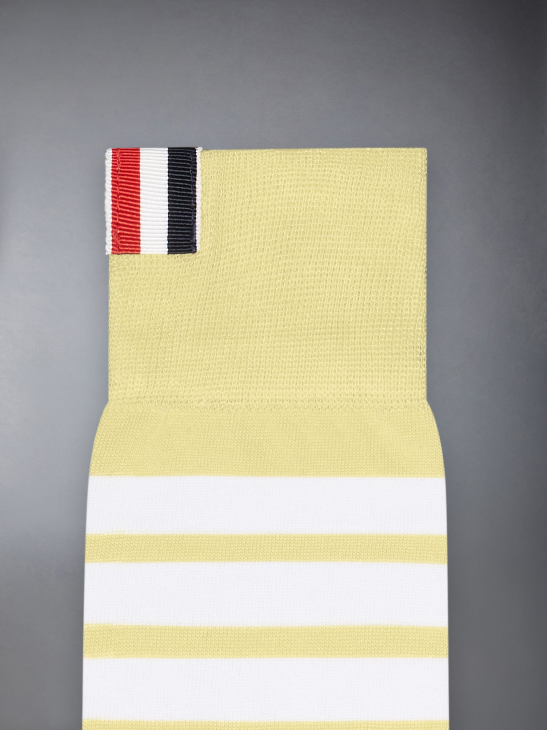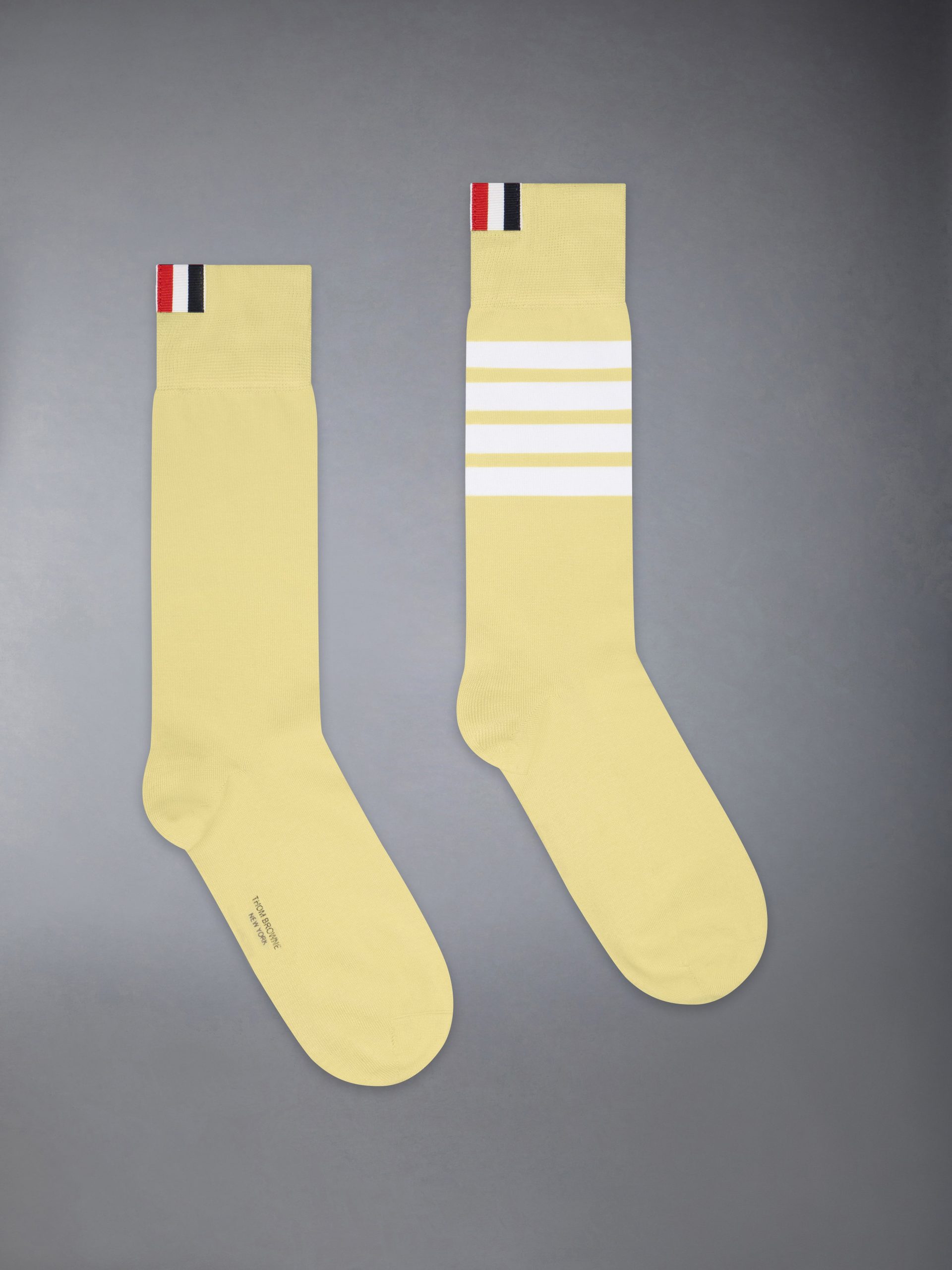 Mid-calf lightweight cotton socks with 4-bar stripe detail at one calf in white.