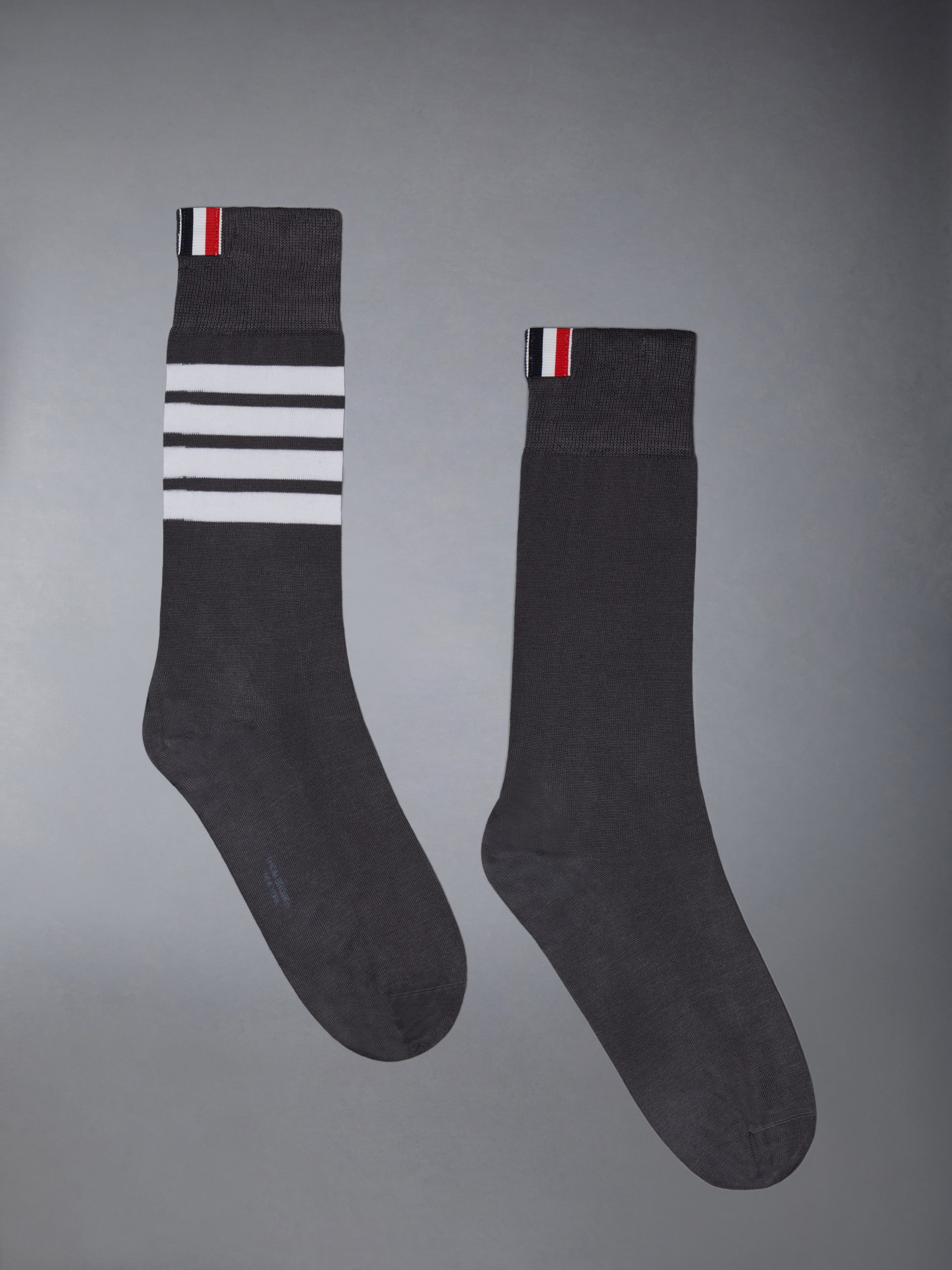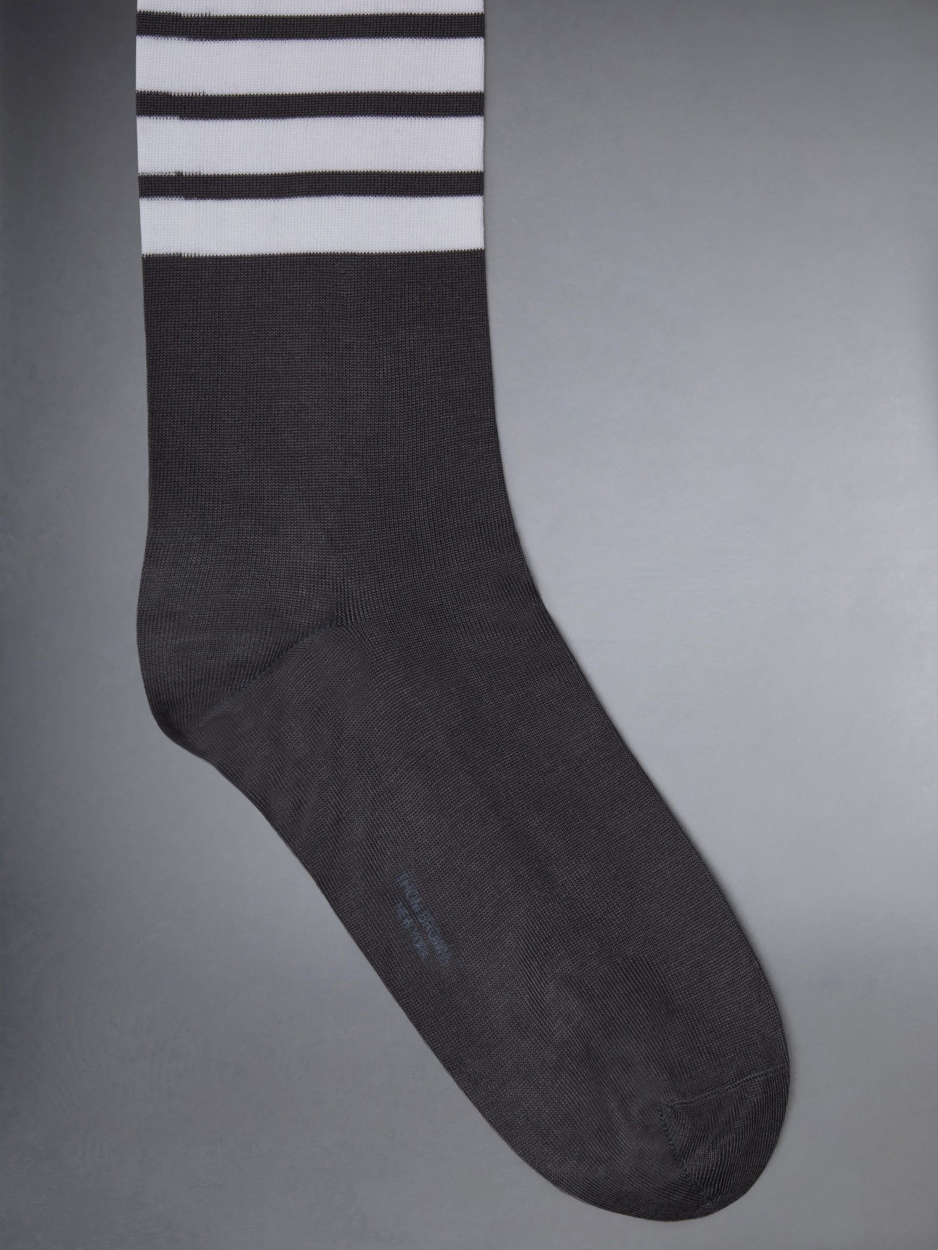 Mid-calf lightweight cotton socks with 4-bar stripe detail at one calf in white.