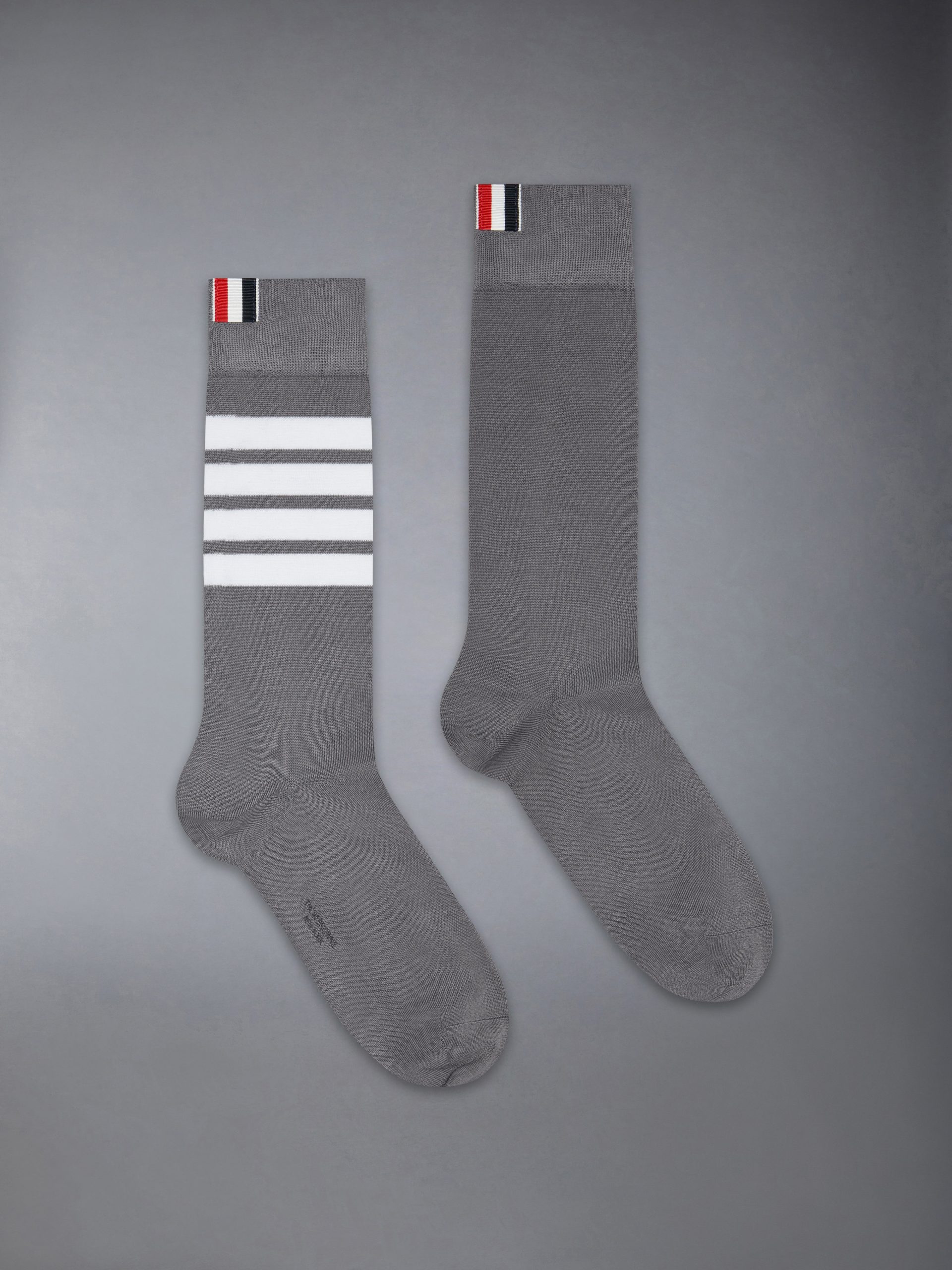 Mid-calf lightweight cotton socks with 4-bar stripe detail at one calf in white.
