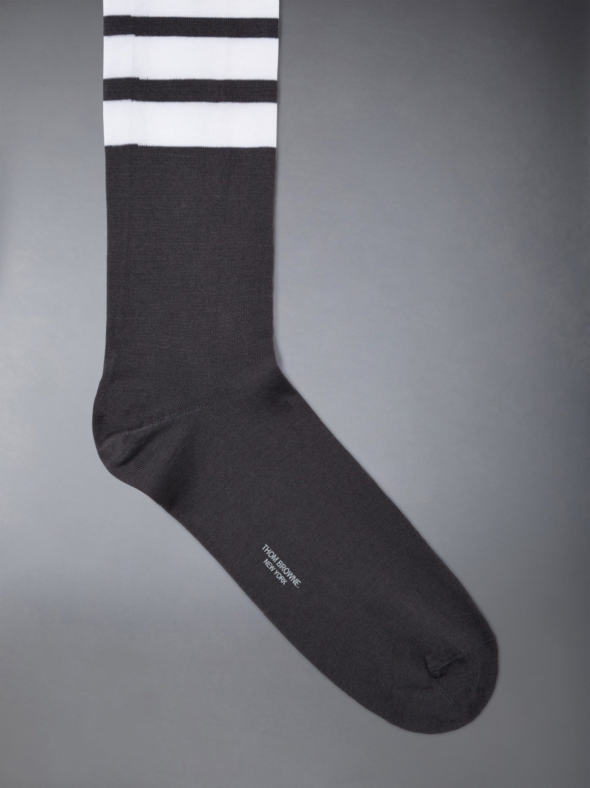 Over-the-calf cotton socks with 4-bar stripe detail at one calf in white.
