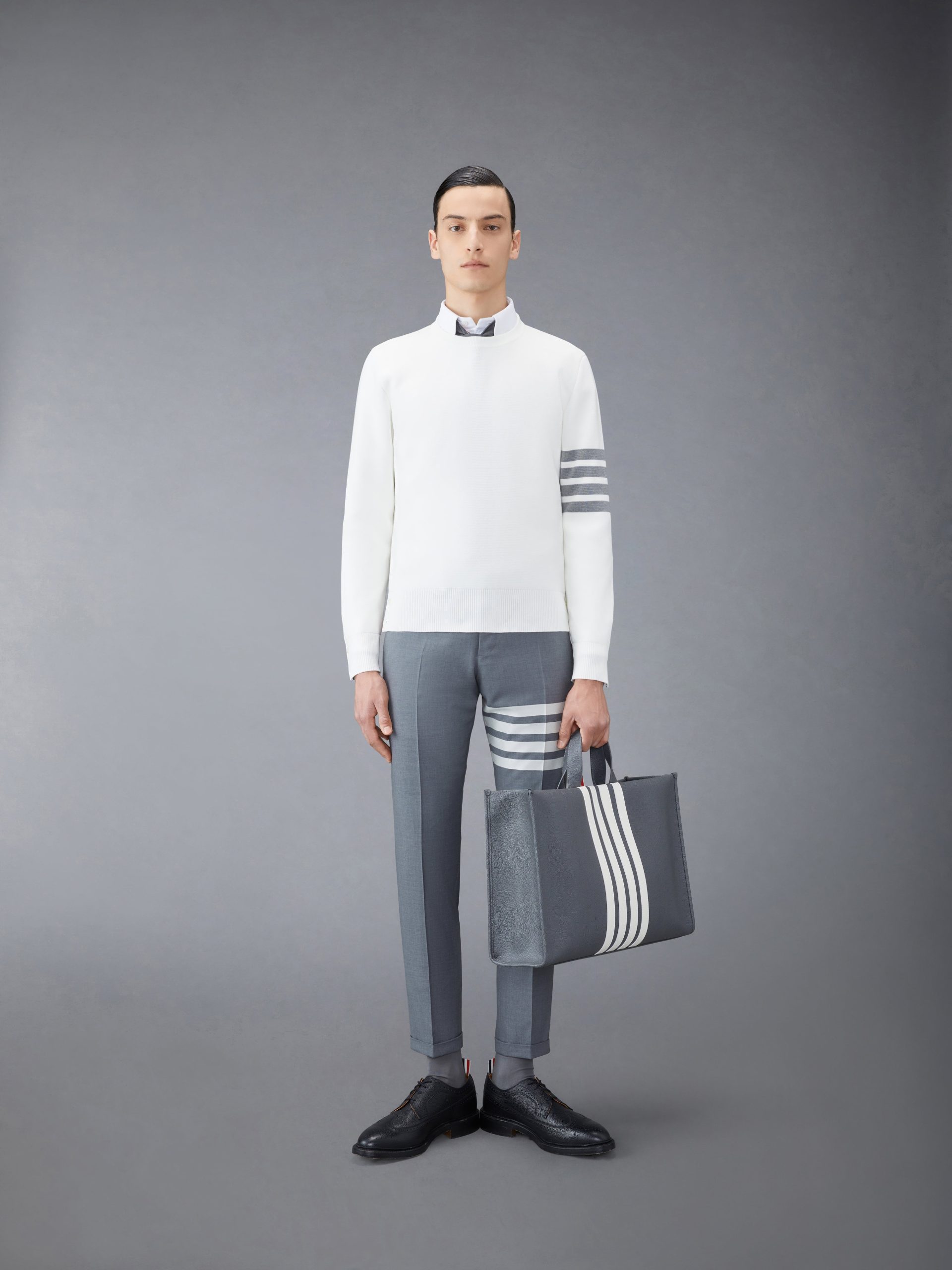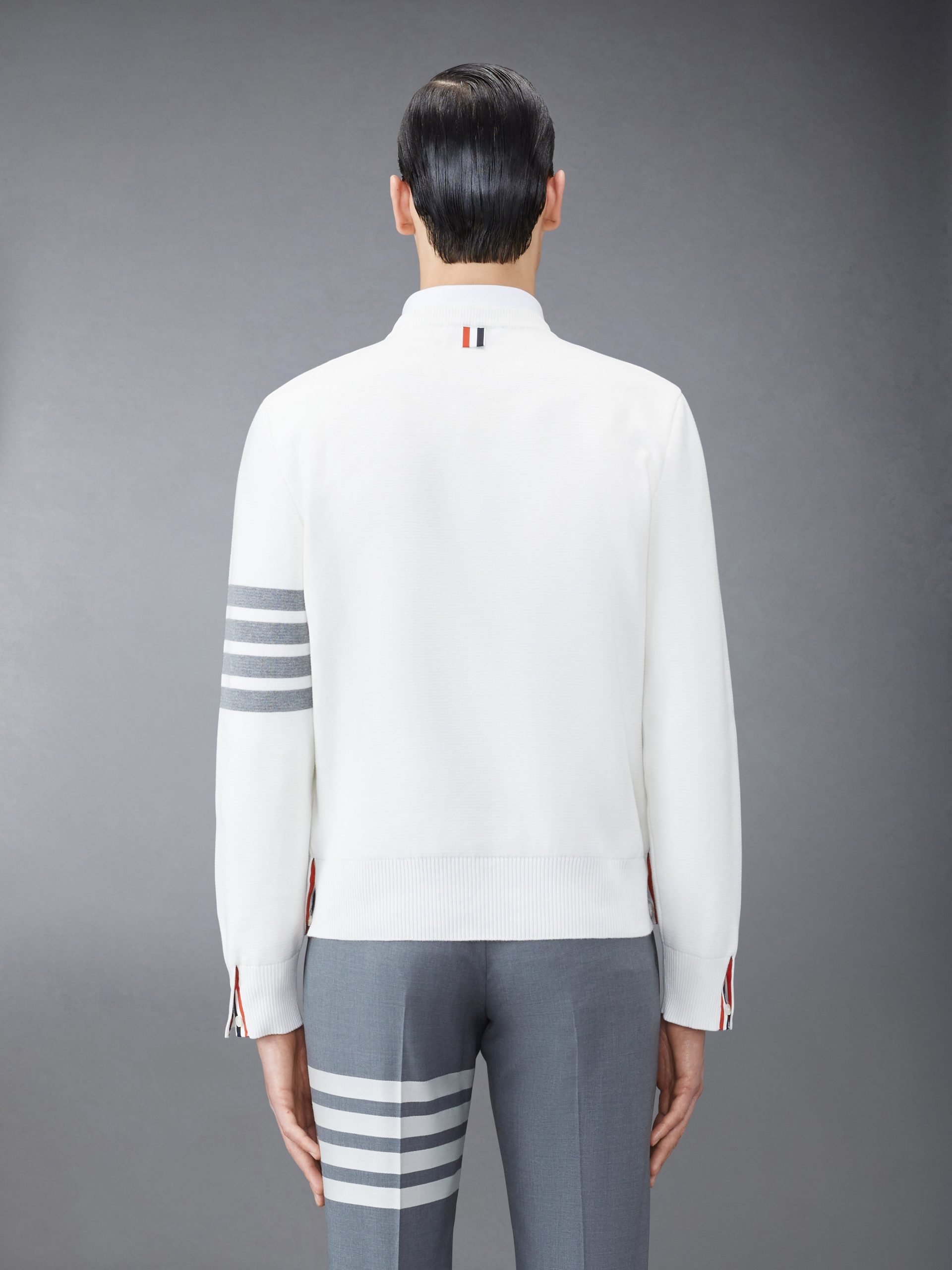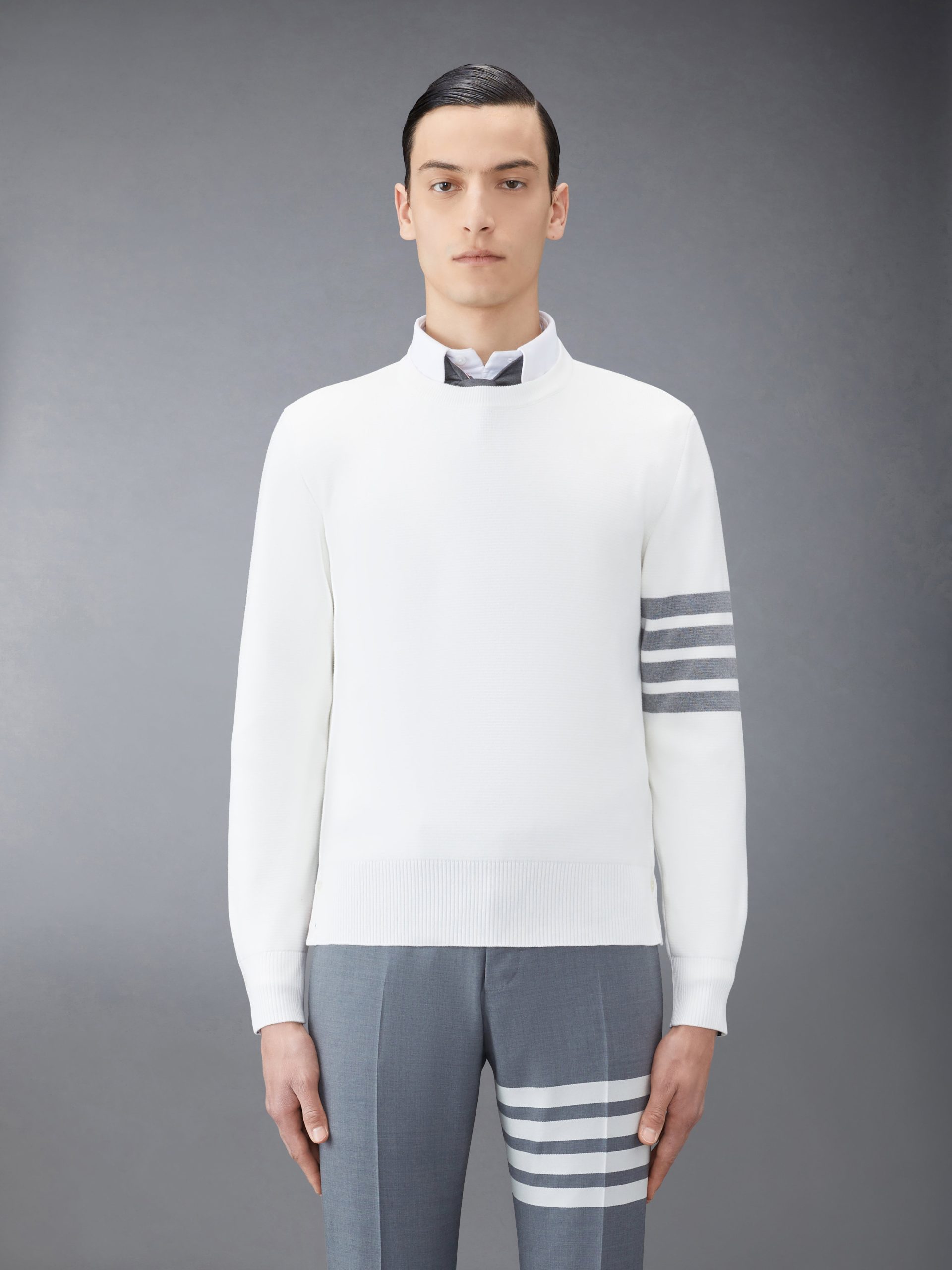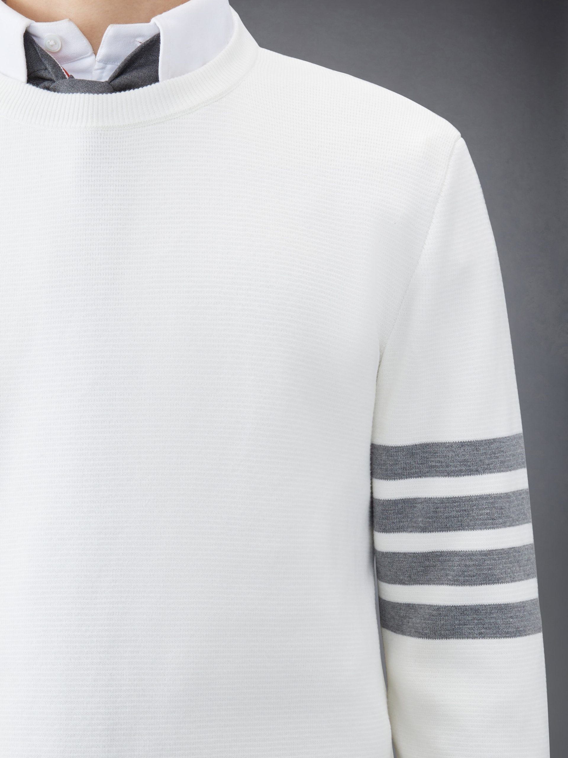 A warm pullover featuring our signature 4-bar detailing on the left sleeve and striped grosgrain trim at the neck. Stay cozy this season with this luxurious. breathable cotton layer.