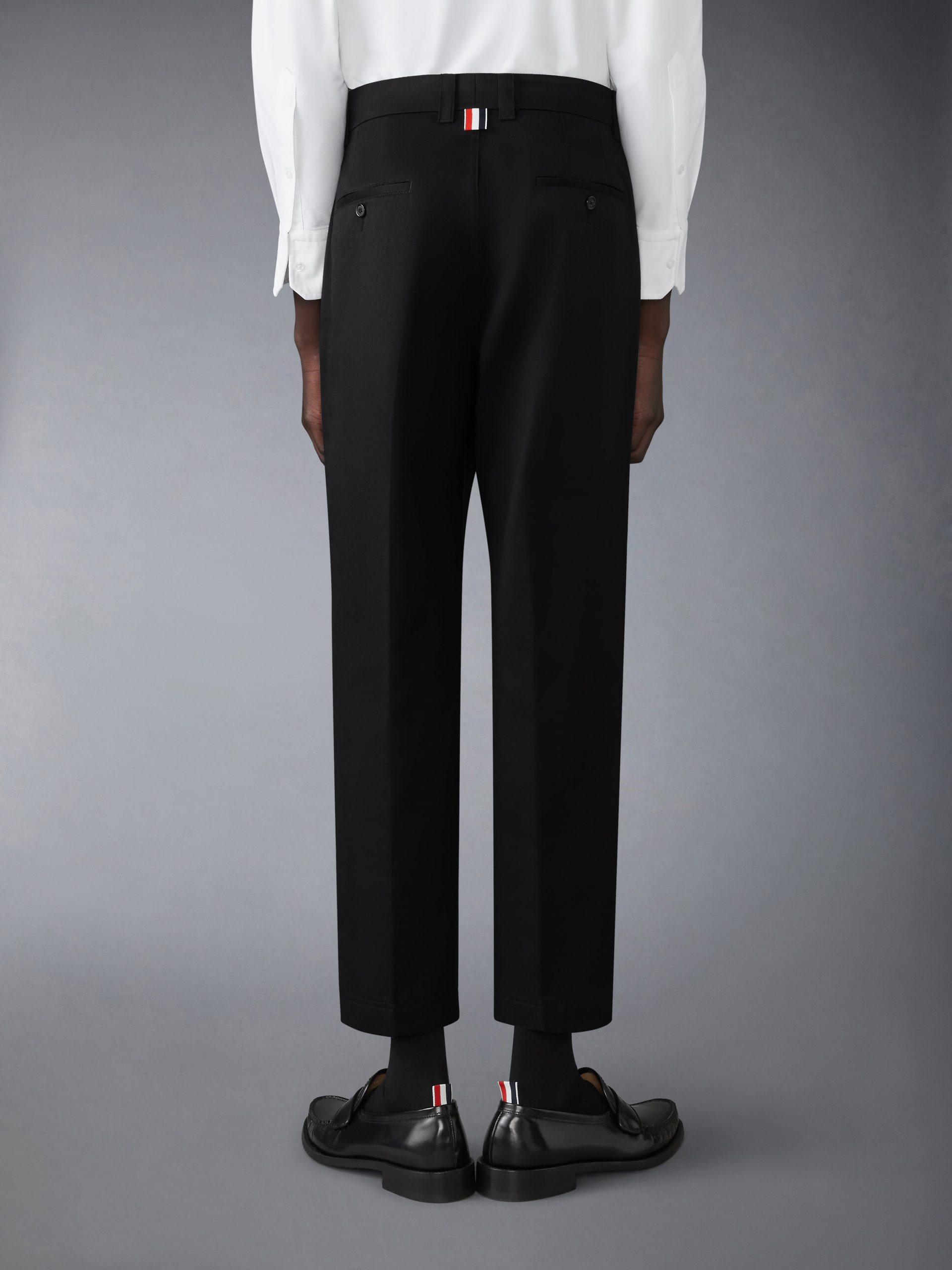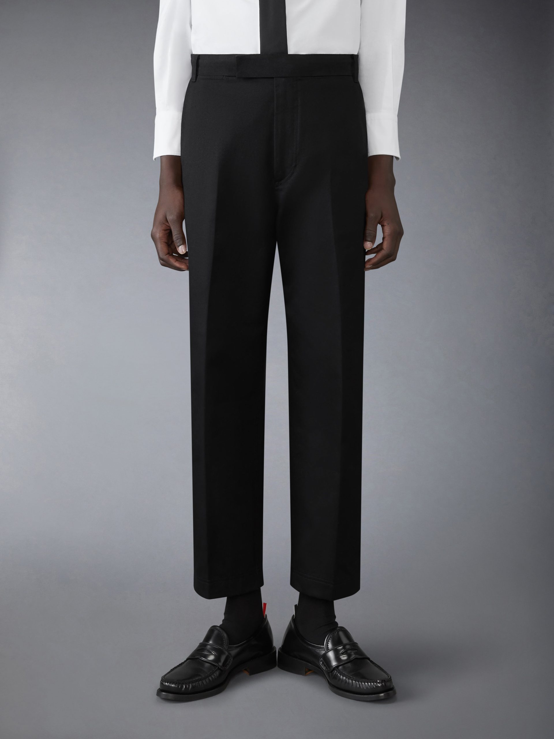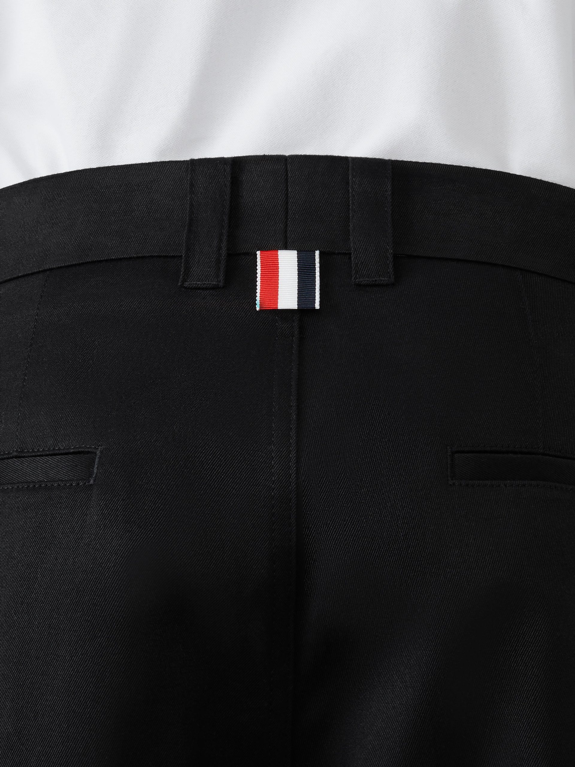 A sophisticated trouser with a shortened hem that pays homage to Thom Browne’s distinguished tailoring. Breathable cotton fabric is a celebration of the season.