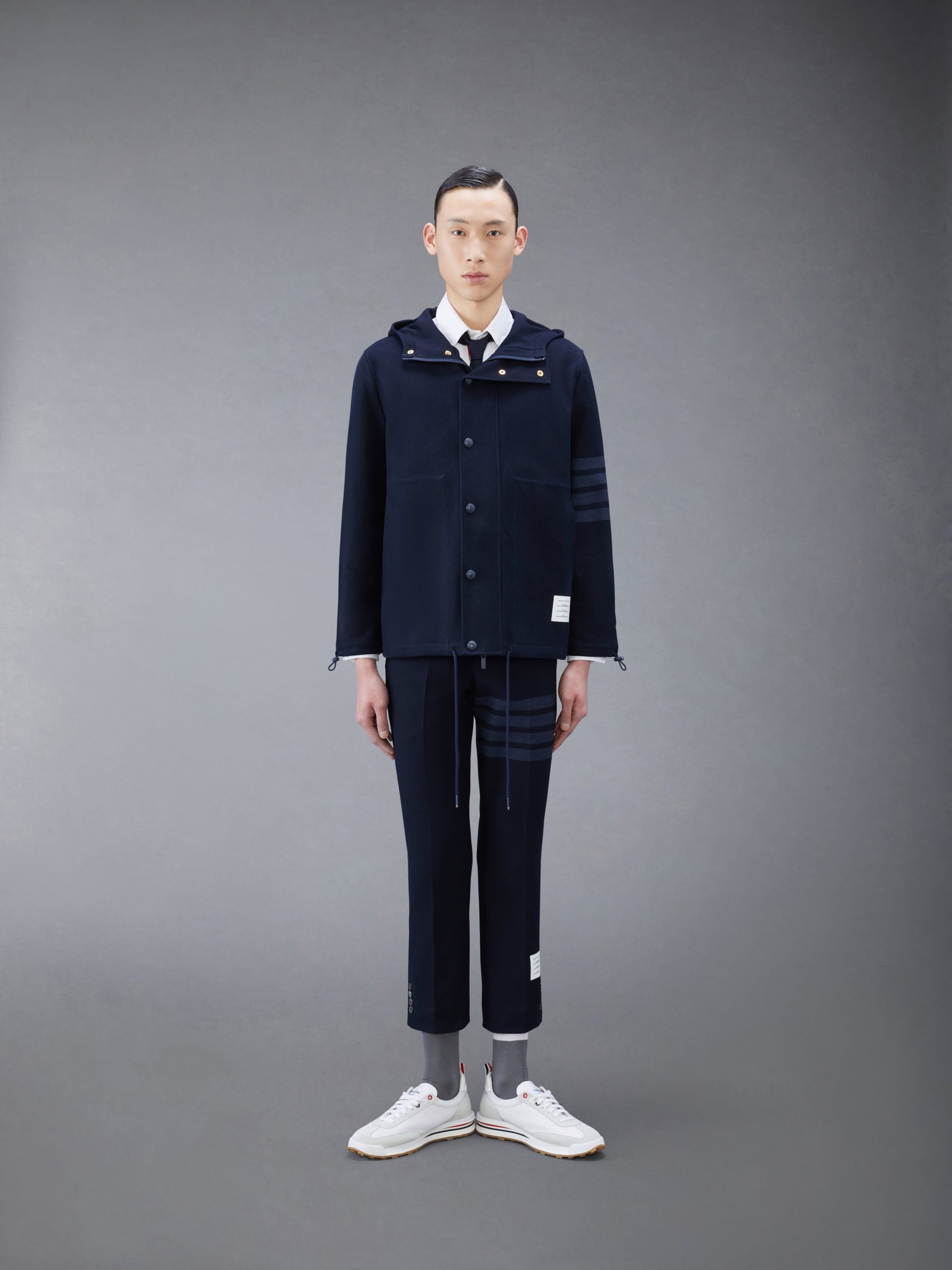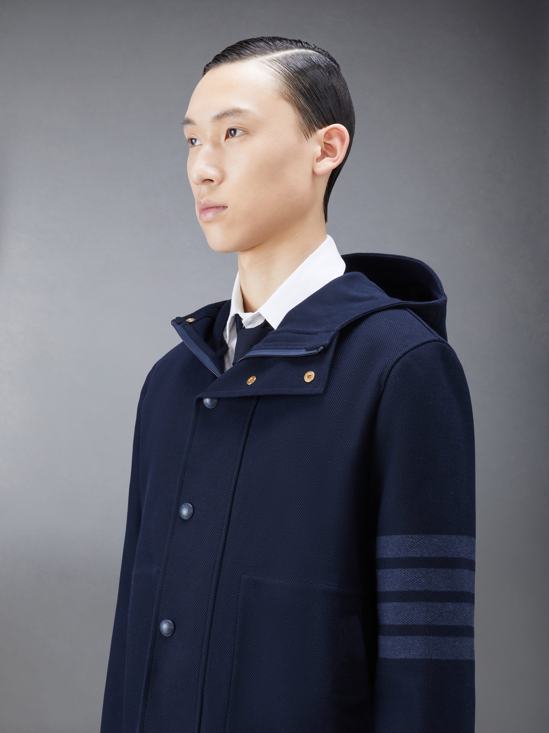 Our Double Face Tech Twill Sport Coatis a brilliant interpretation of our standard suit jacket. featuring our signature 4-Bar detailing and nametag applique.