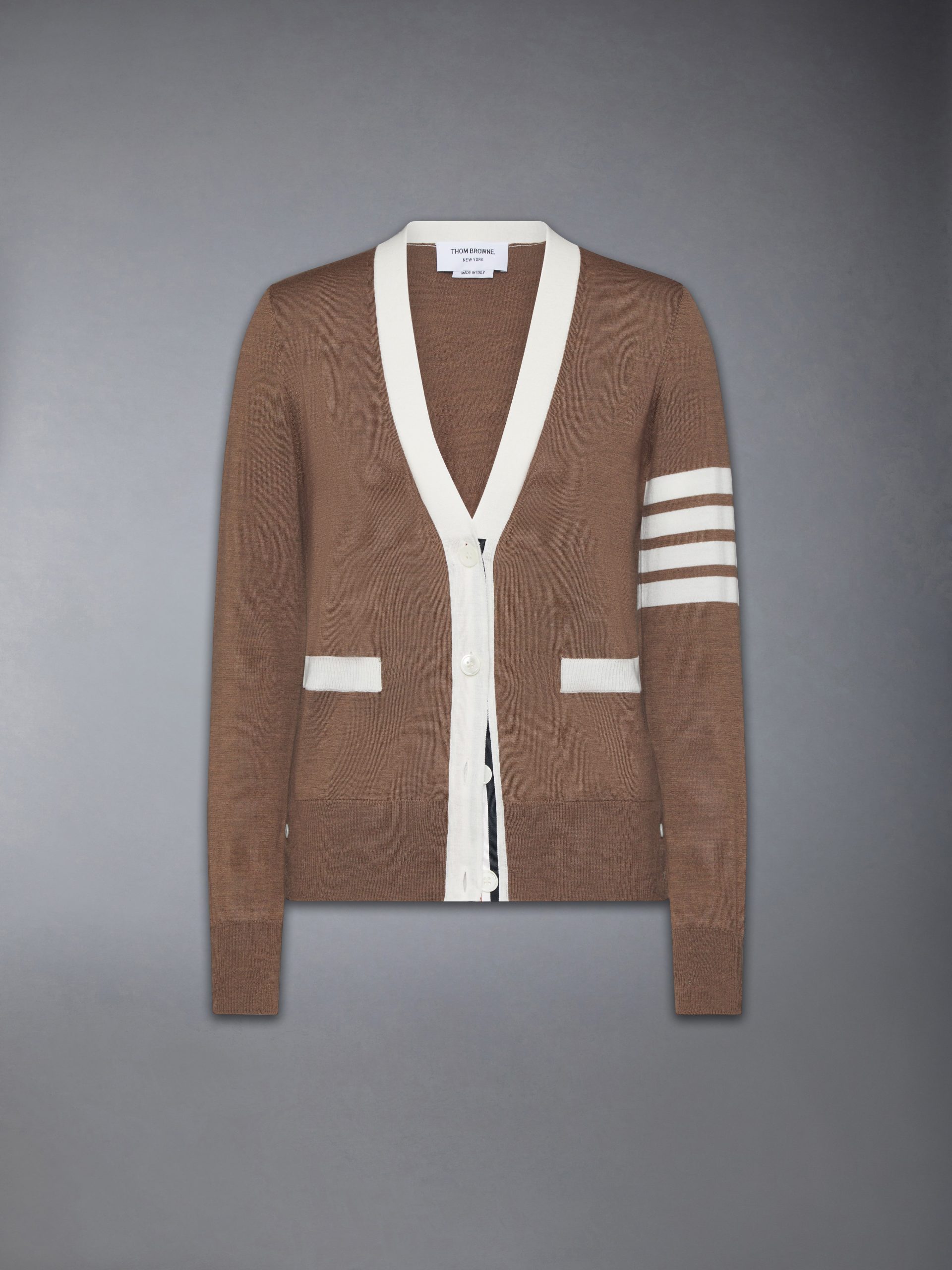 Buttoned side vents with signature striped grosgrain trim