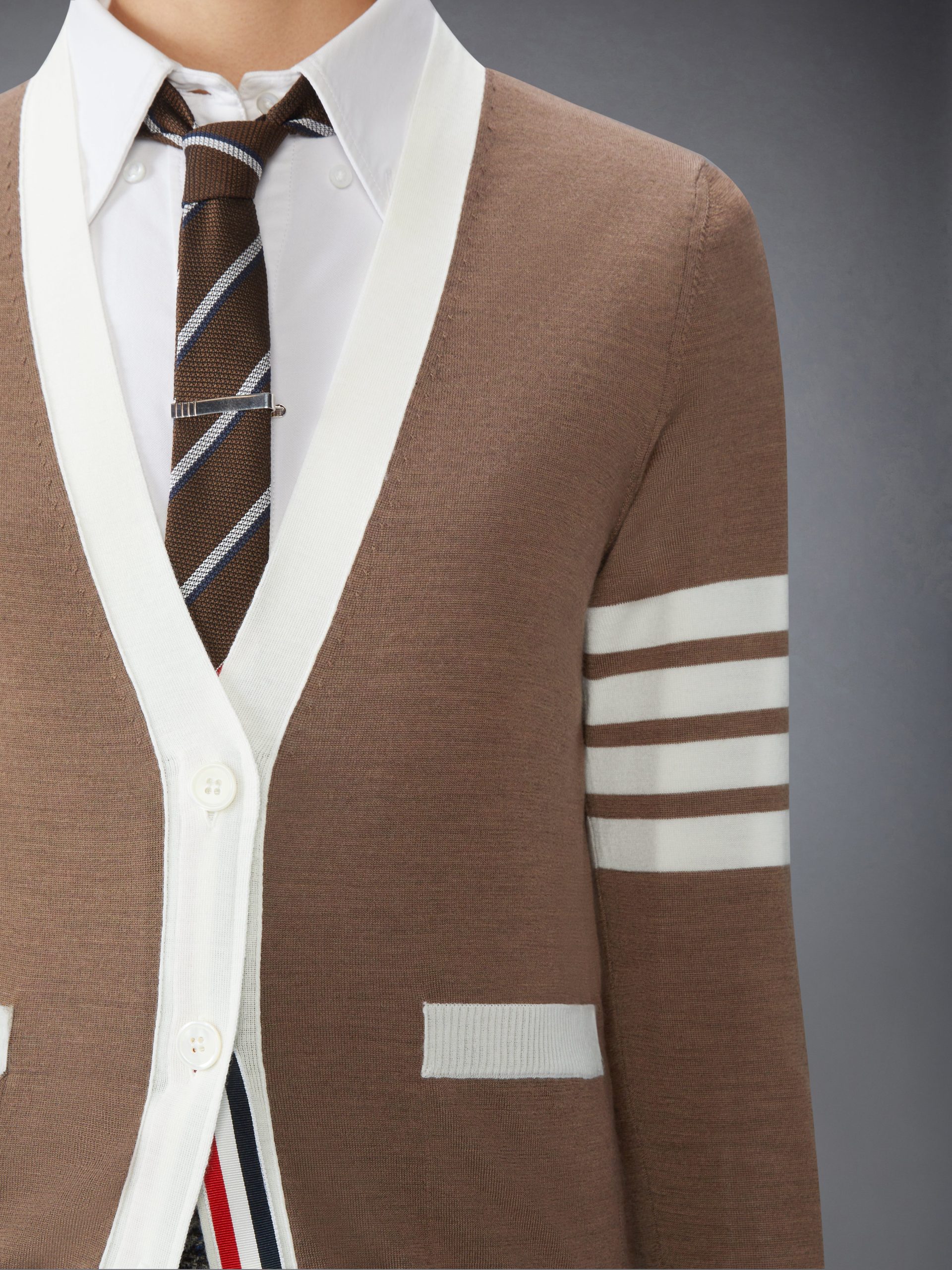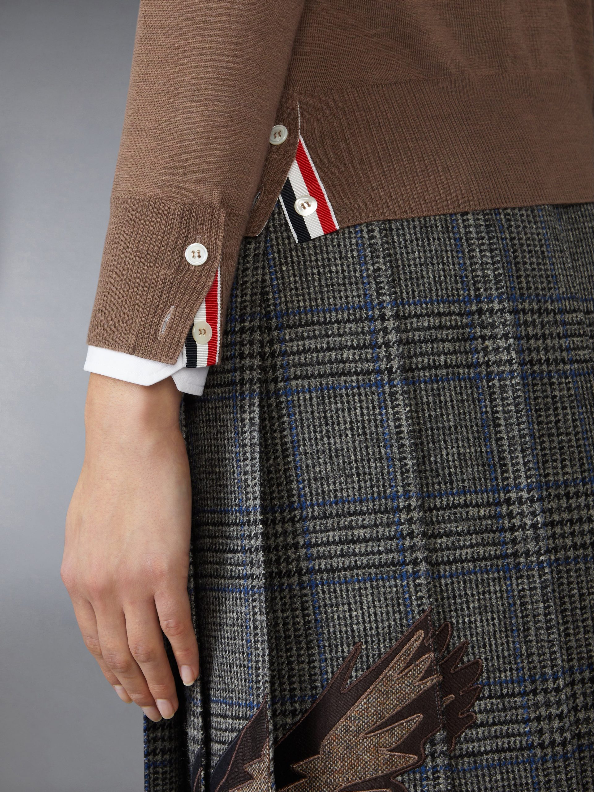 Buttoned cuffs with signature striped grosgrain trim