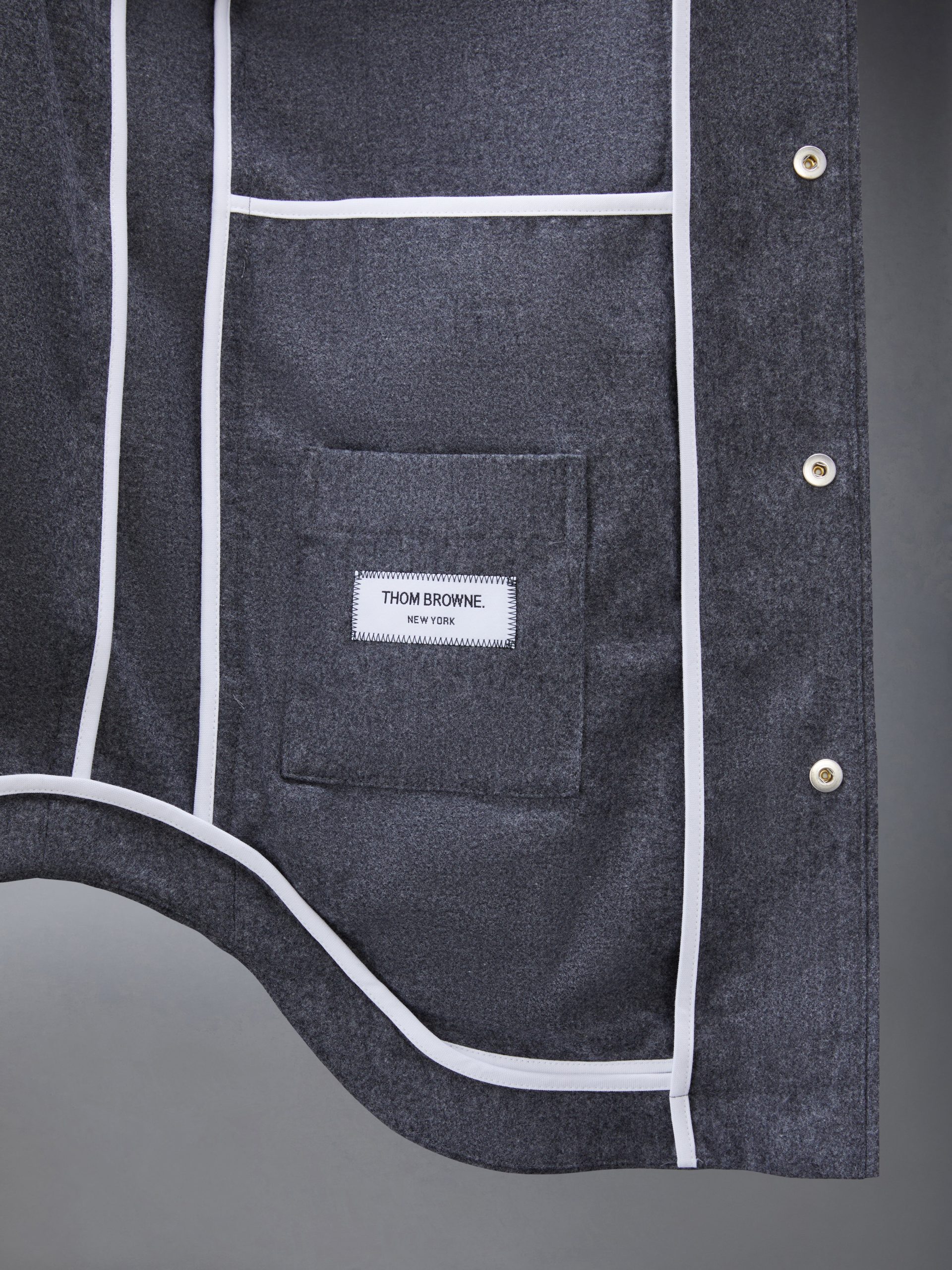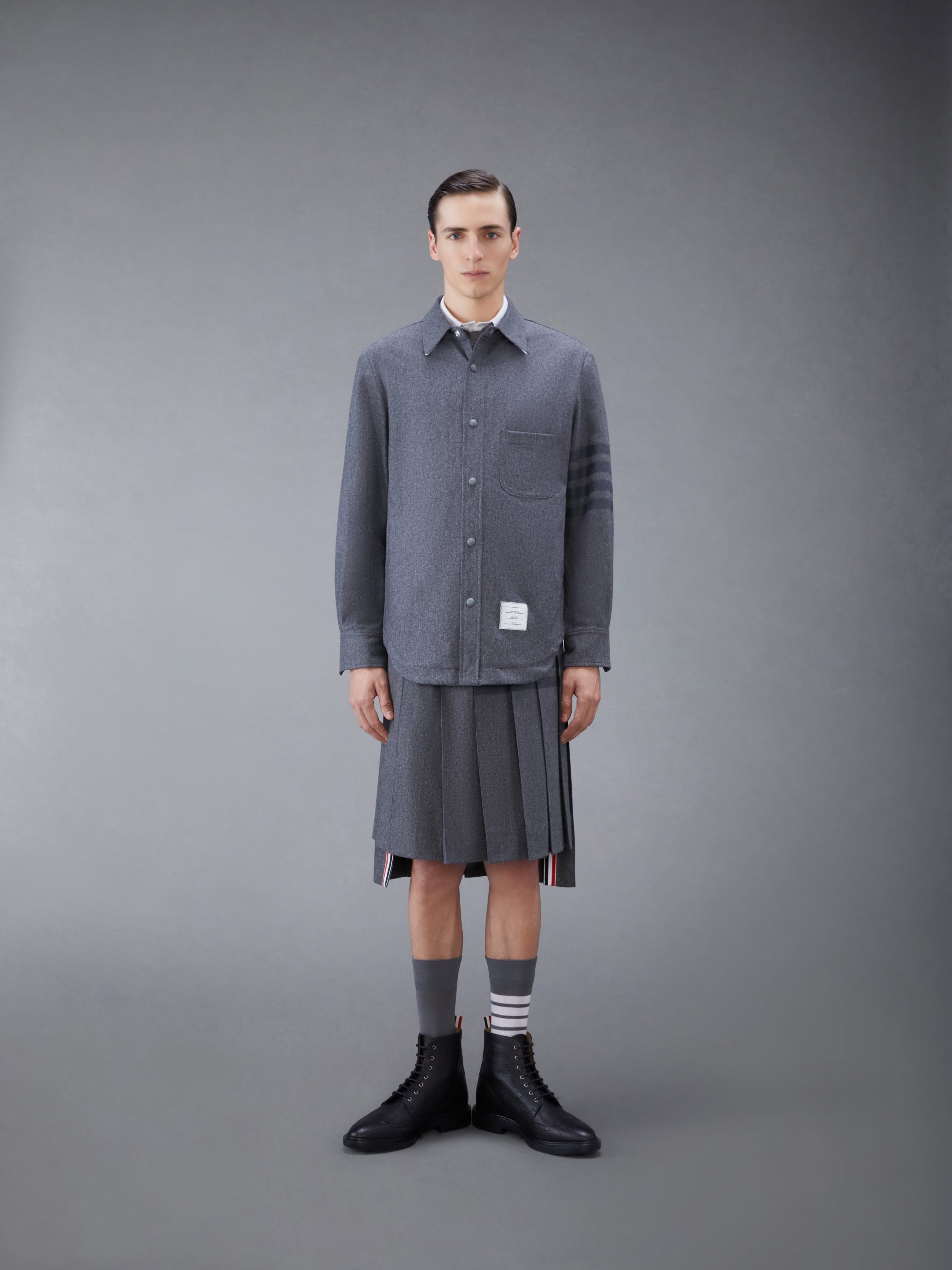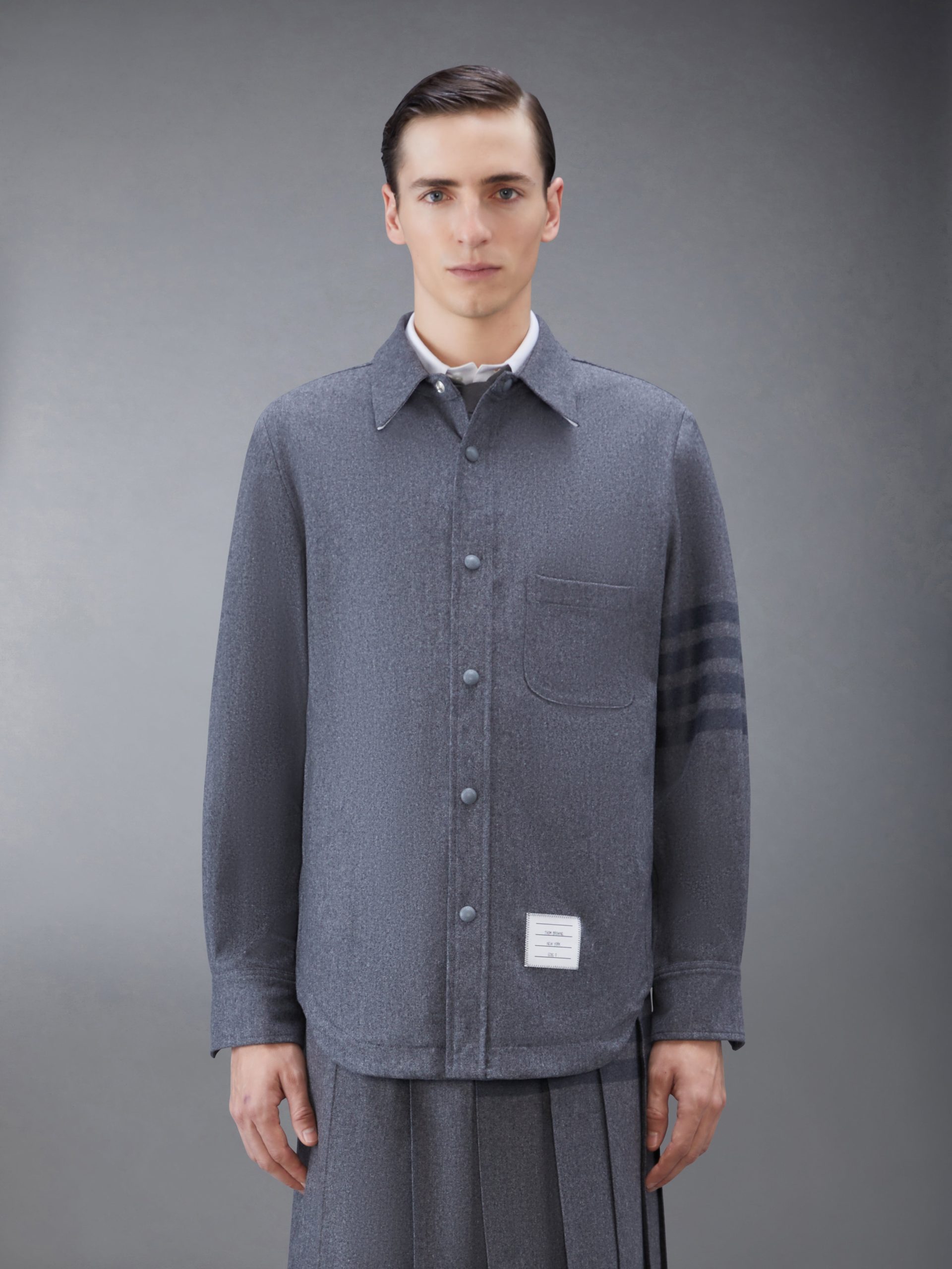 Our Wool Cashmere Blend 4-Bar Snap Front Shirt Jacket strikes the balance between refined suiting and casual wear. A weighted layer perfect for colder months. pair this jacket with any of our classic shirts.