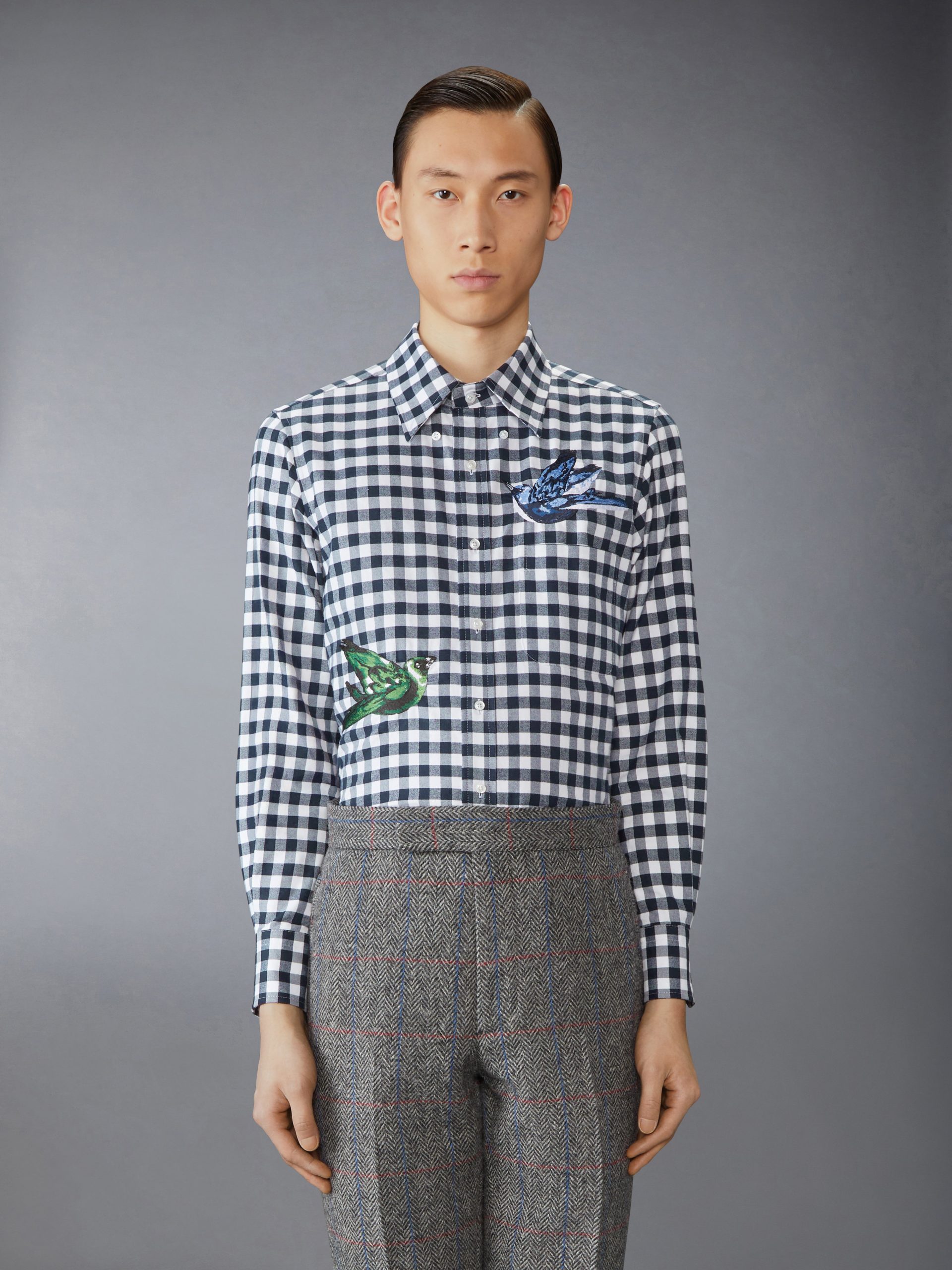 How marvelous it would be to be exactly who we wish to be? For this collection. Thom takes tailoring on a poetic journey. framing it through the lens of birding. a pastime that requires patience. observation. and a deep appreciation for fleeting moments of beauty. Adorned with Canaries. one of the few birds capable of escaping the eye of a hurricane. this shirt becomes a symbol of resilience and the power of choosing your own path.