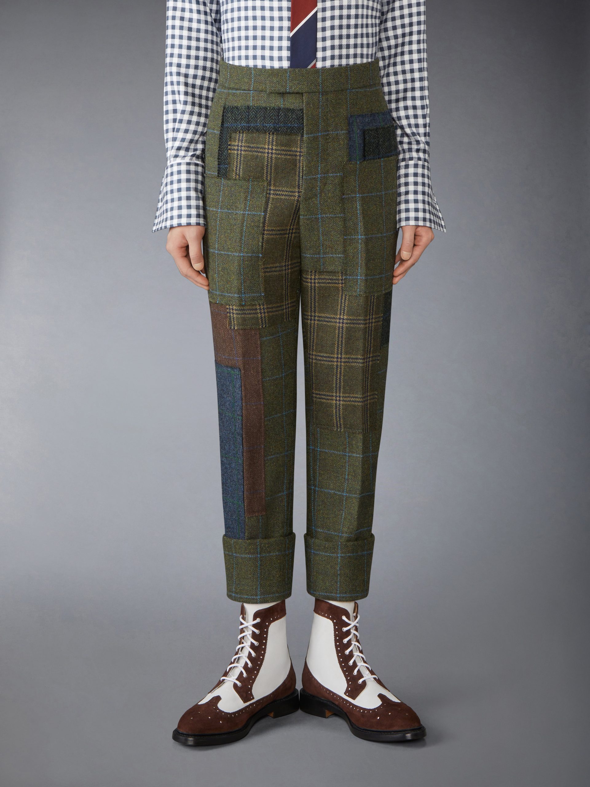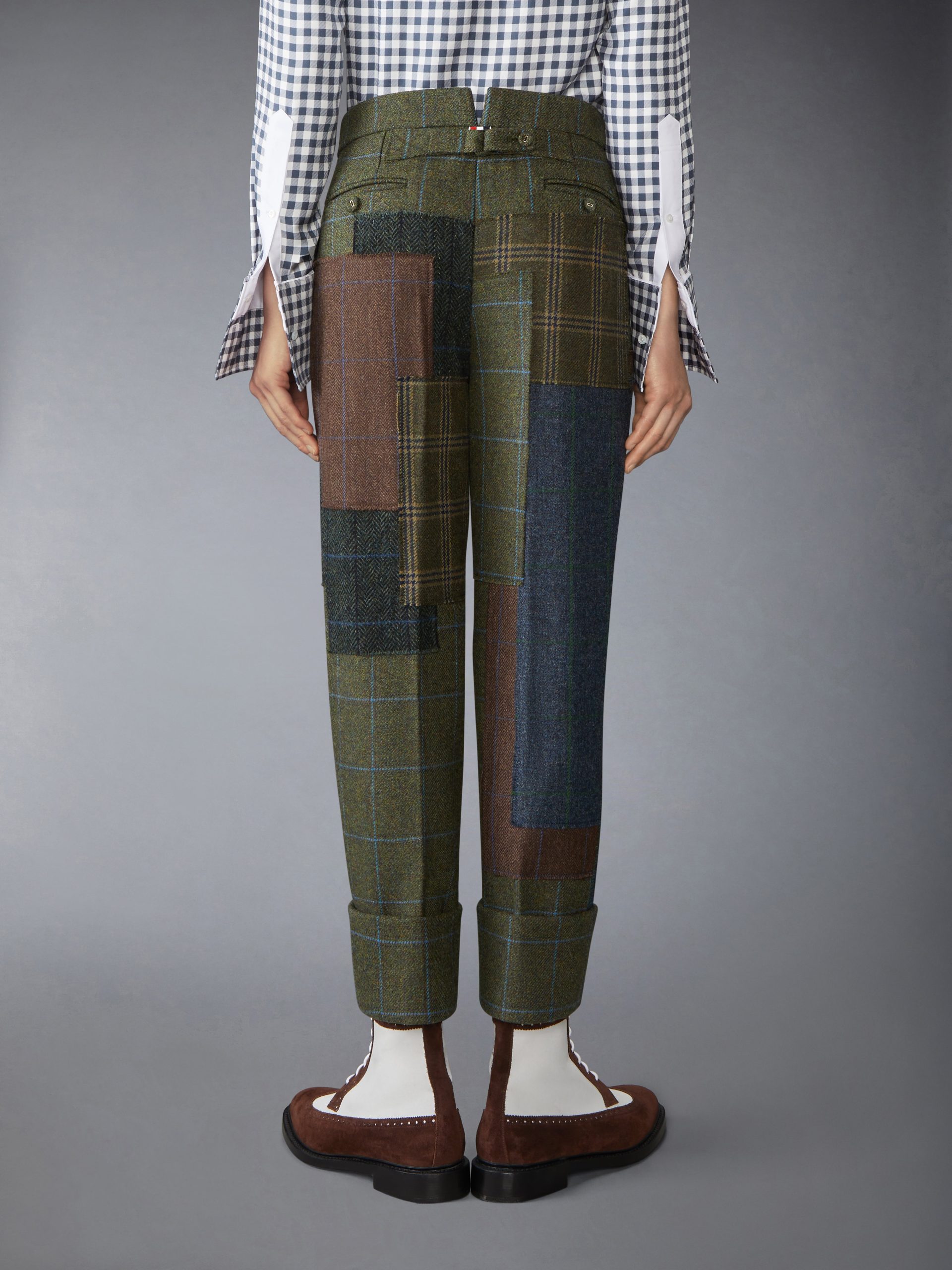 Crafted from a patchwork of heritage hunting tweeds. these trousers form a rich landscape of earthy. seasonal tones. Once worn by aristocrats and countryside adventurers. hunting tweed has come to represent sartorial excellence—prized for its luxury. functionality. and enduring legacy. Made to pair with our Hunting Tweed Chesterfield Armband Jacket.