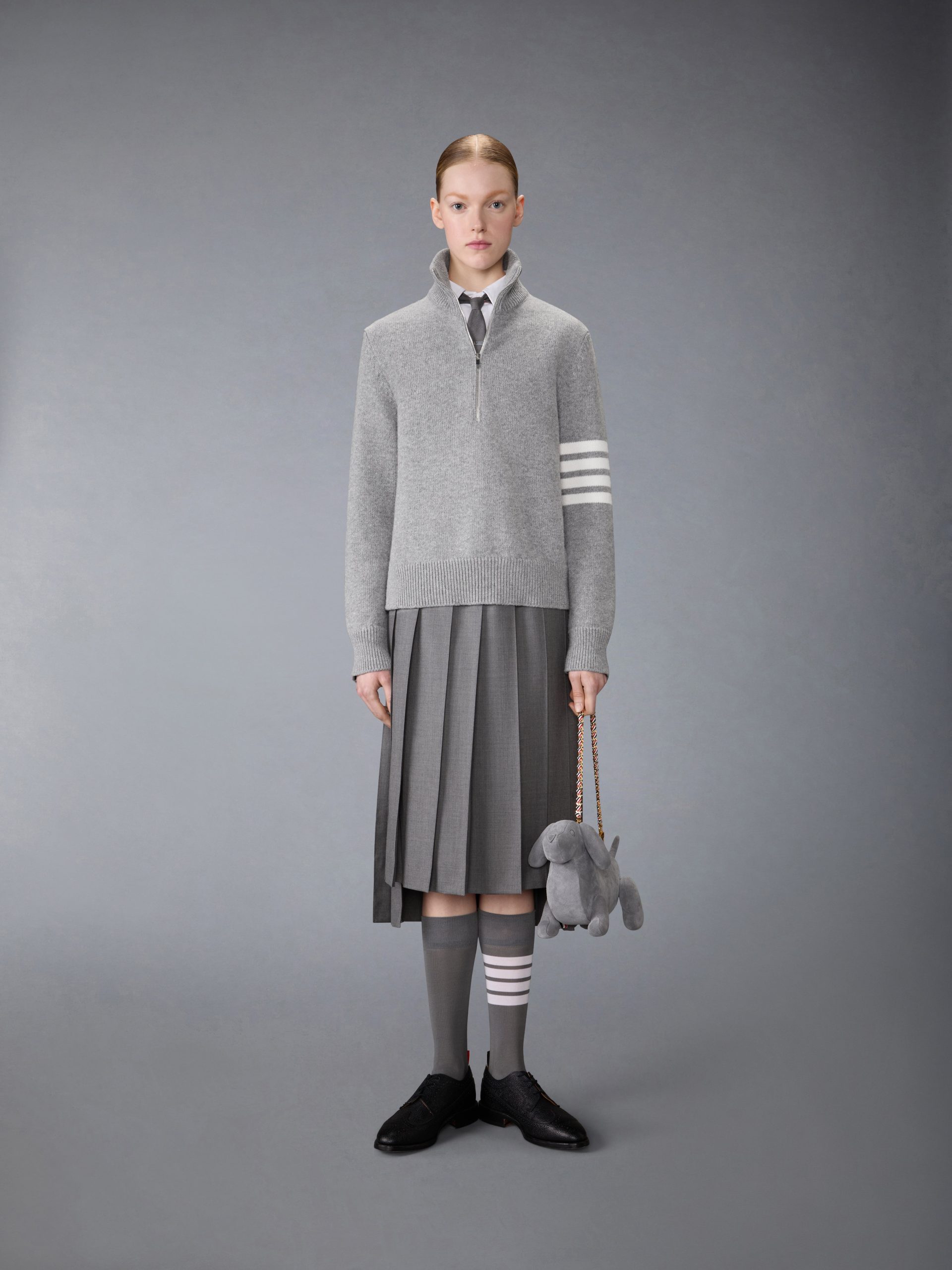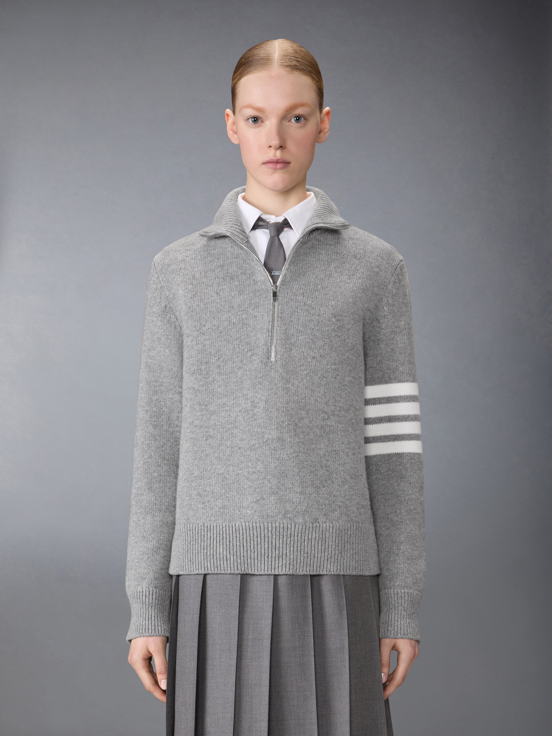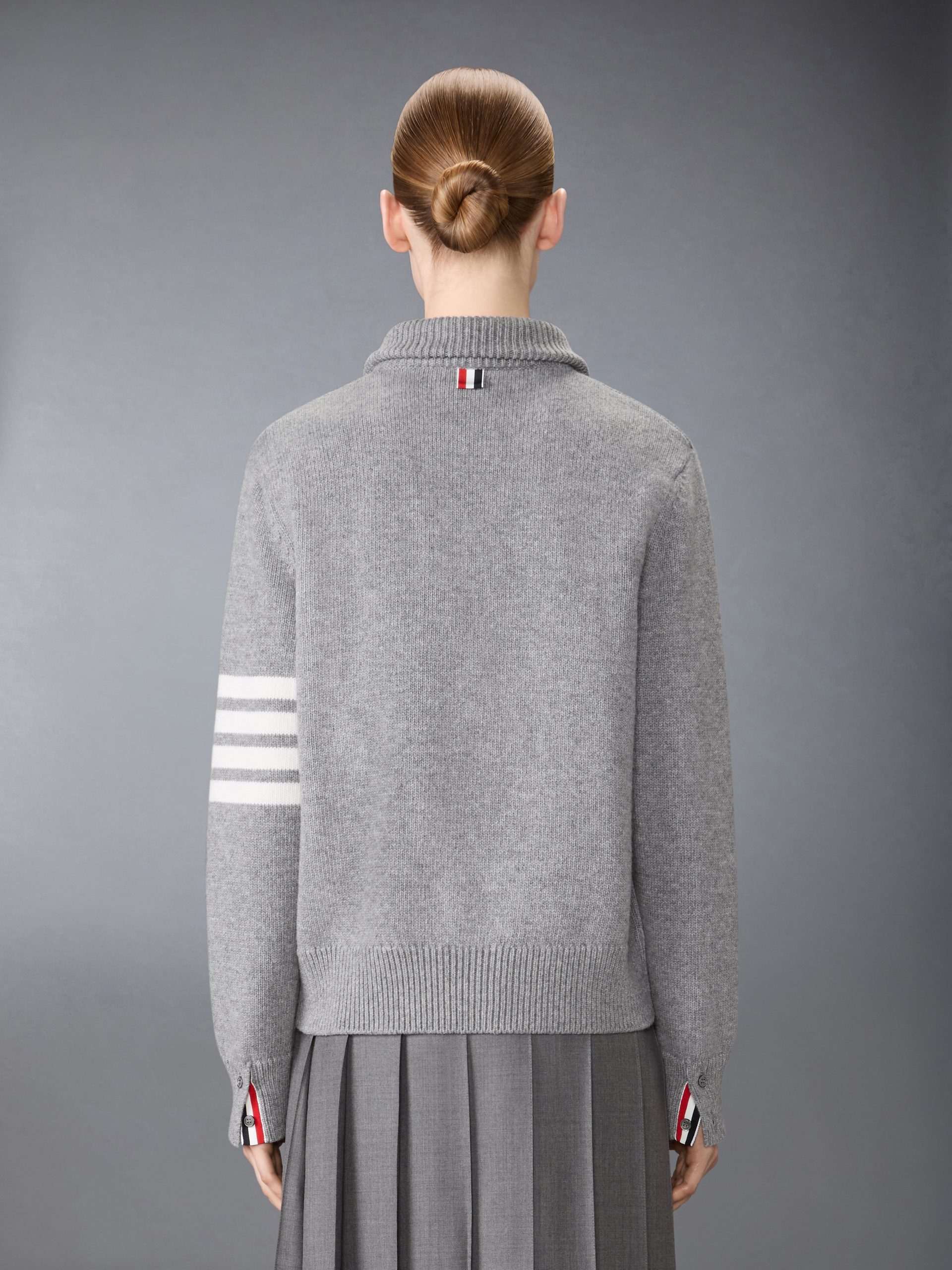 With bold 4-bar detailing at the left sleeve. this luxurious wool pullover pays homage to our sporty heritage. Designed with a partial zip for added breathability. it’s a versatile staple that effortlessly pairs with everything from tailored trousers to casual denim.