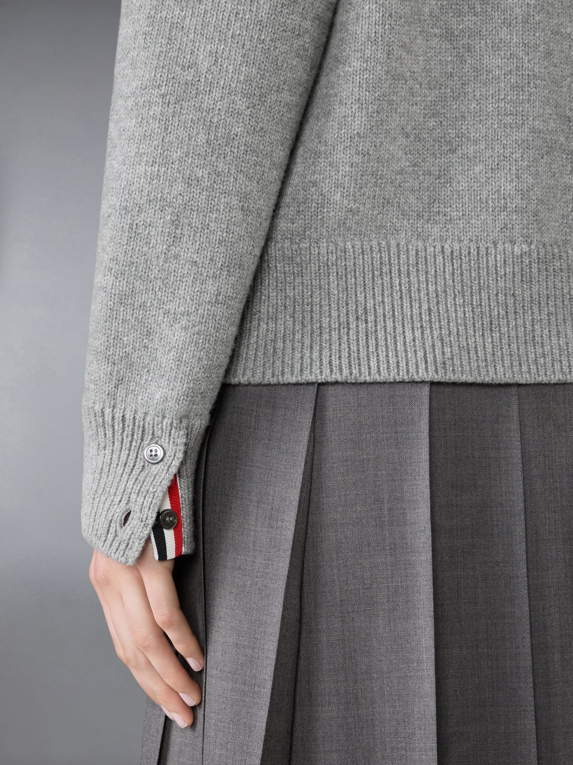 Buttoned cuffs with signature striped grosgrain trim