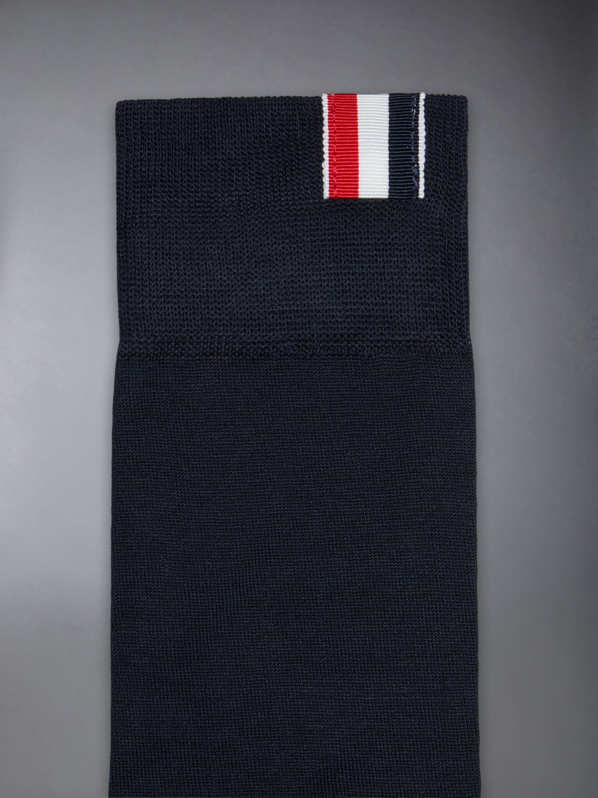Over-the-calf cotton socks with 4-bar stripe detail at one calf in white.
