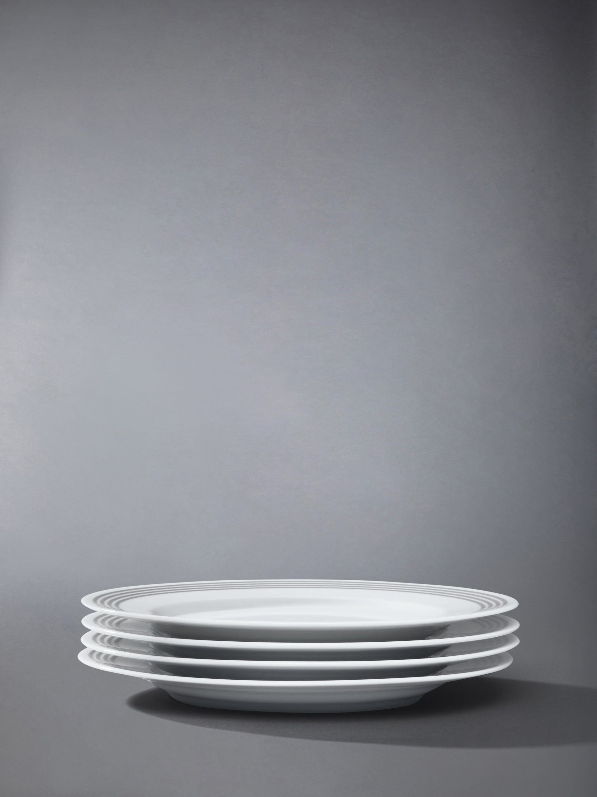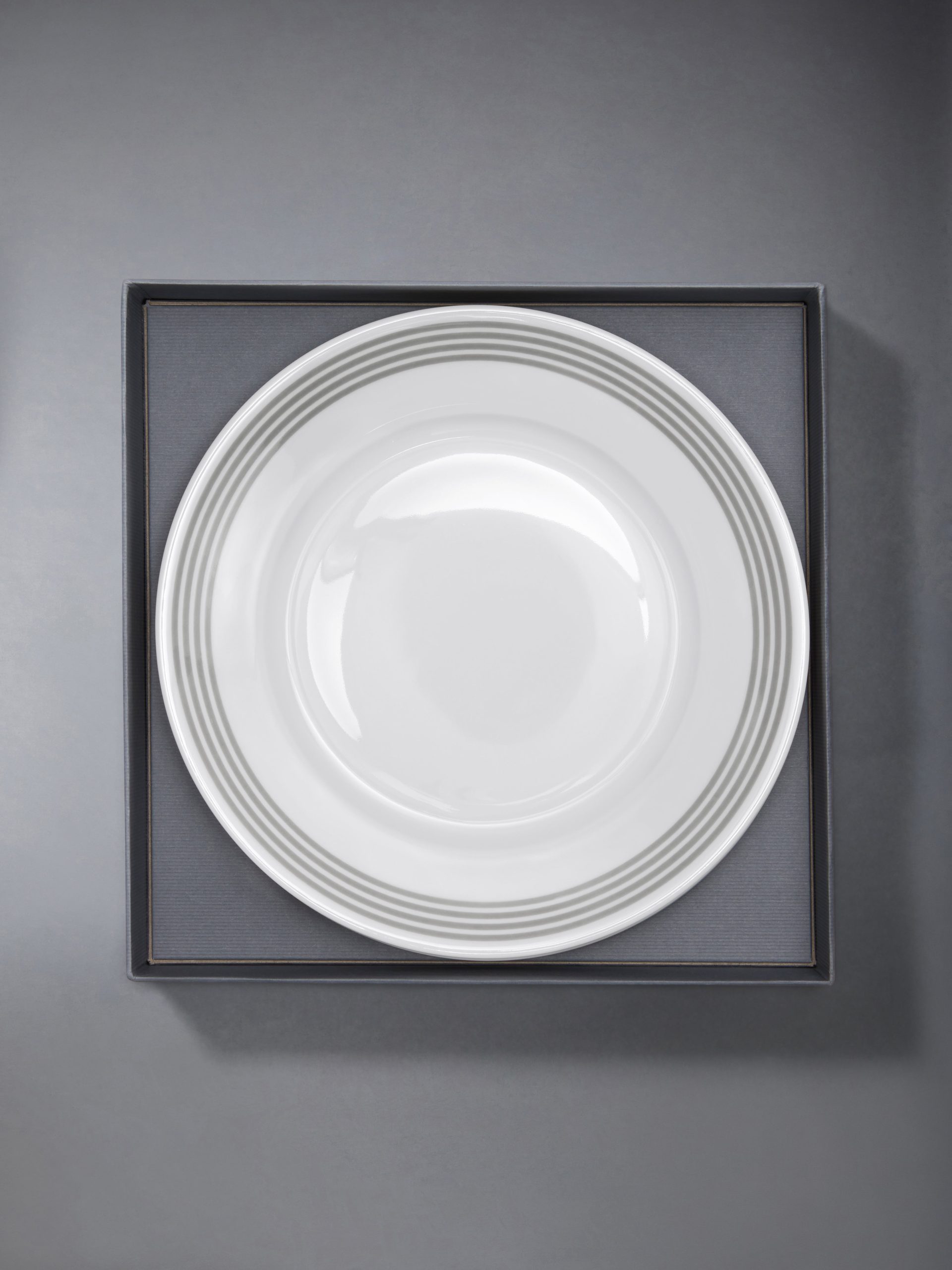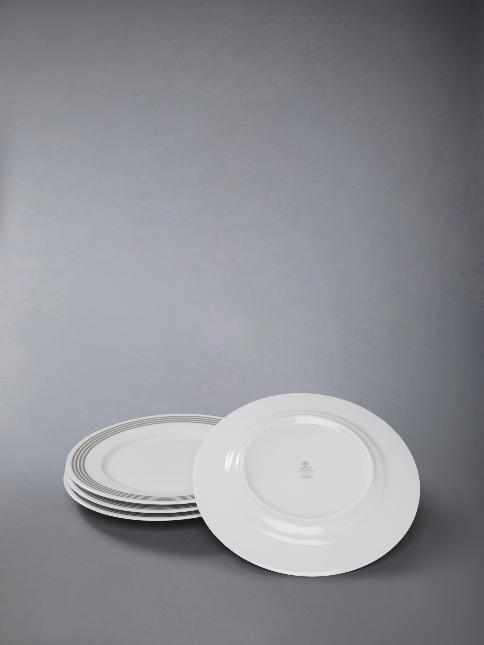 Elevate your tea time with our signature tea time plates set. inspired by Thom Browne’s trove of cherished antiques collected over the years. Meticulously crafted from limoges porcelain. each plate exudes sculpted elegance. A touch of our sporty heritage is captured through iconic 4-bar detailing at the rim.