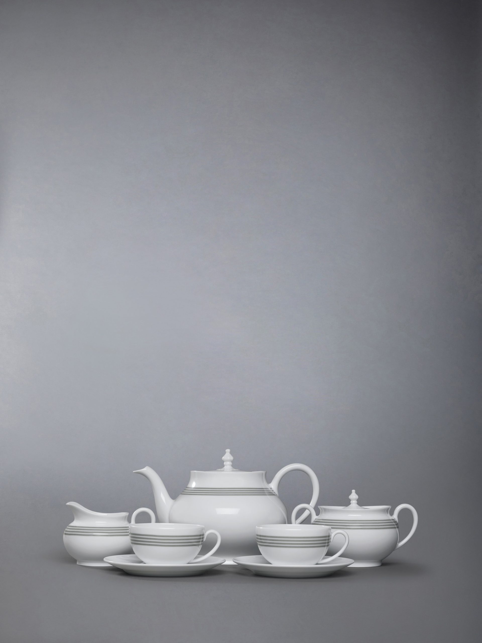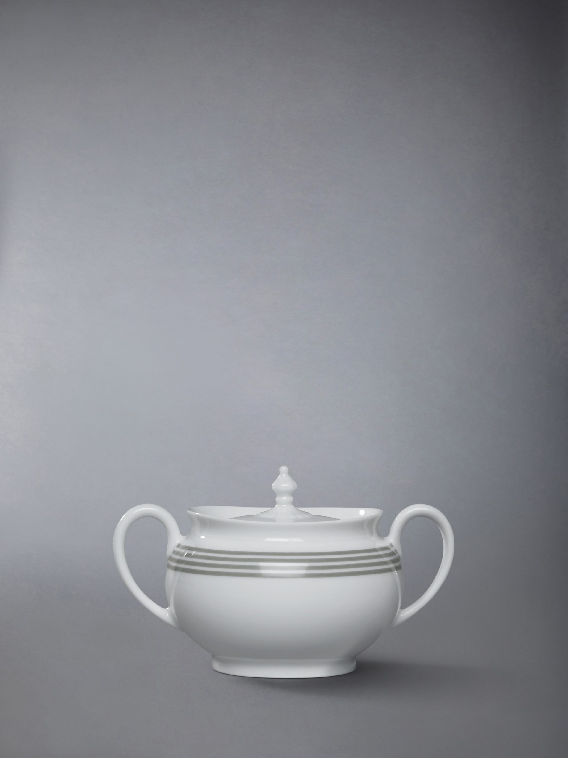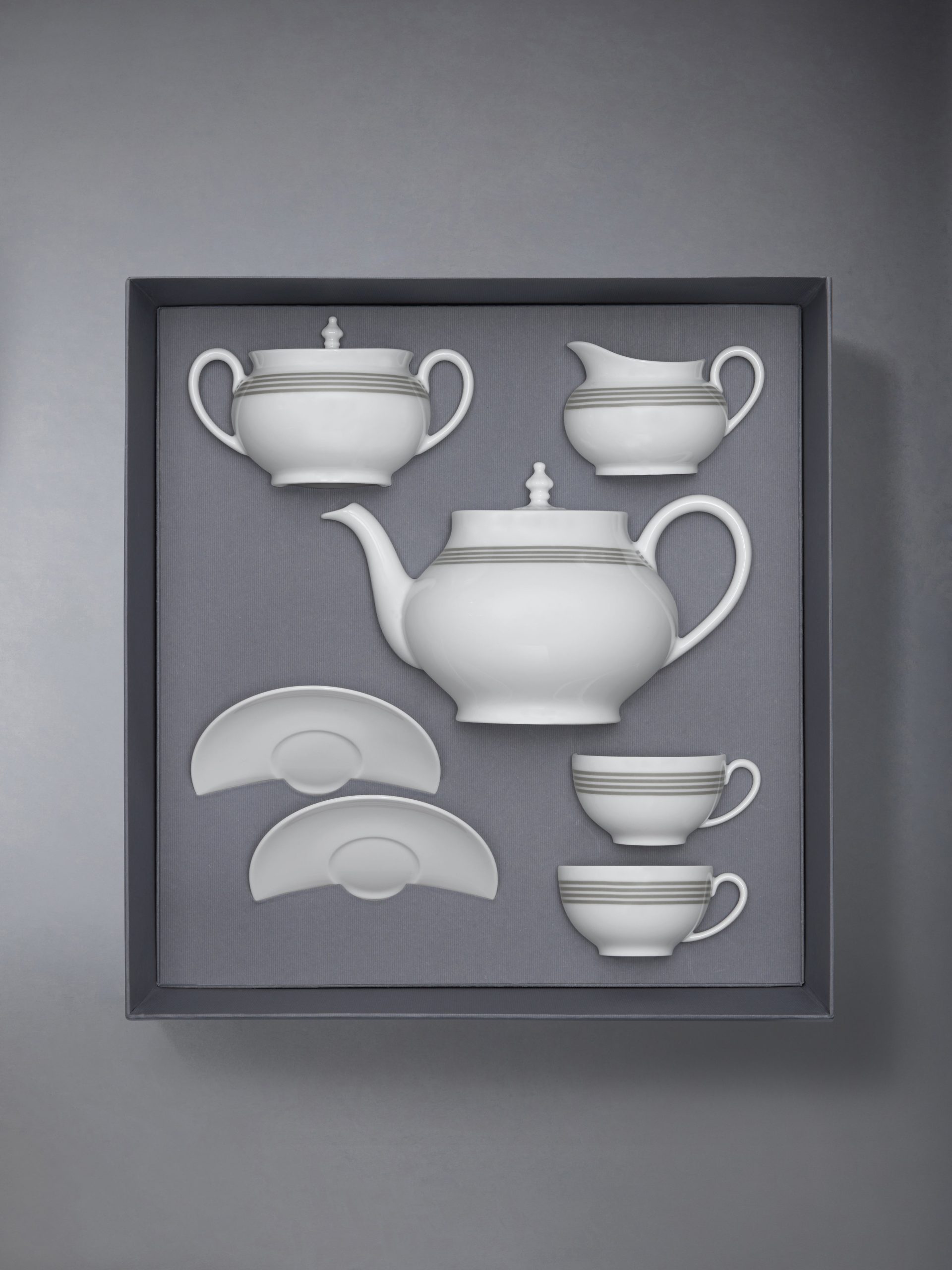 Elevate your tea time with our signature tea time set. inspired by Thom Browne’s trove of cherished antiques collected over the years. Meticulously crafted from limoges porcelain. each porcelain exudes sculpted elegance. A touch of our sporty heritage is captured through iconic 4-bar detailing at the rim.