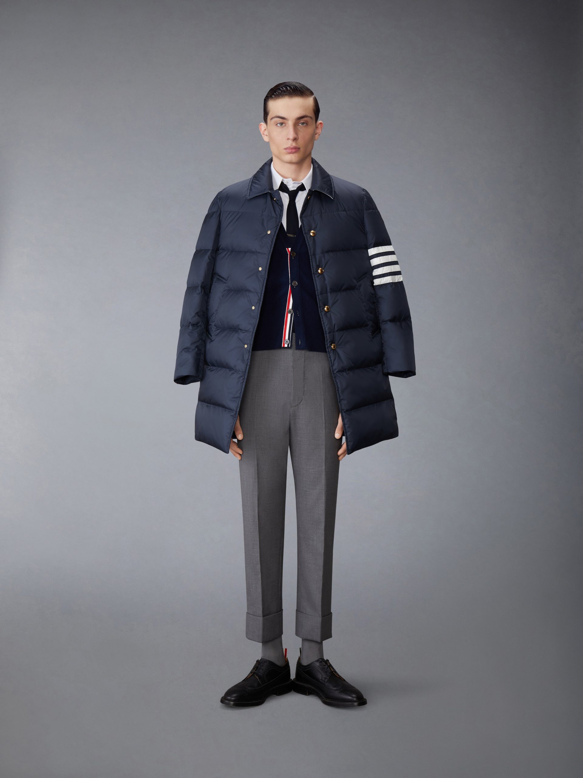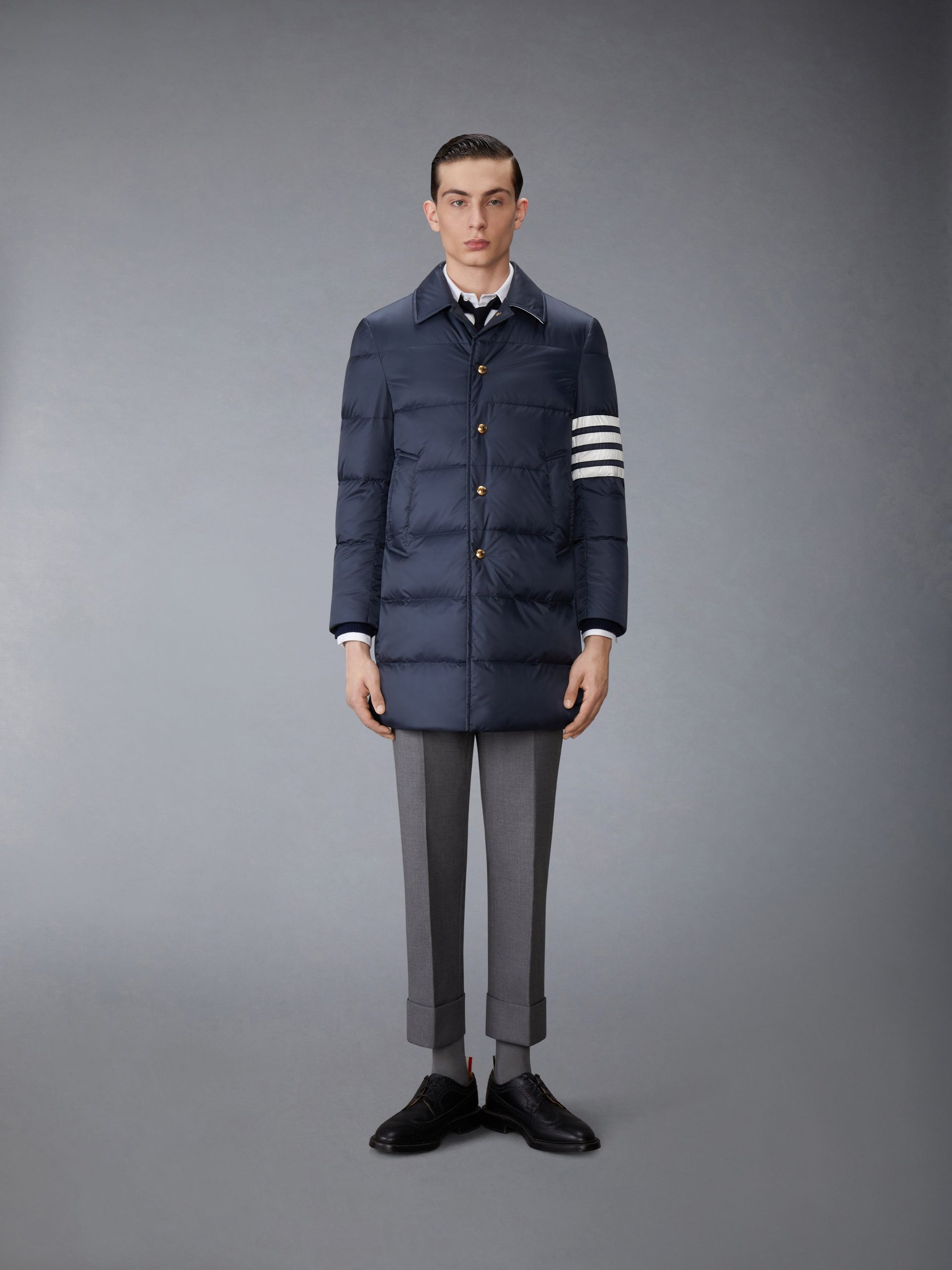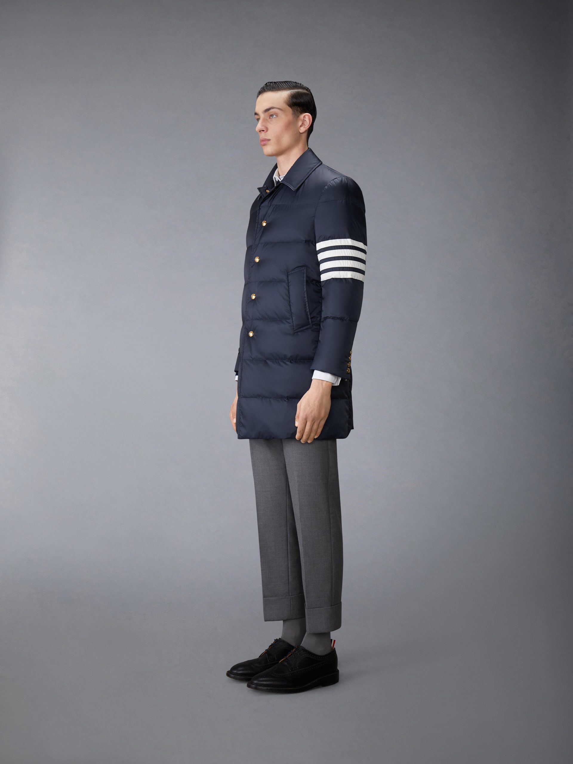 Be the first to review “MATTE FINISH NYLON DOWN FILL 4-BAR BAL COLLAR OVERCOAT”