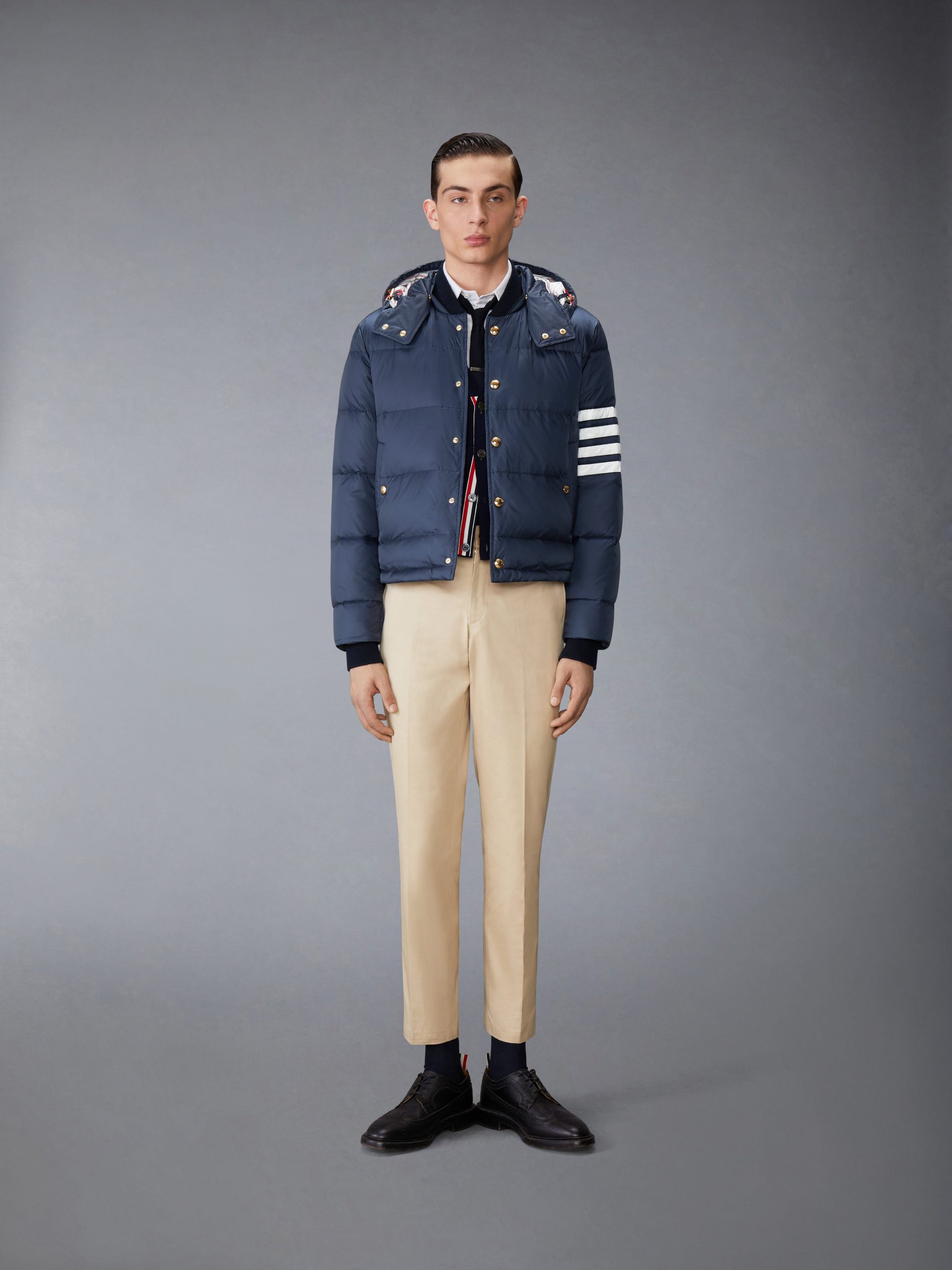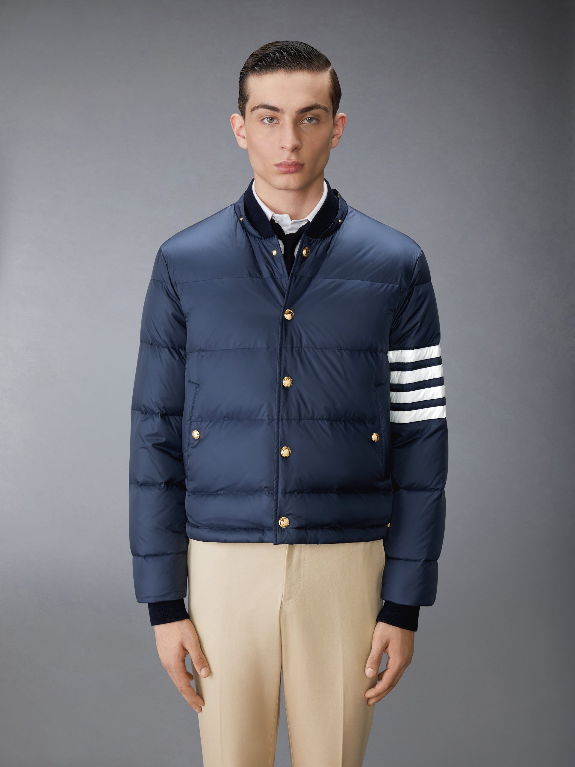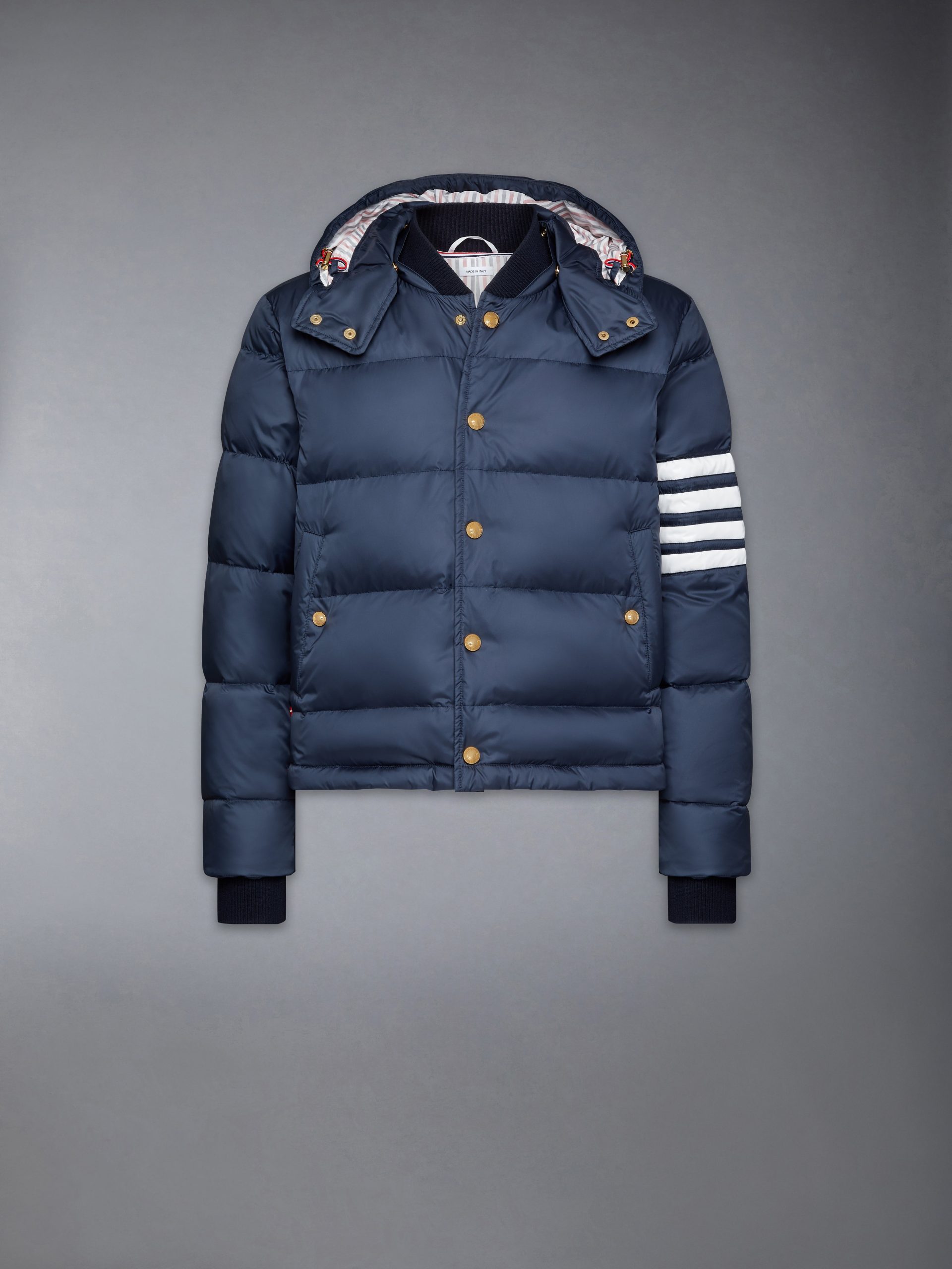 Be the first to review “MATTE FINISH NYLON DOWN FILL 4-BAR HOOD BOMBER”
