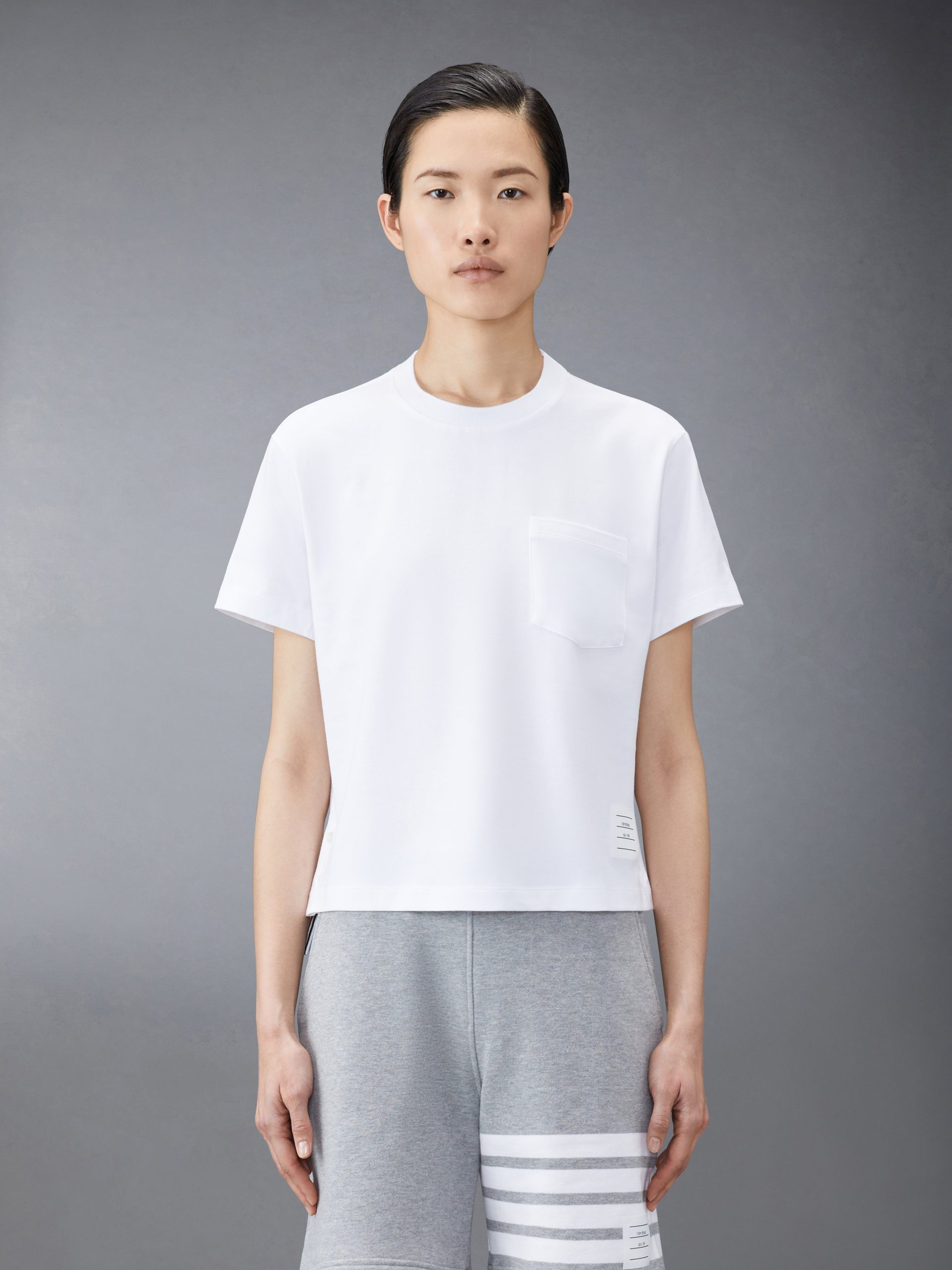 A silhouette that has stood the test of time. our Jersey Pocket Tee is adorned with signature Thom Browne emblems throughout. and tailored to perfection.