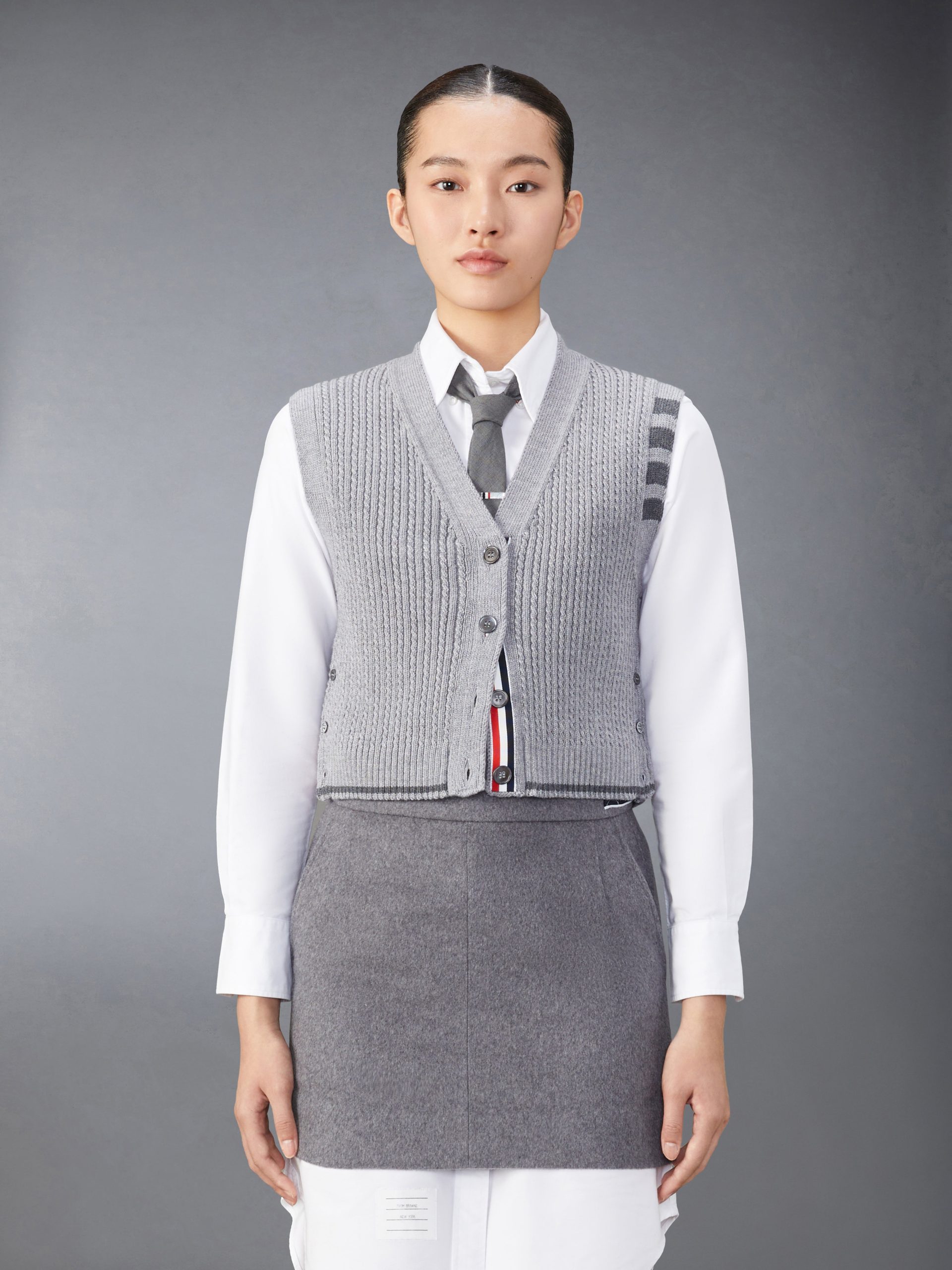 Be the first to review “MERINO WOOL 4-BAR CROPPED CABLE CARDIGAN VEST”