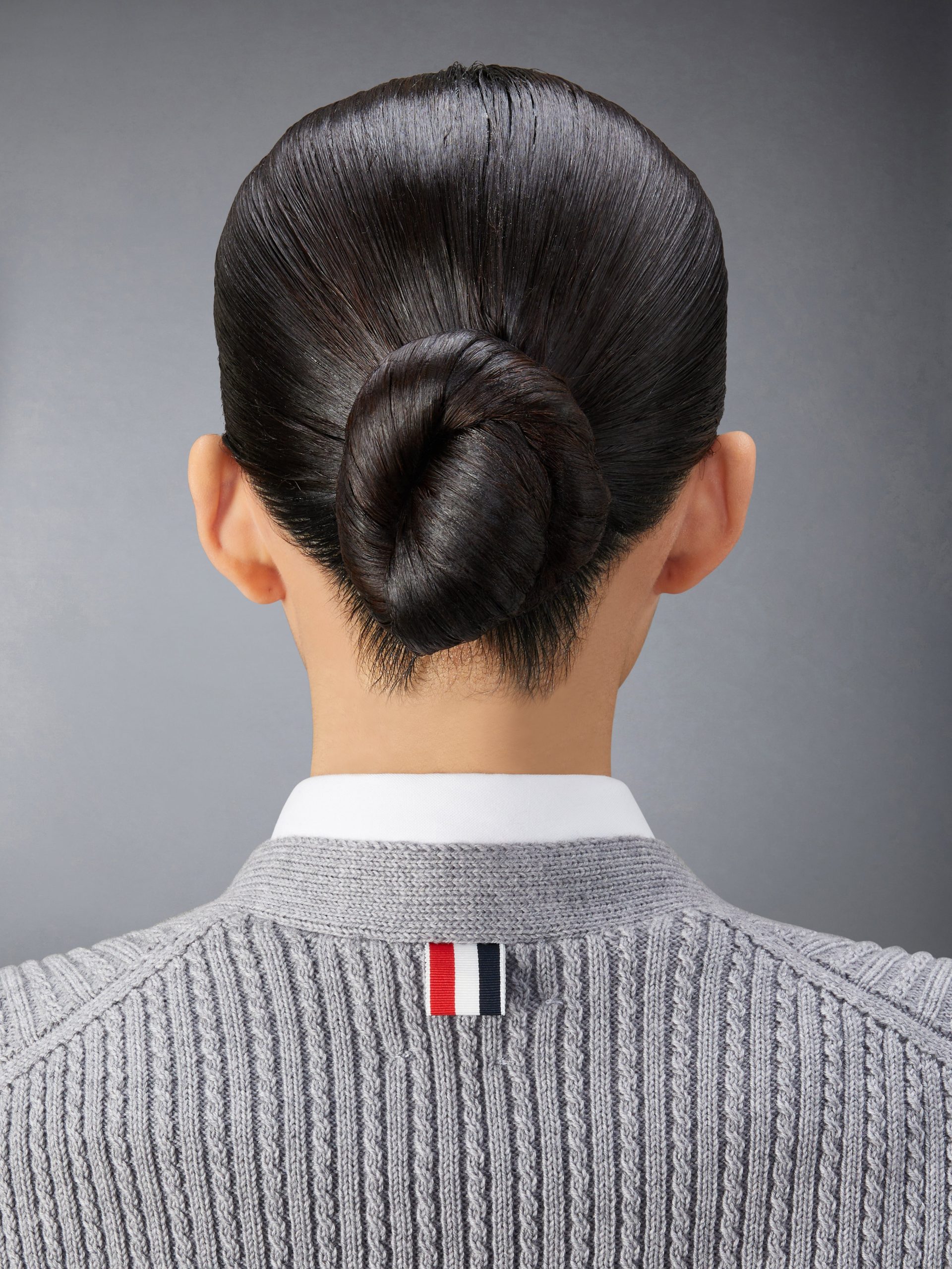 Front button closure with signature striped grosgrain placket