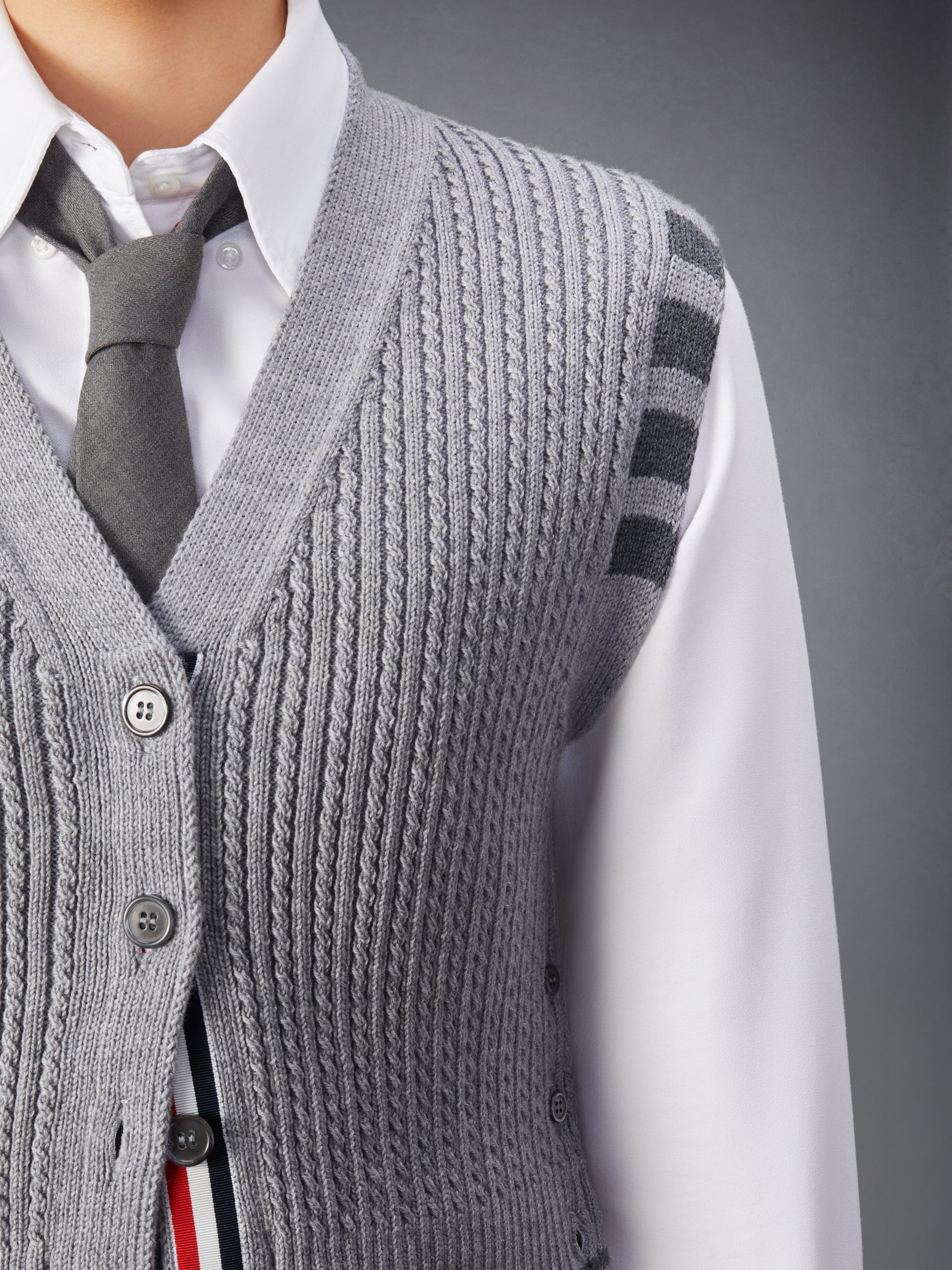 MERINO WOOL 4-BAR CROPPED CABLE CARDIGAN VEST