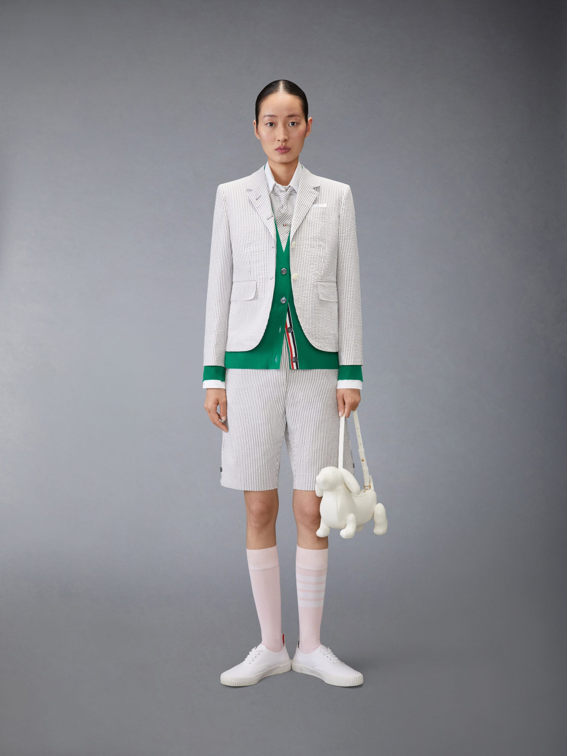 Buttoned side vents and cuffs with signature striped grosgrain trim