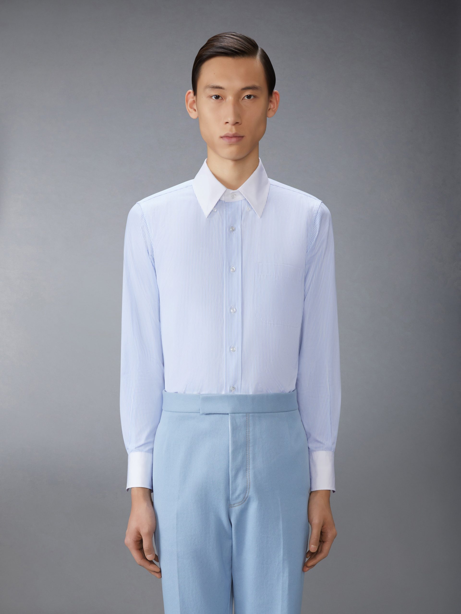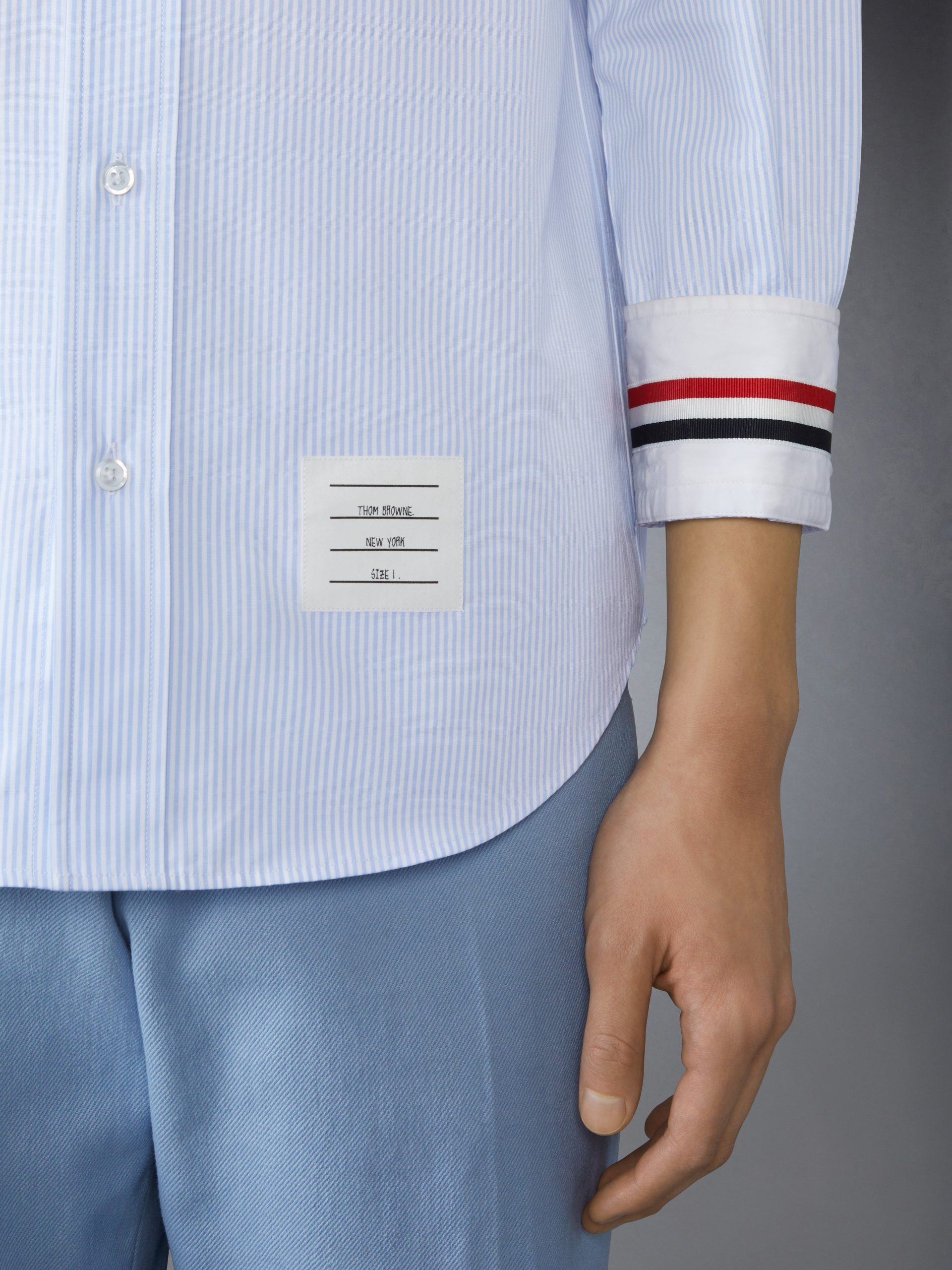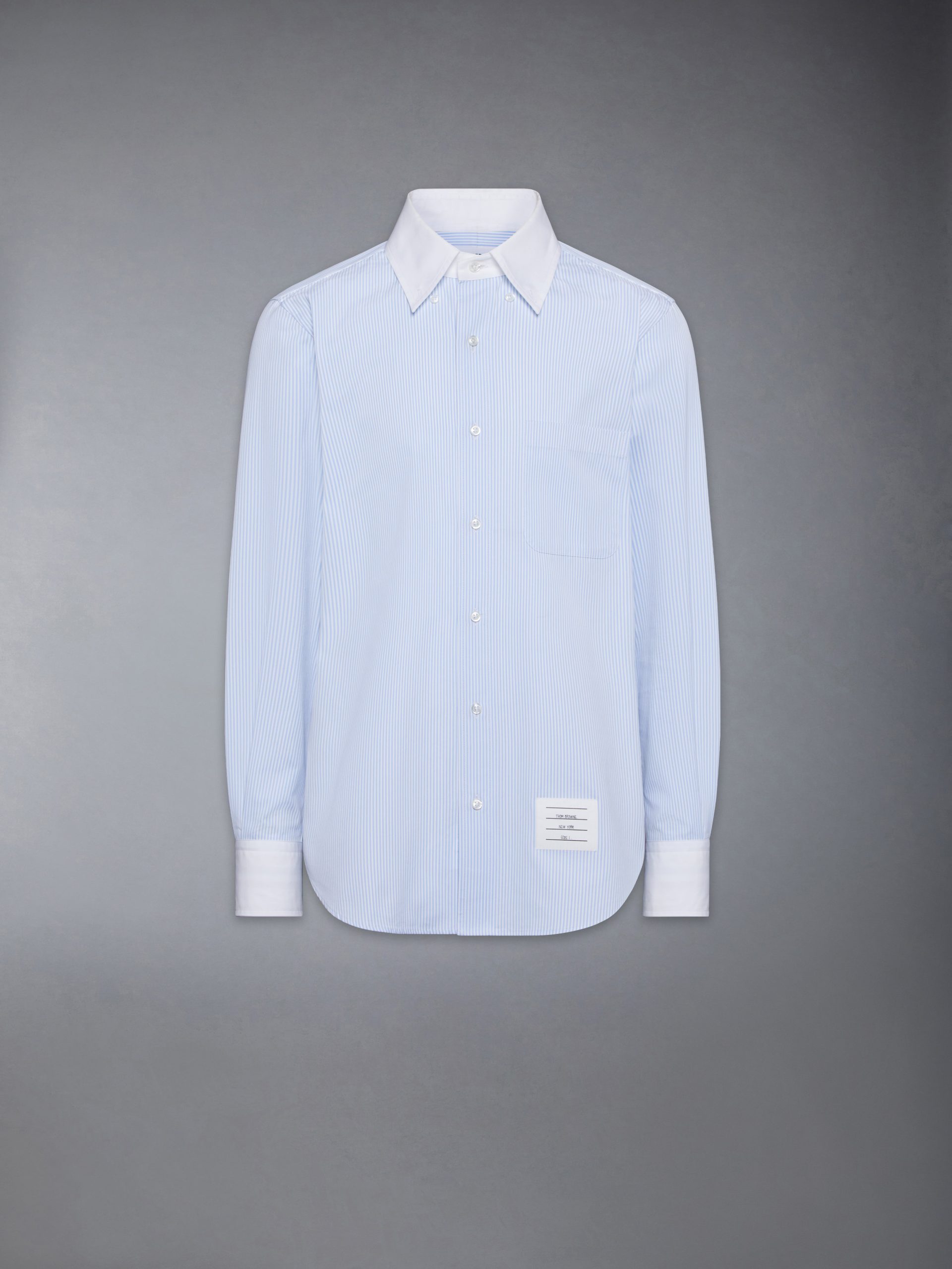 Embodying country life charm. this fine poplin shirt is adorned with pinstripes reminiscent of vintage work uniforms. Pair it with any of our signature dress shorts or trousers.