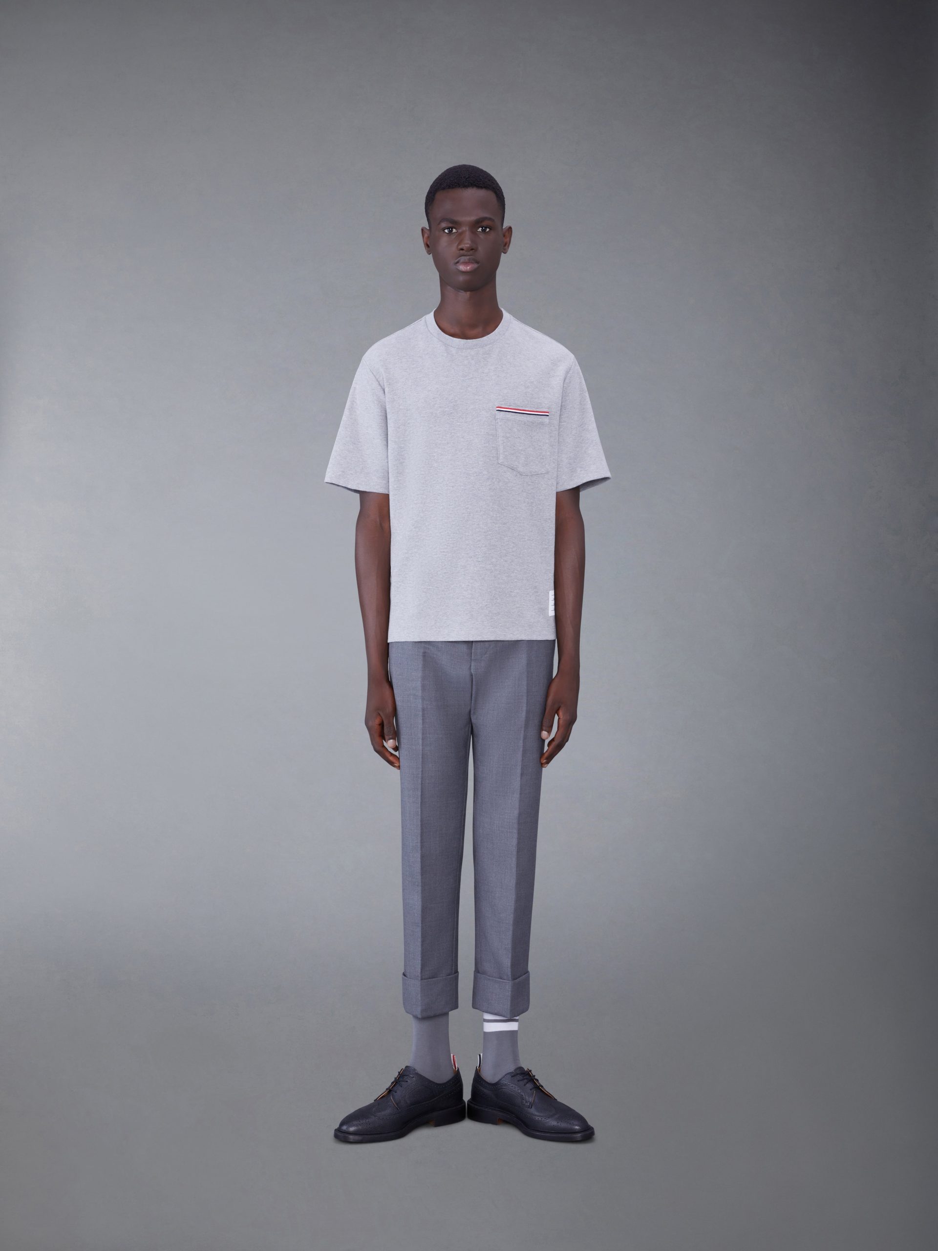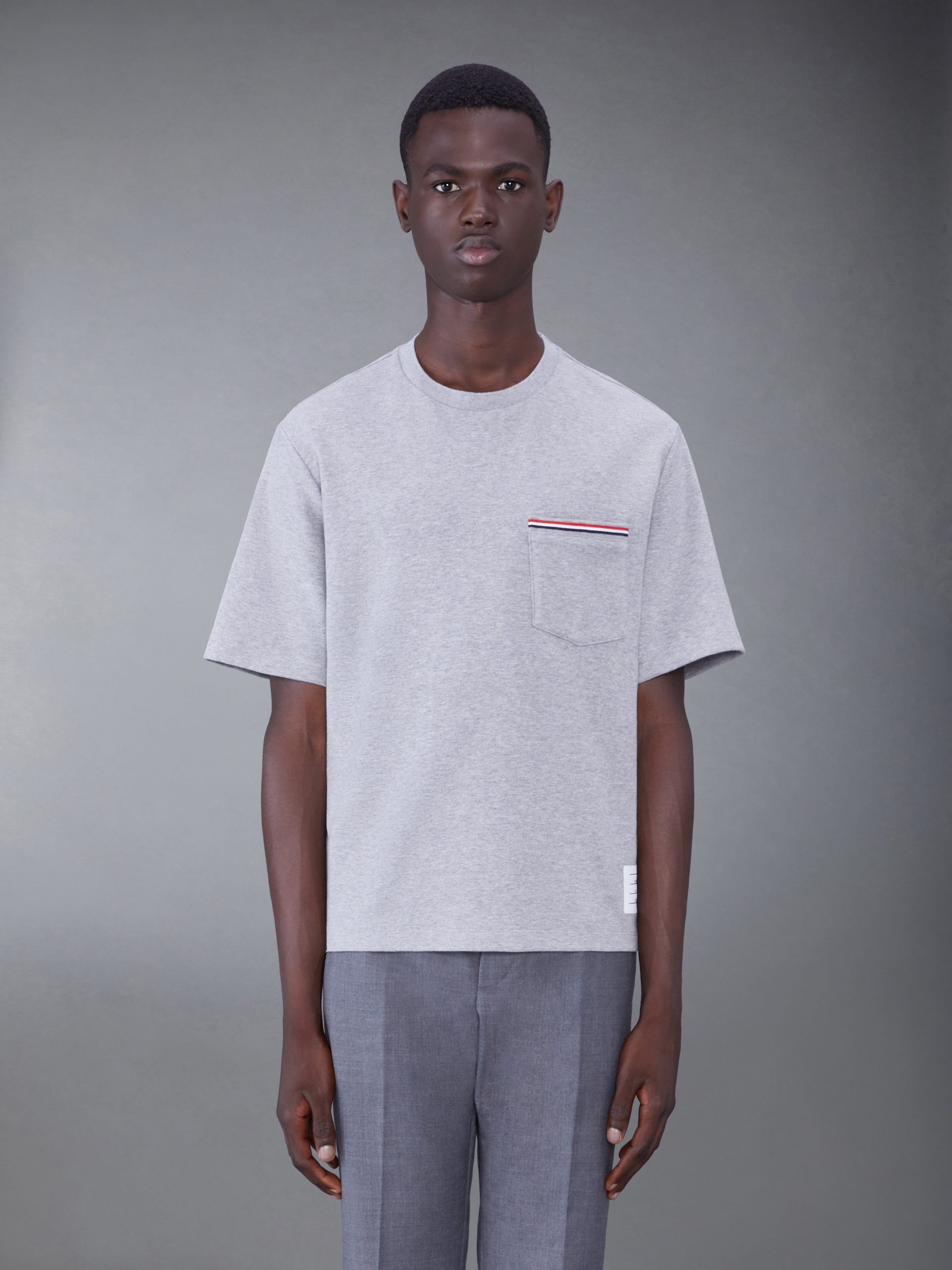 A silhouette that has stood the test of time. our Cotton Milano Oversized Pocket Tee is adorned with signature Thom Browne emblems throughout. and tailored to perfection.