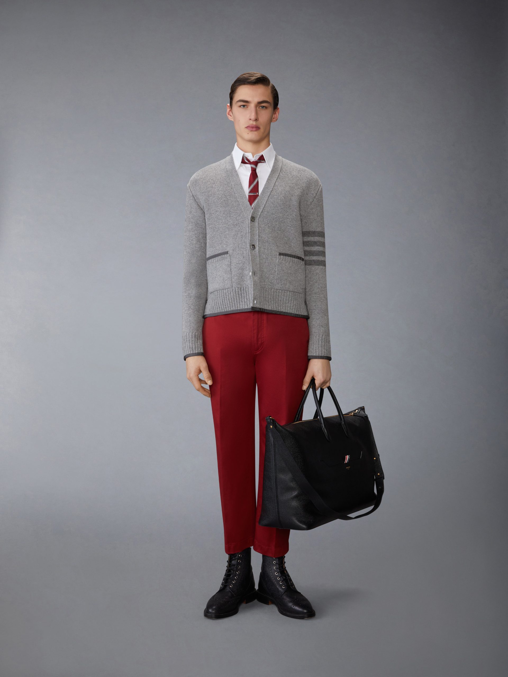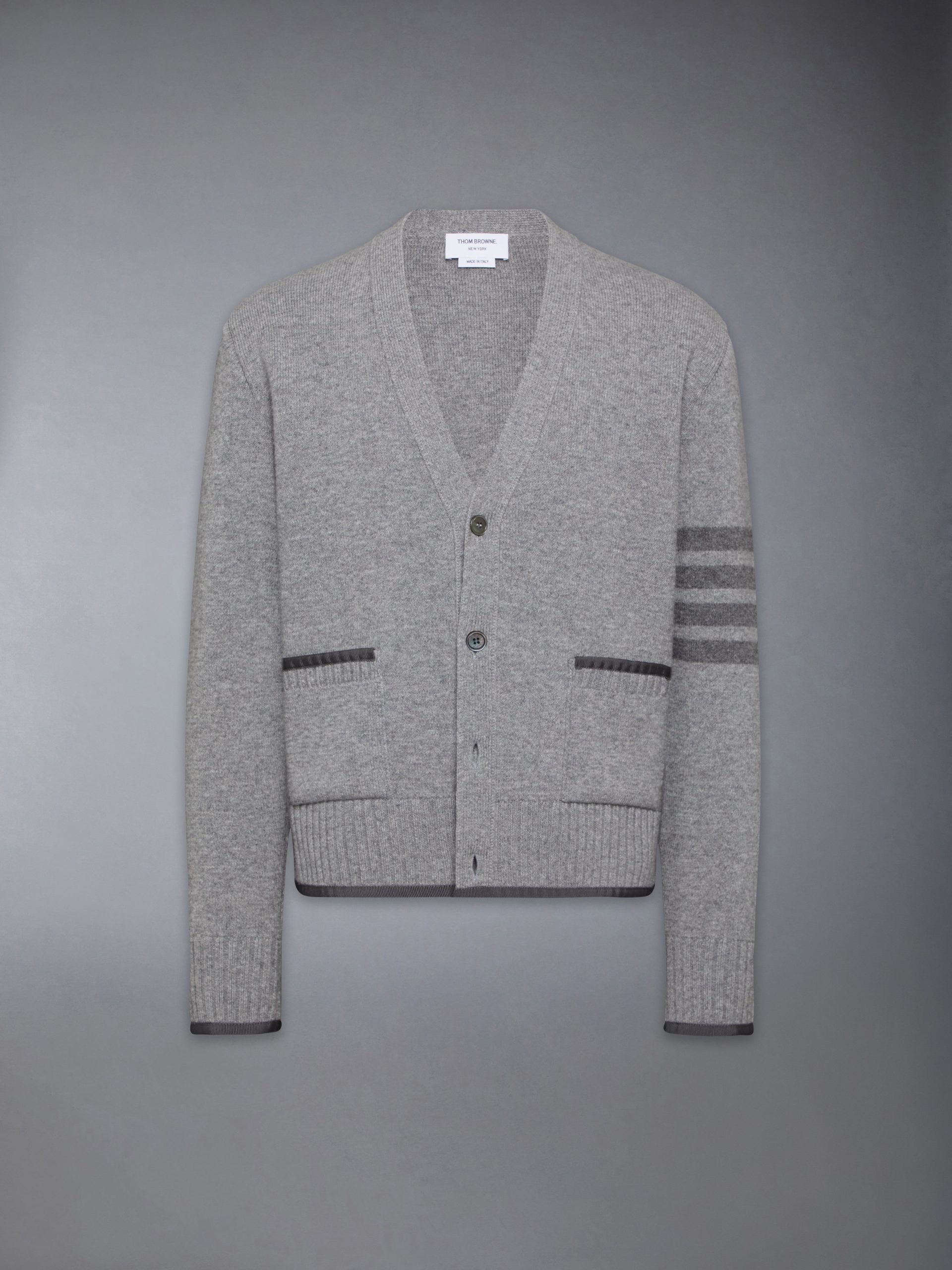 This luxuriously soft cardigan is thoughtfully crafted from fine merino wool. It features signature striped grosgrain trim at the cuffs and side vents. and our beloved 4-bar detailing. Equipped with convenient pockets for carrying your essentials.