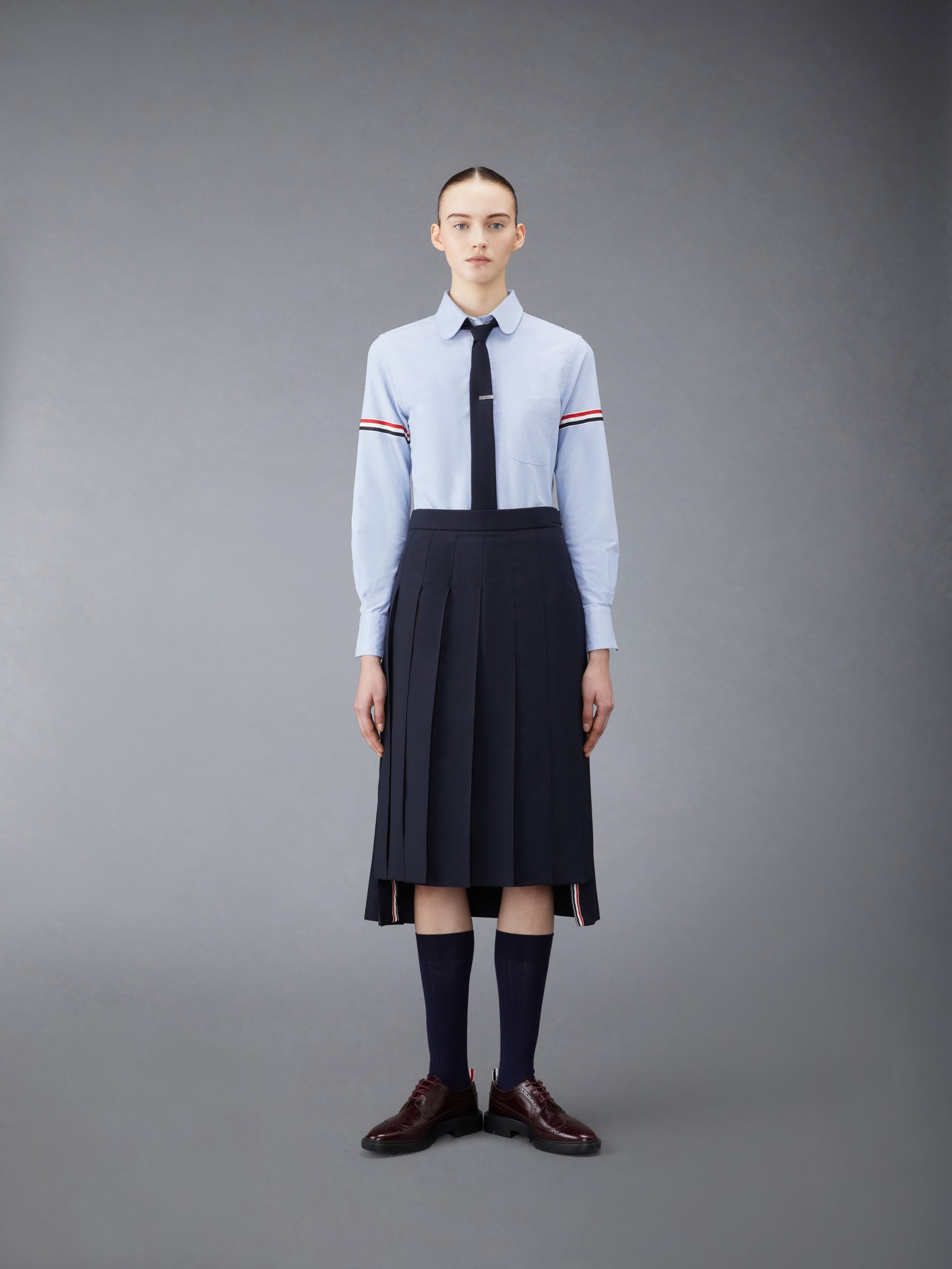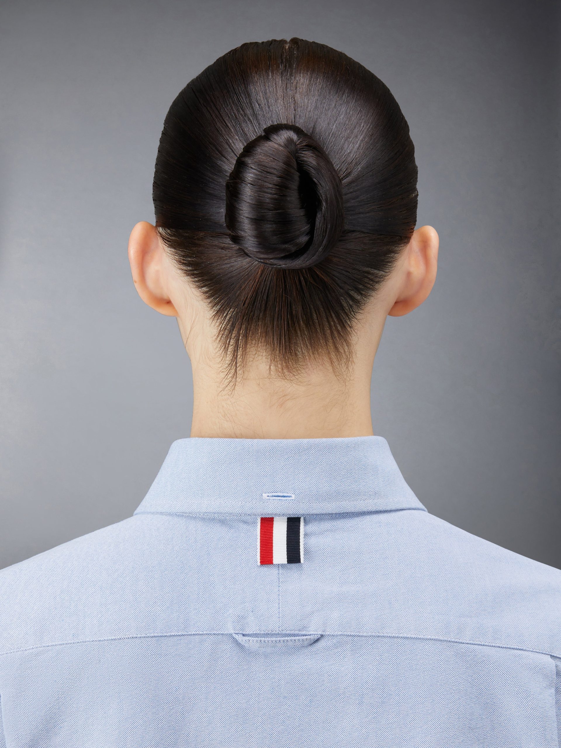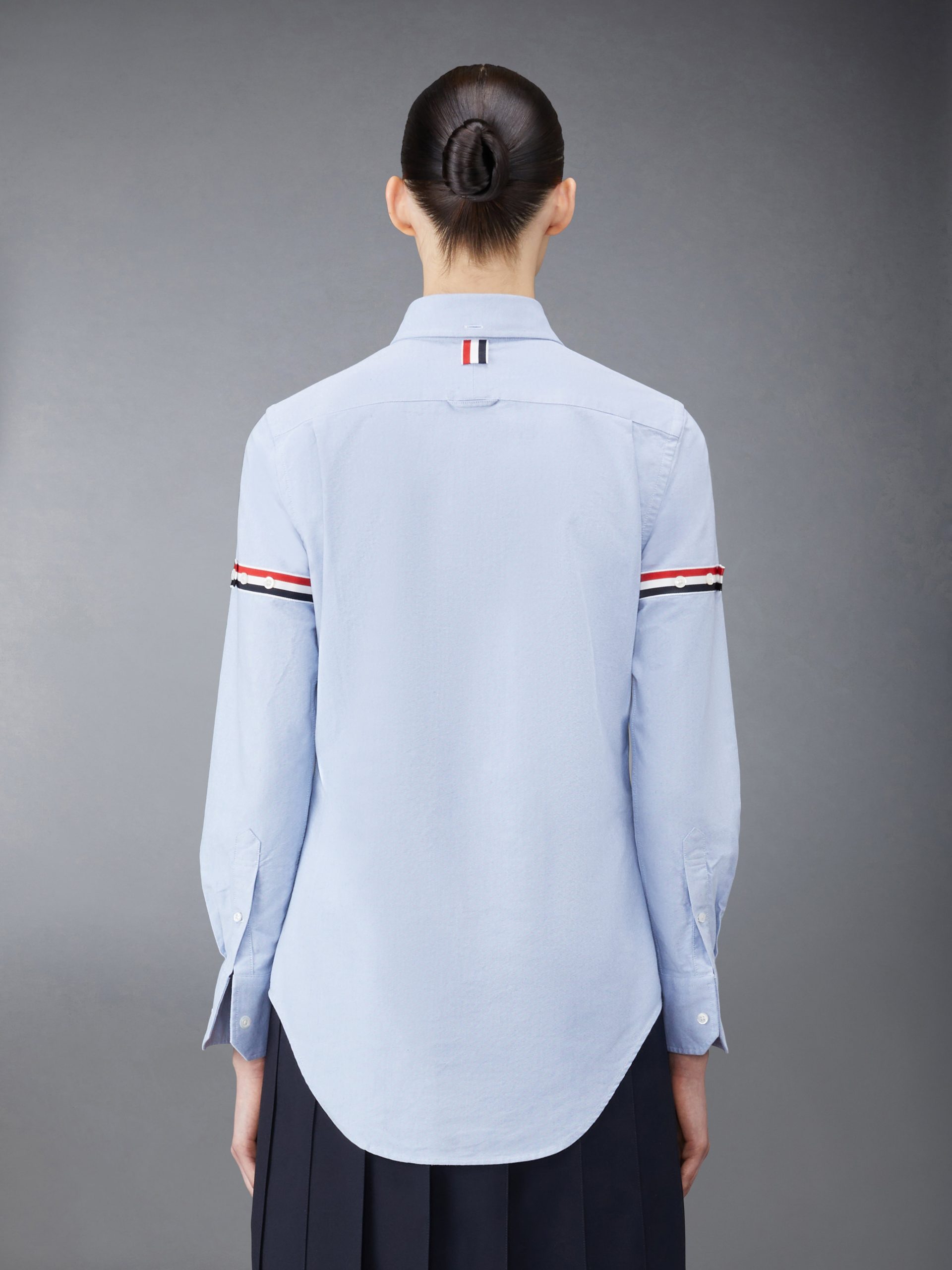 A Thom Browne essential. our Oxford Round Collar Armbands Classic Shirt exhibits quality craftsmanship and meticulous tailoring.