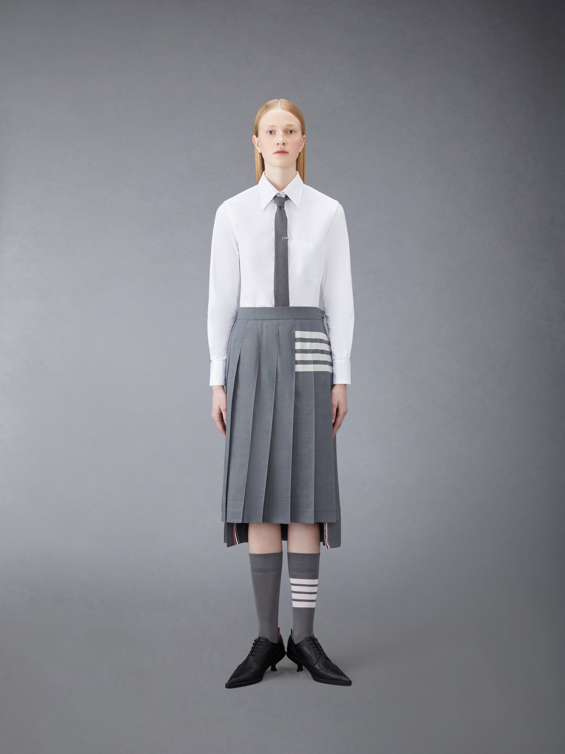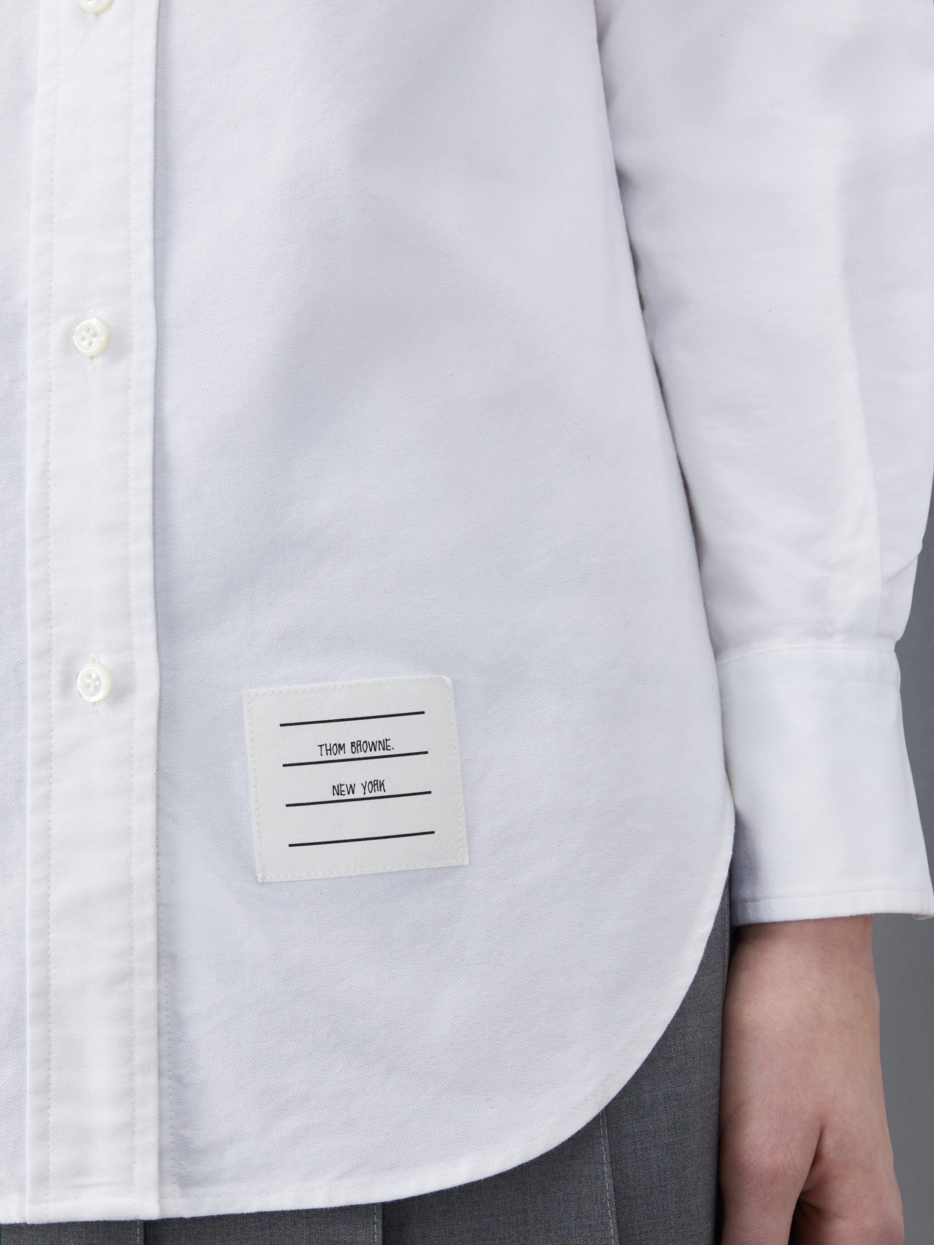 A Thom Browne essential. our Oxford Classic Point Collar Shirt exemplifies Thom Browne’s signature inventive proportions and quality craftsmanship.