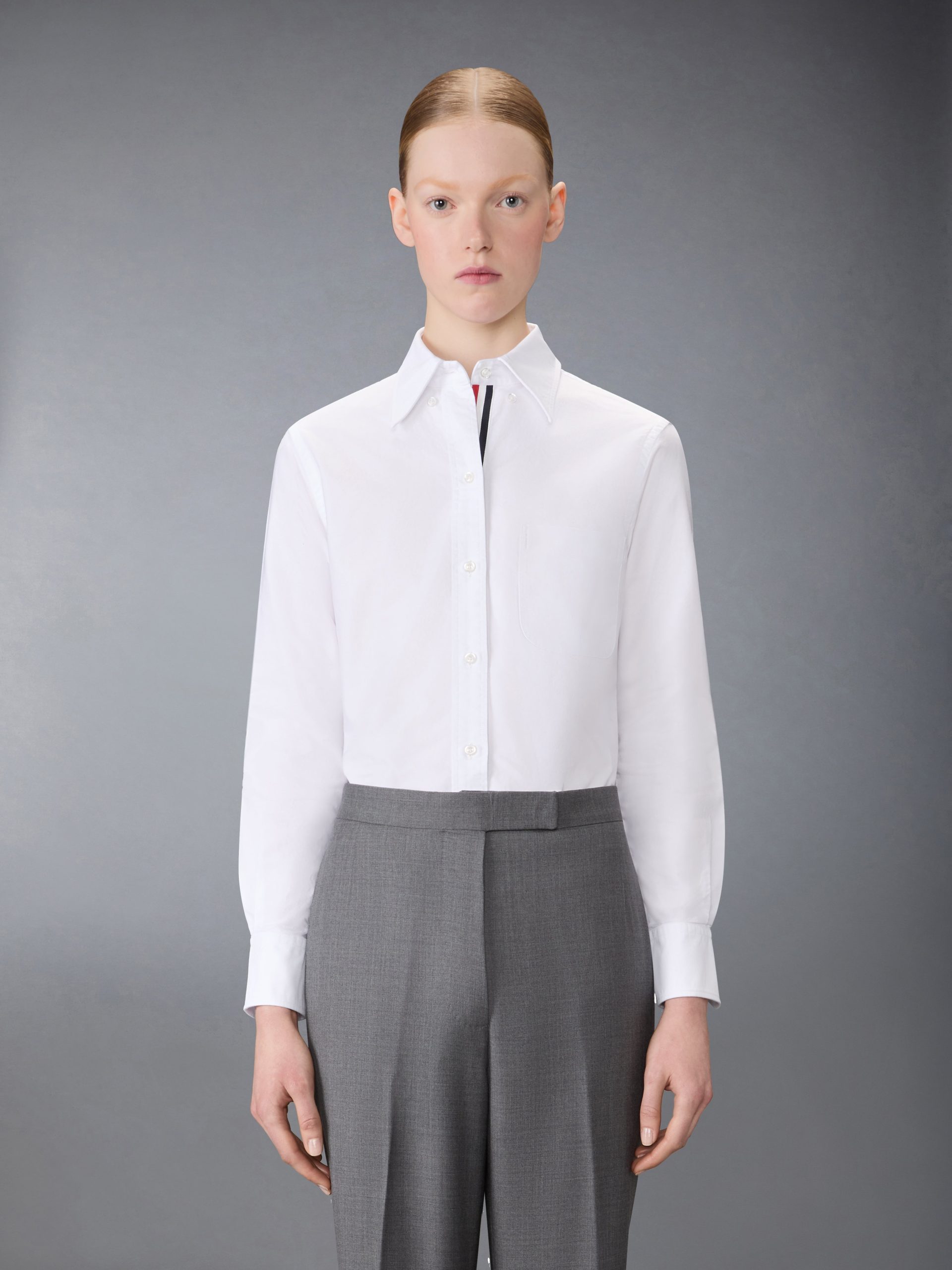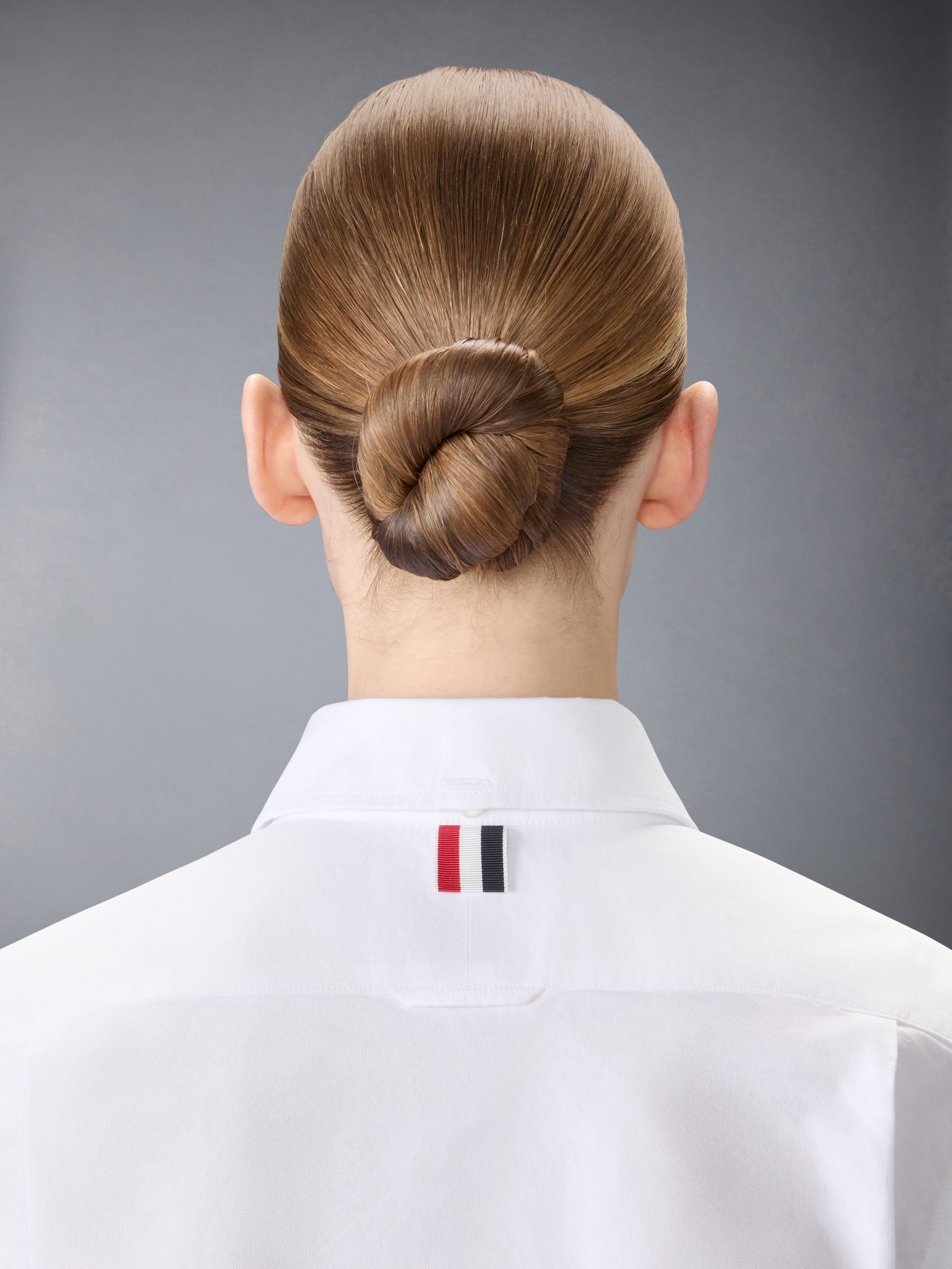 Timeless sophistication. This classic closet staple is elevated with our signature grosgrain trim at the placket—a subtle yet striking detail. Pair it with any of our pleated skirts or trousers.