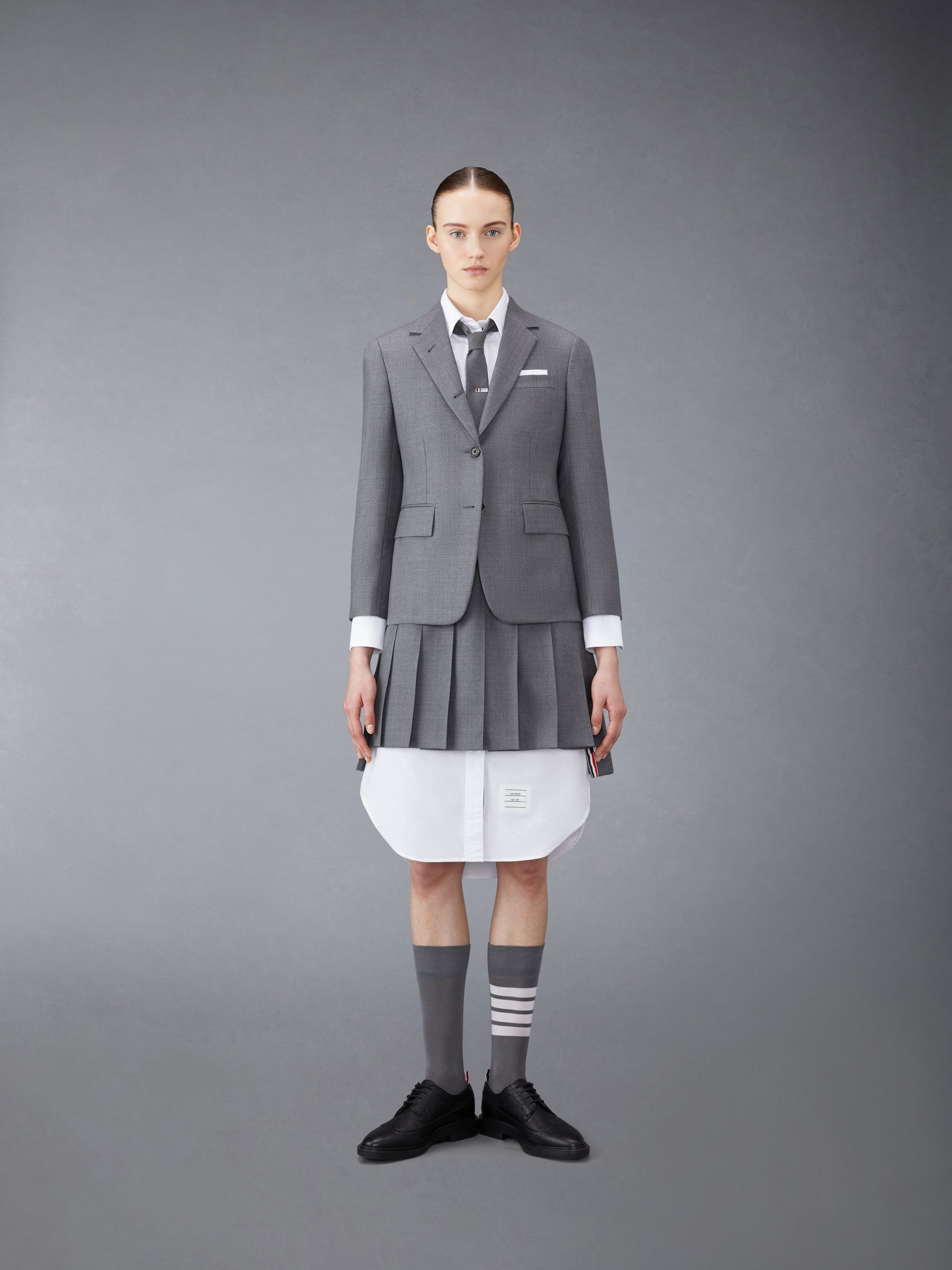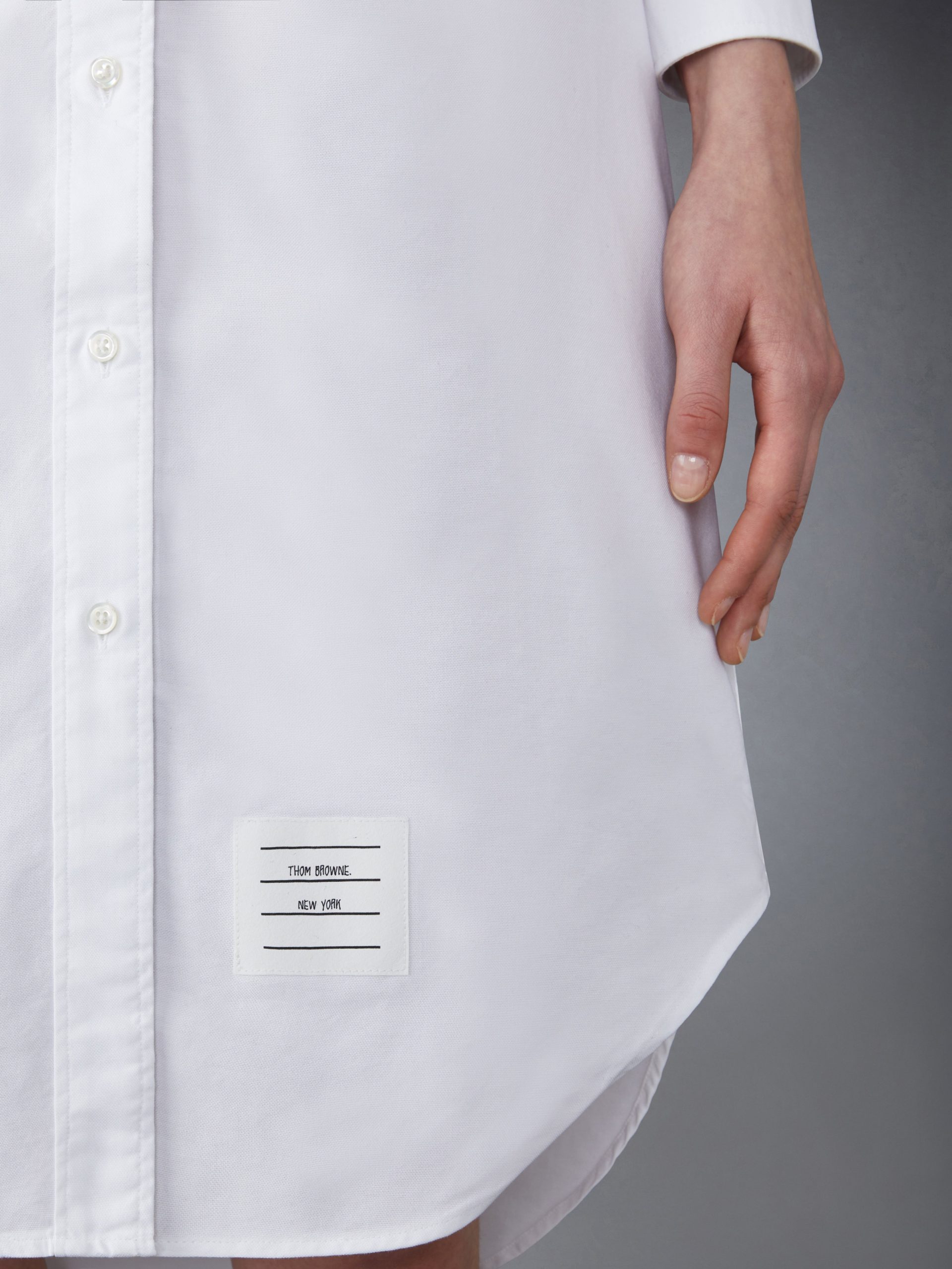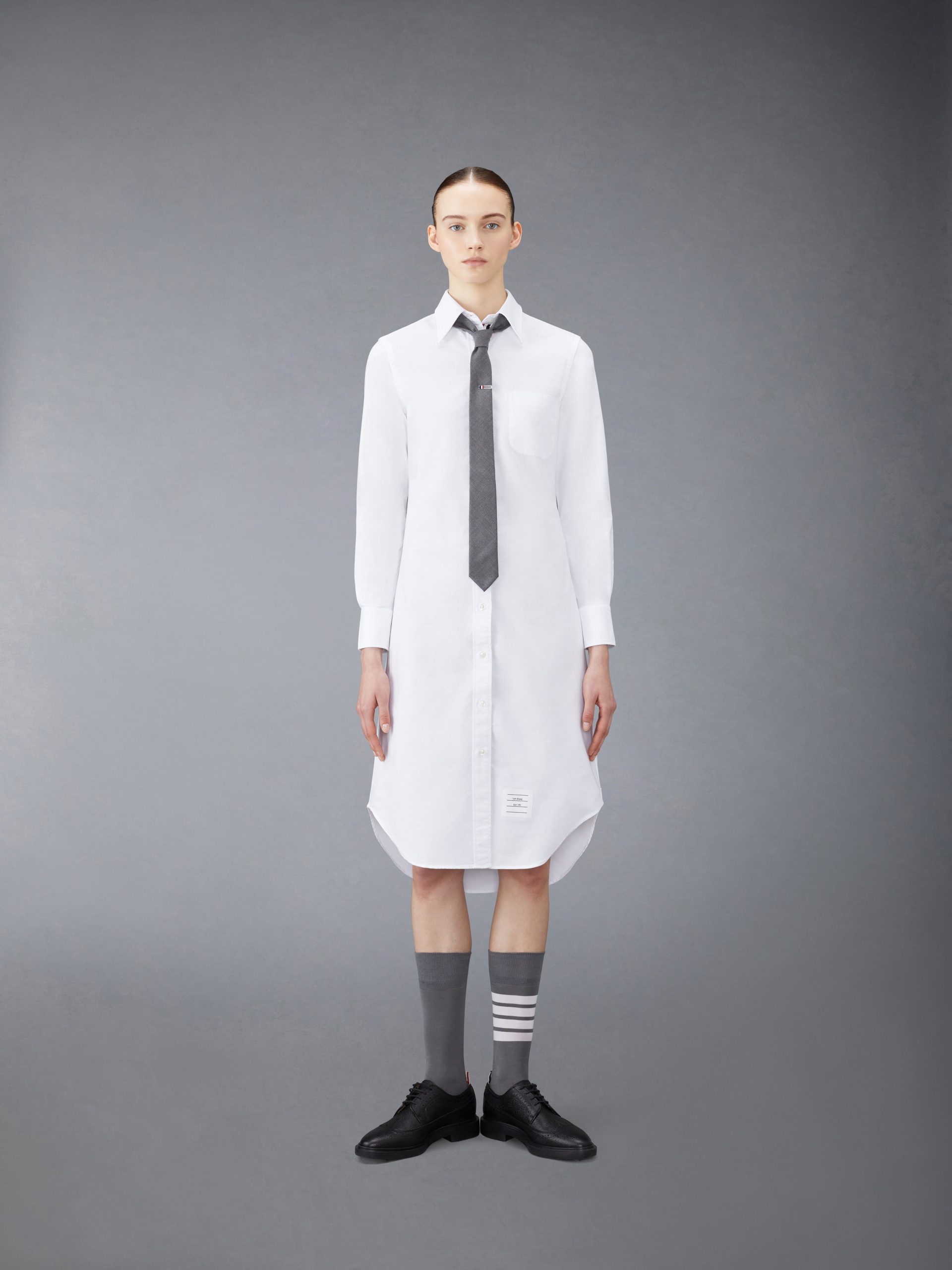 Our Oxford Grosgrain Placket Knee length Point Collar Shirtdress. Crafted from the finest fabric. wear this silhouette alone as an everyday staple or as a base layer for suiting.