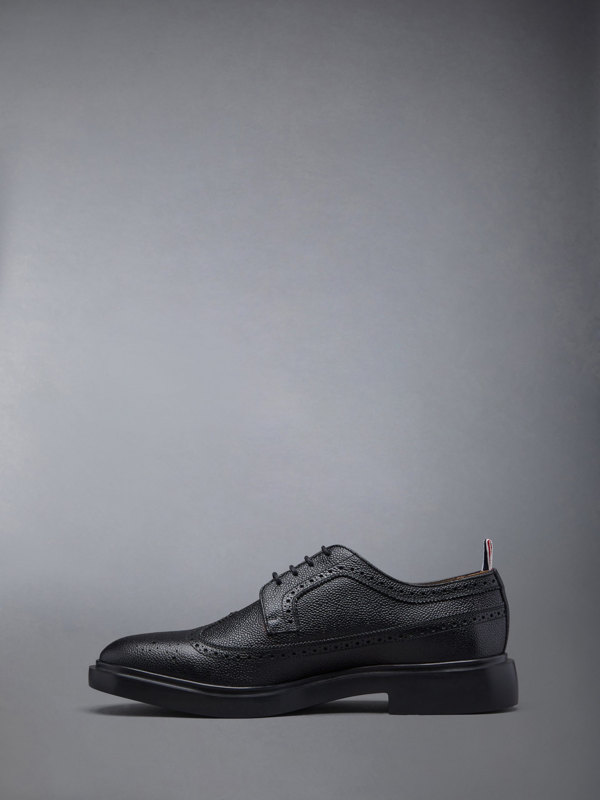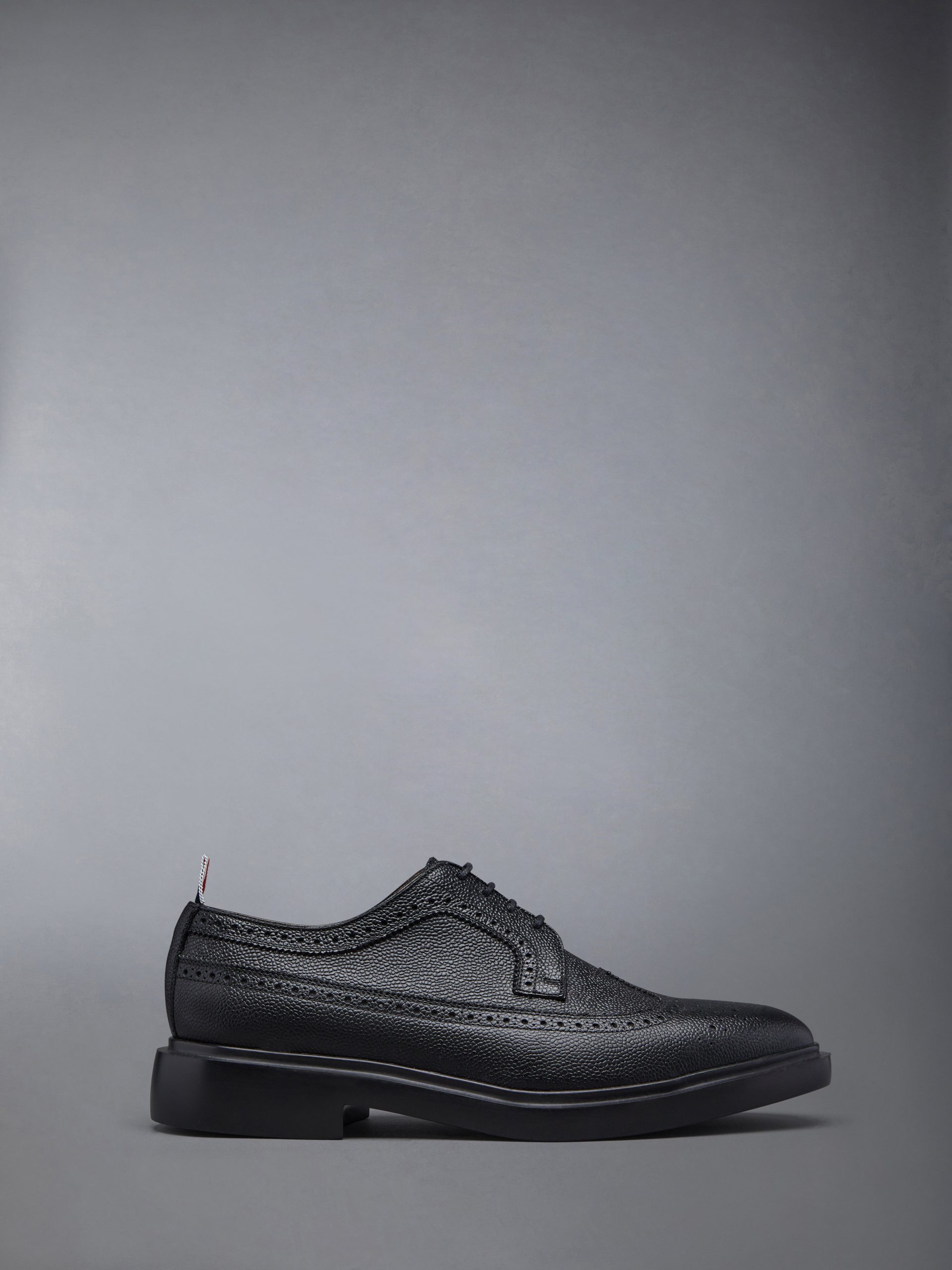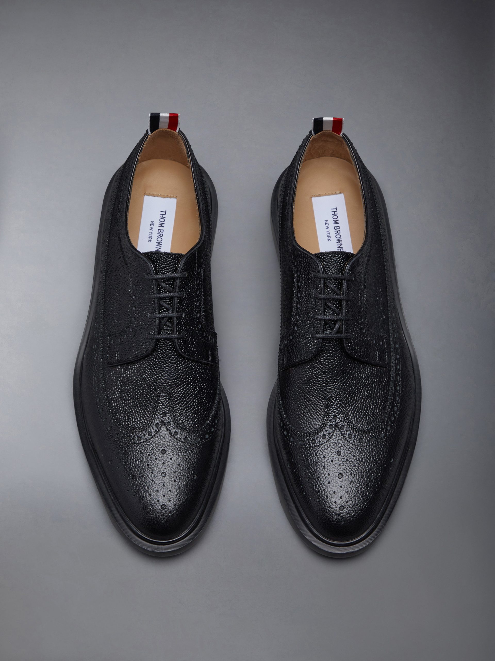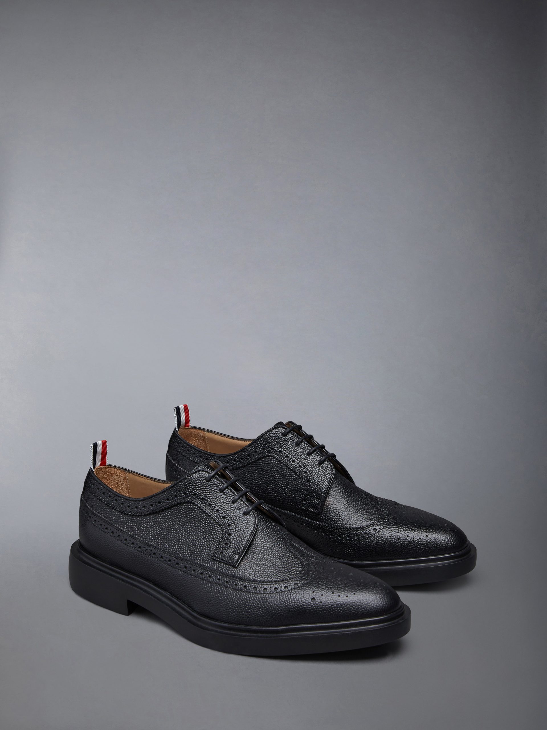 Crafted with the highest quality of classic shoemaking. our Pebble Grain Longwing Brogue is a staple in Thom Browne’s legacy. Features an elongated toe. lightweight rubber sole. and streamlined silhouette.