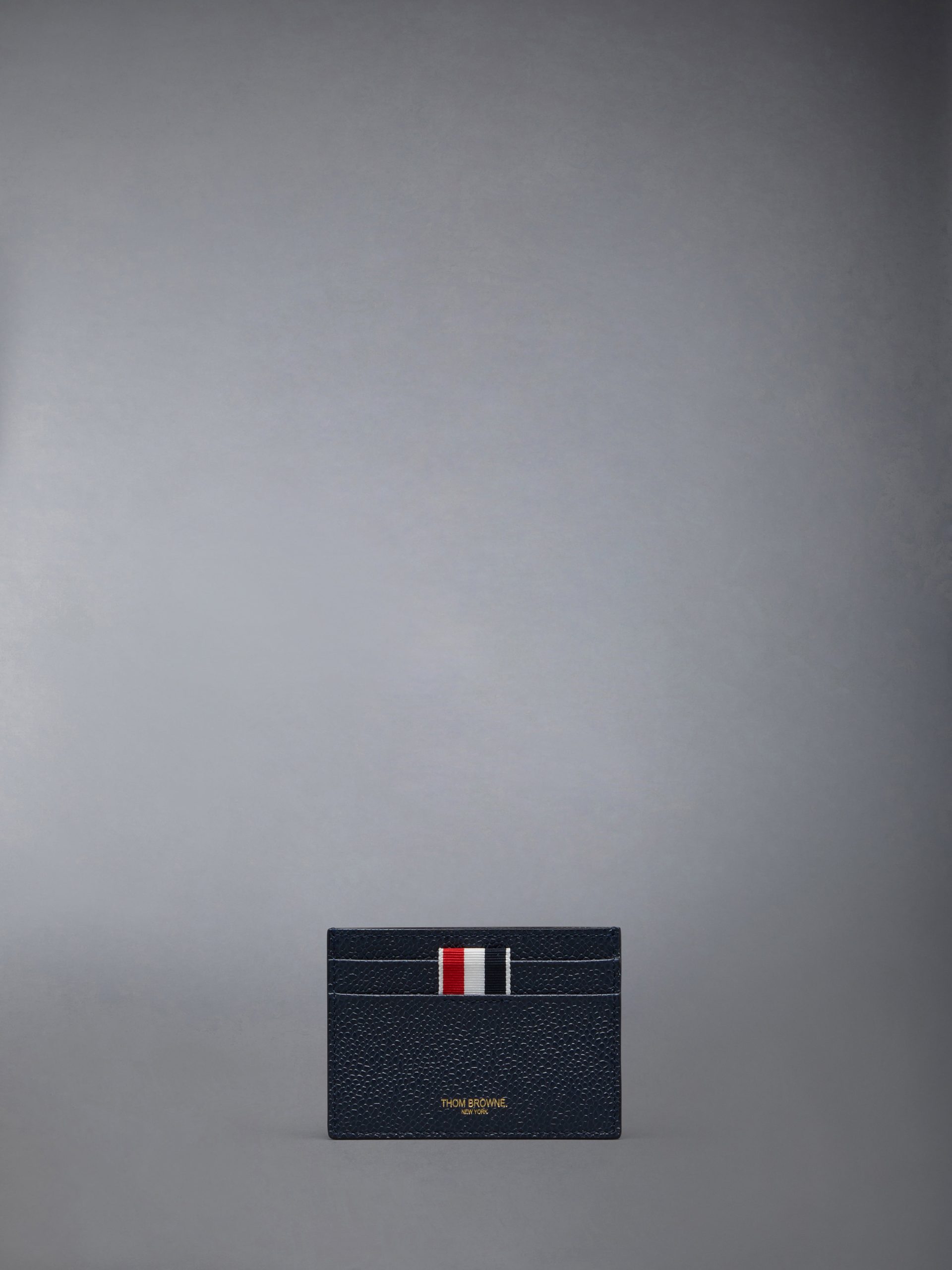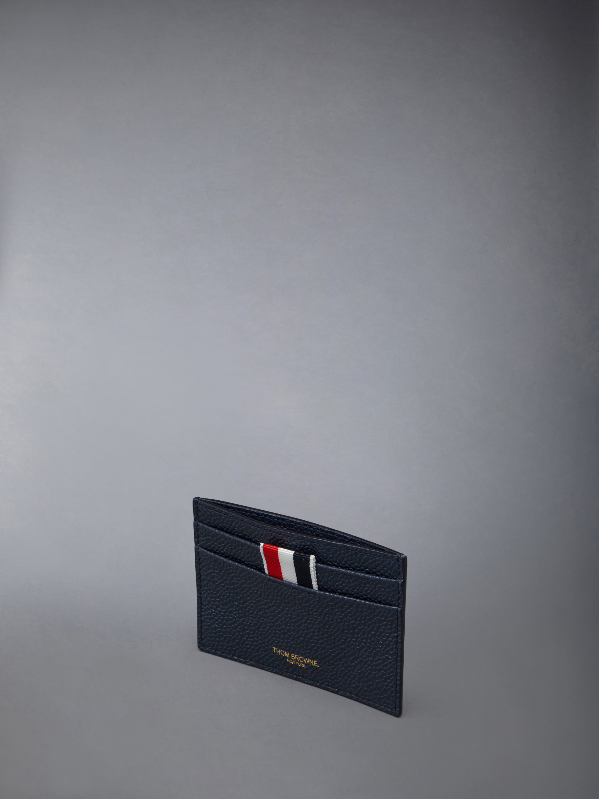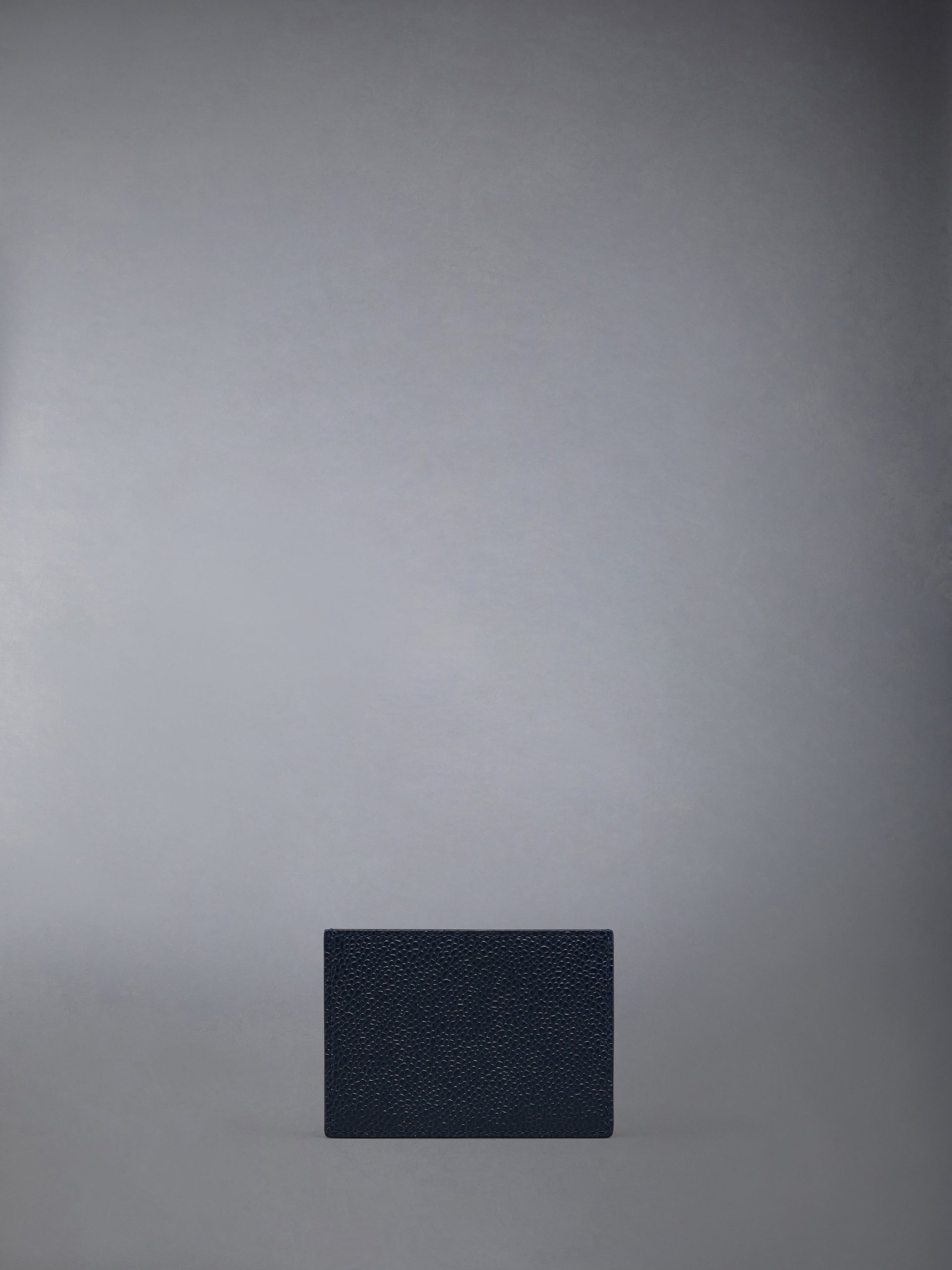 One sided card holder in pebble grain leather featuring 2 card slots on the front and a central compartment.