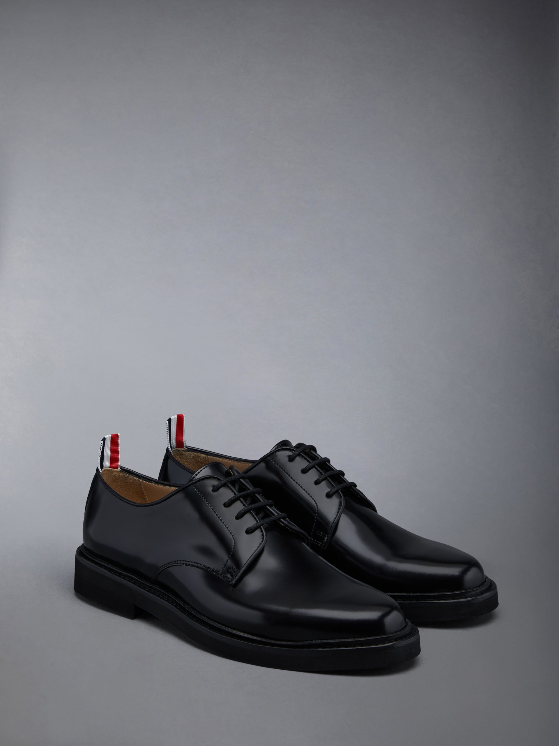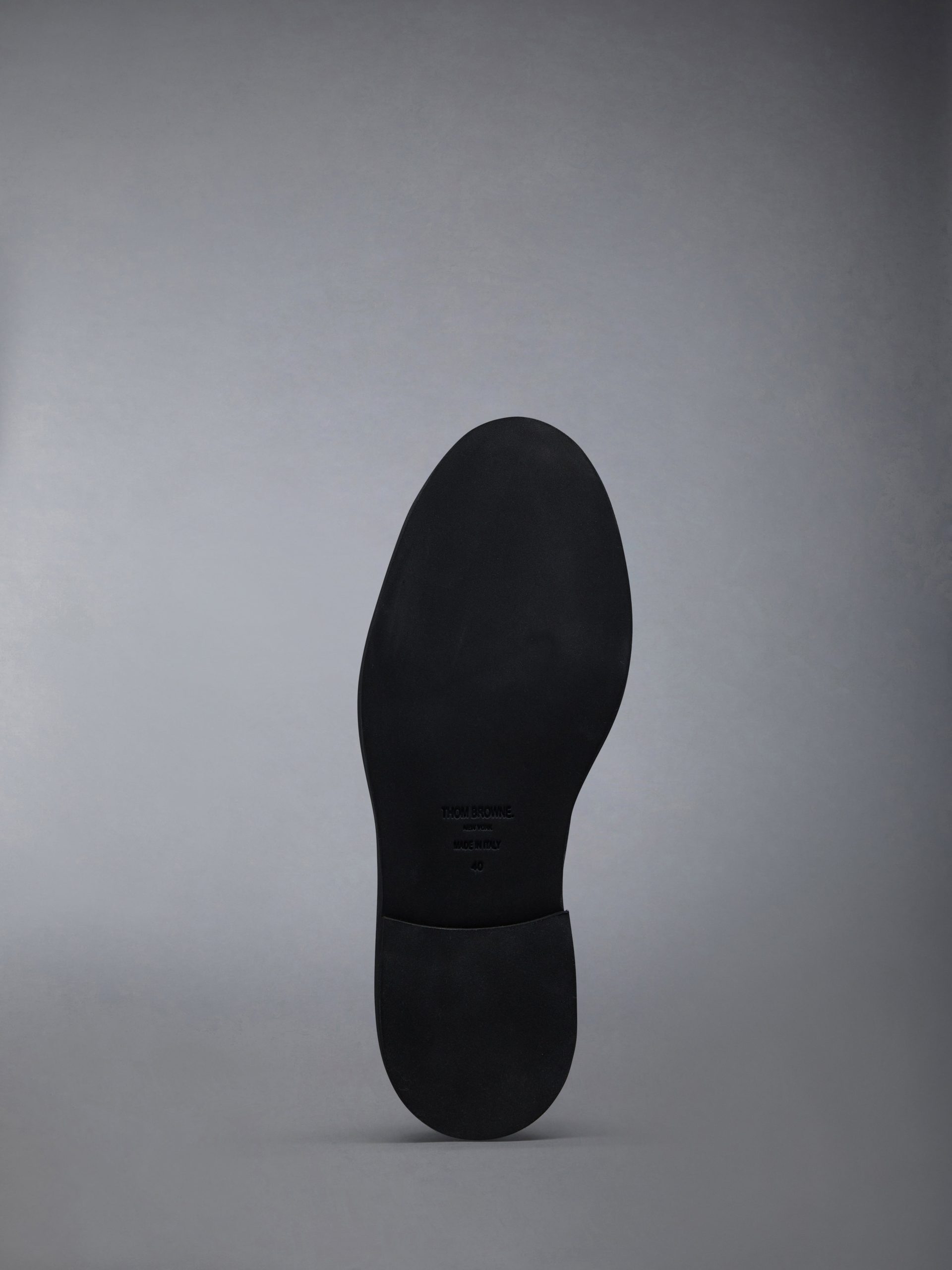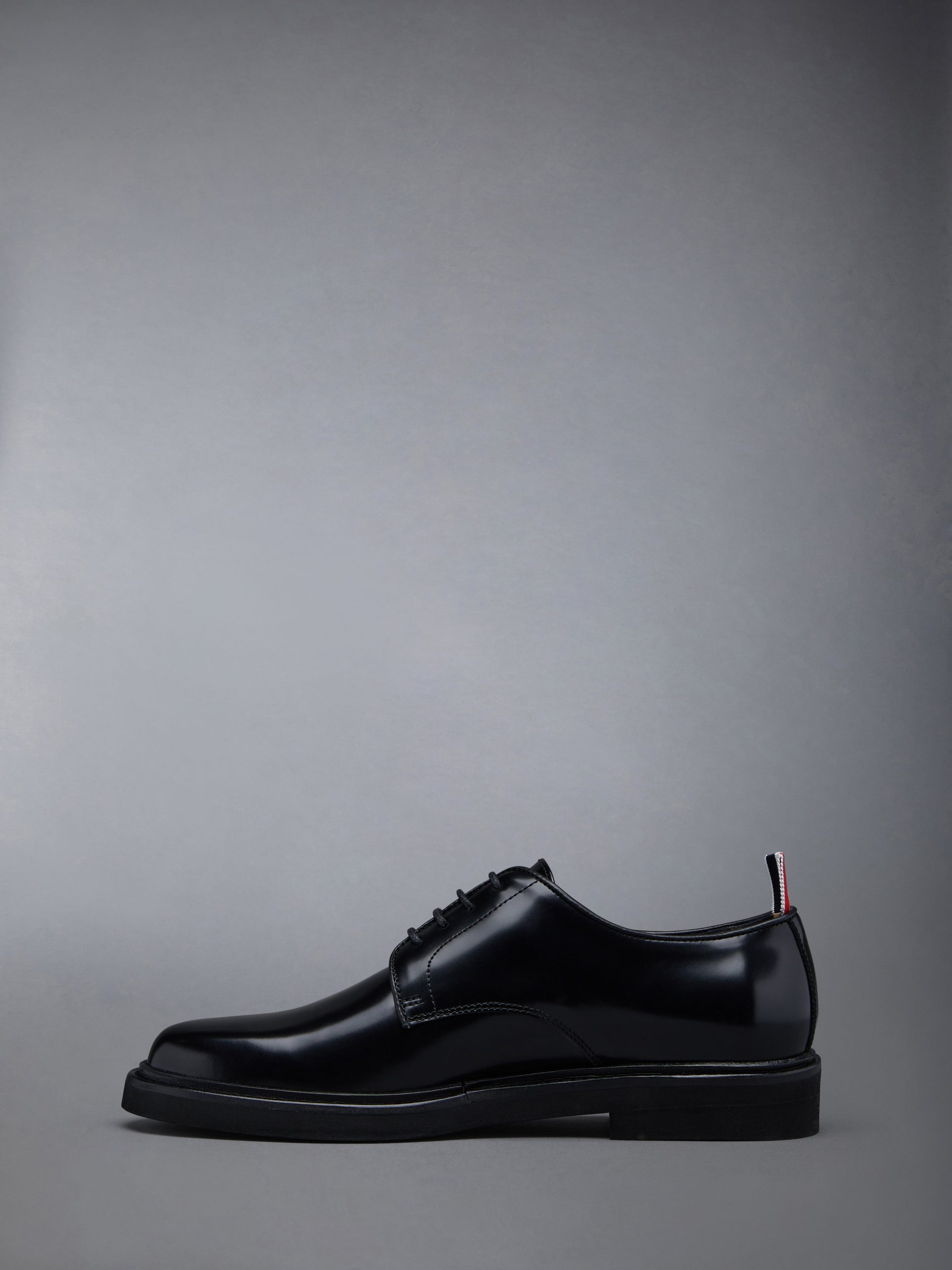 Crafted with the highest quality of classic shoemaking. our Polished Calf Uniform Shoe is a staple in Thom Browne’s legacy. Features a mirror-like shine. leather sole. and streamlined silhouette.