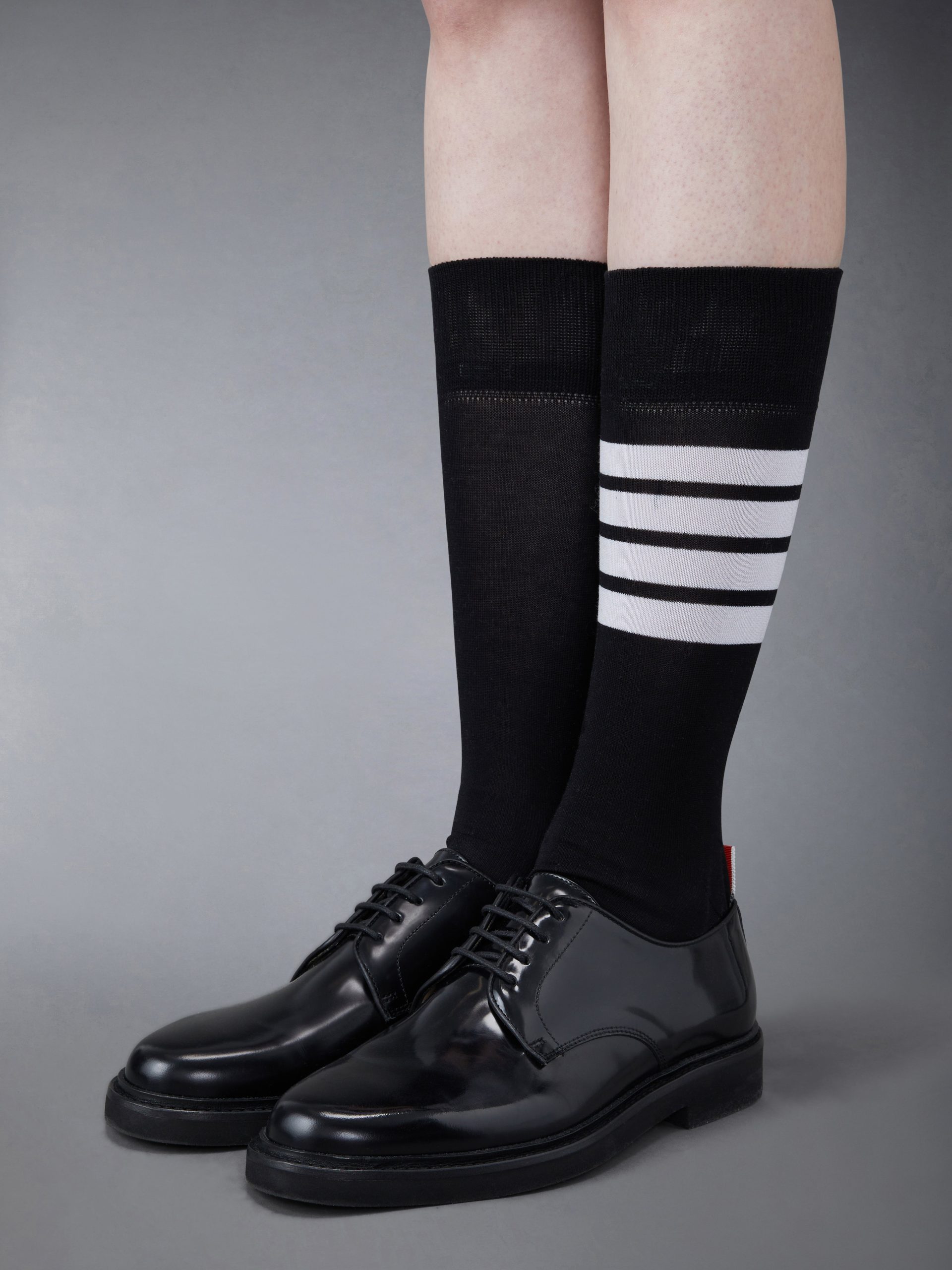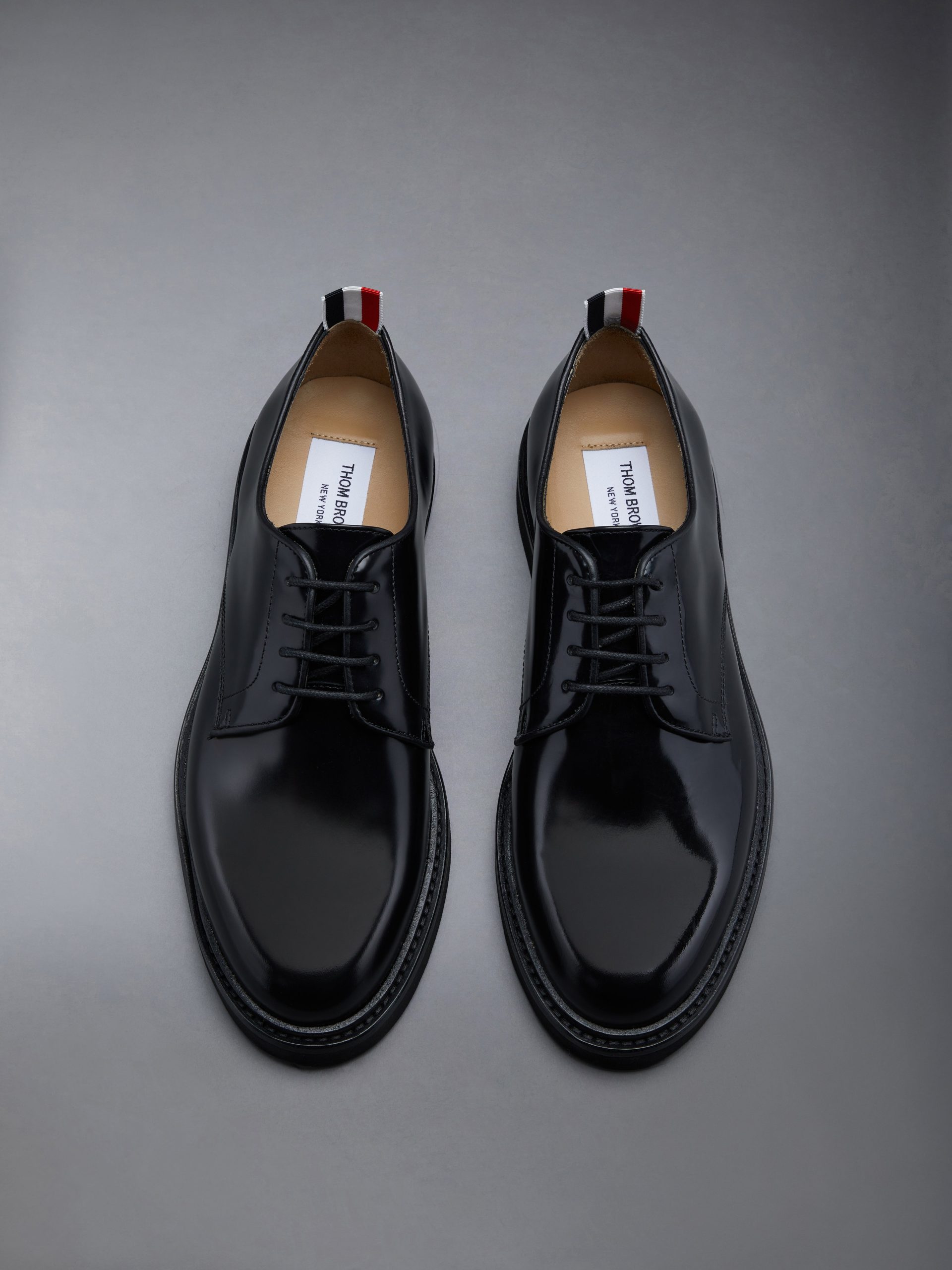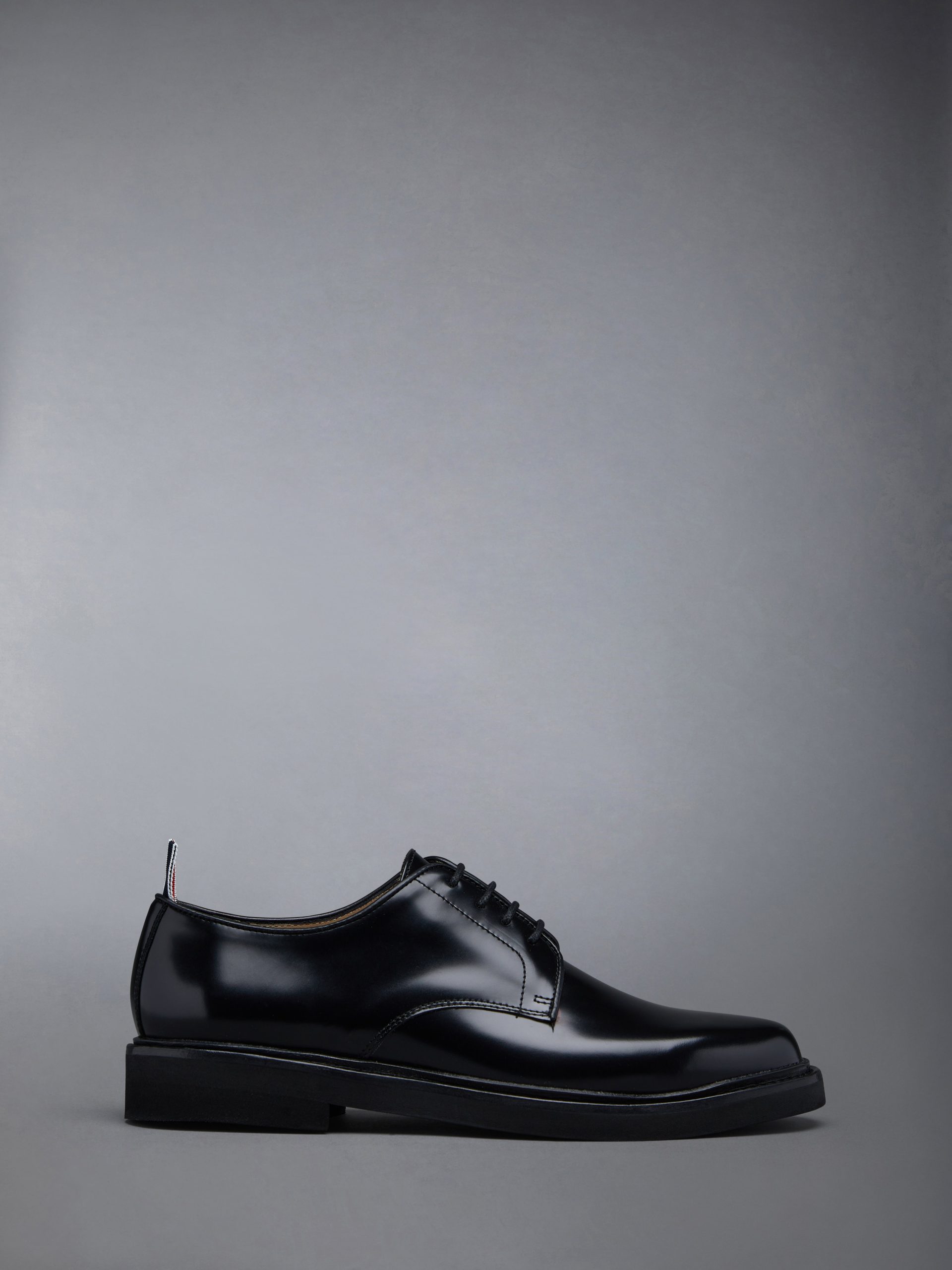 Crafted with the highest quality of classic shoemaking. our Polished Calf Uniform Shoe is a staple in Thom Browne’s legacy. Features a mirror-like shine. leather sole. and streamlined silhouette.