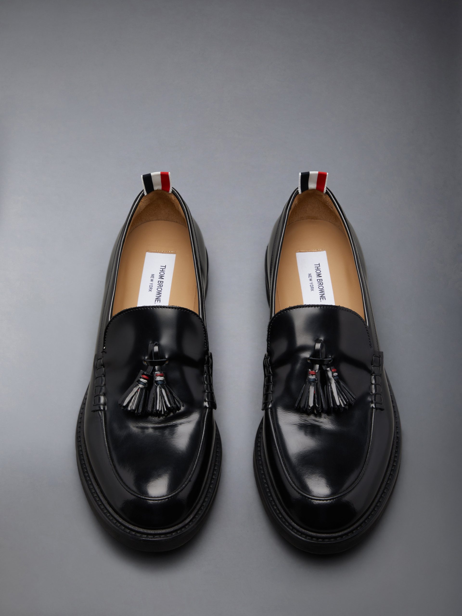 A traditional silhouette crafted with the highest quality of classic shoemaking. our Spazzolato Tassel Loafers feature a micro sole and calf leather upper. perfect for elevated spring evenings. or days at the office.