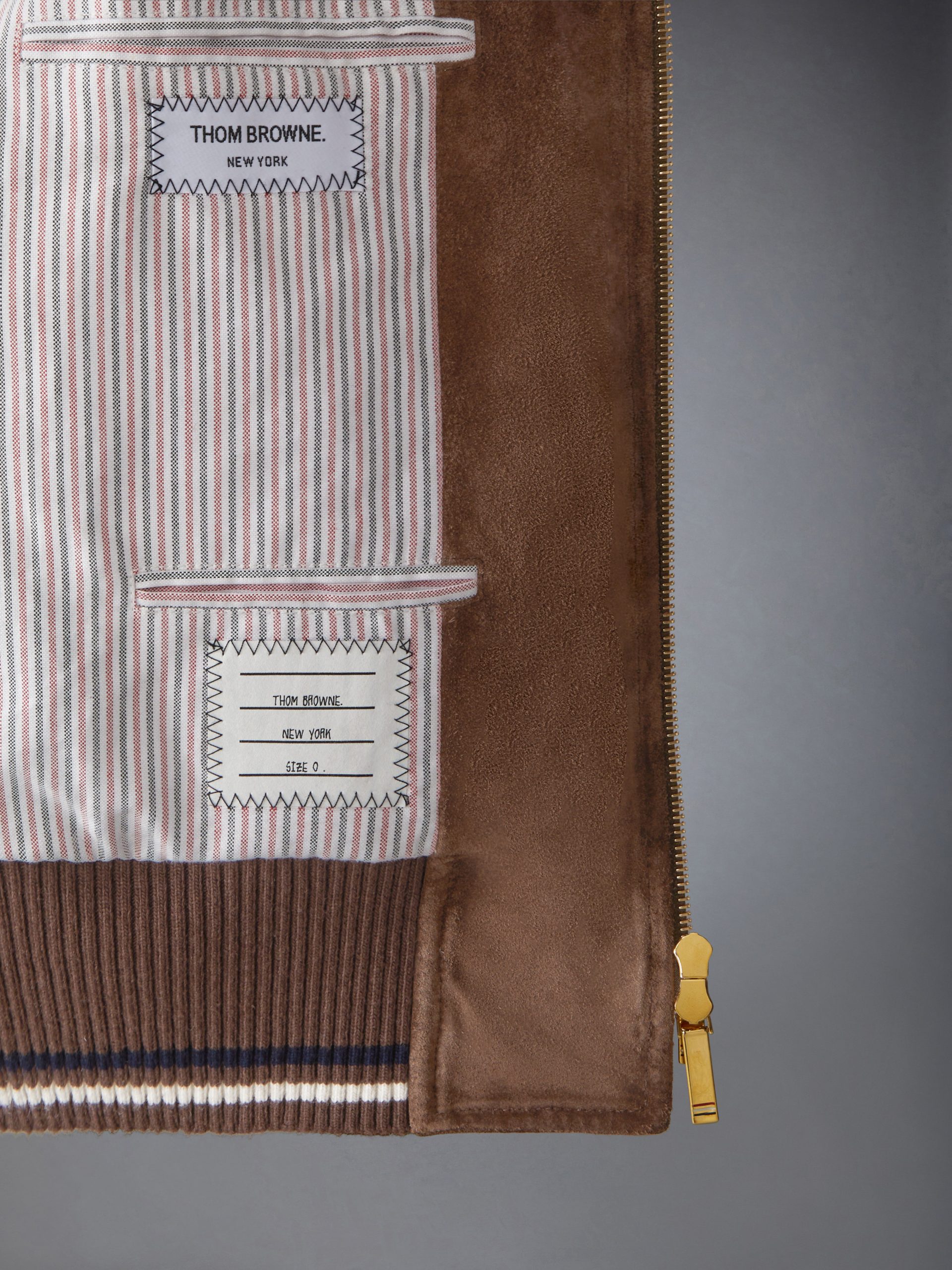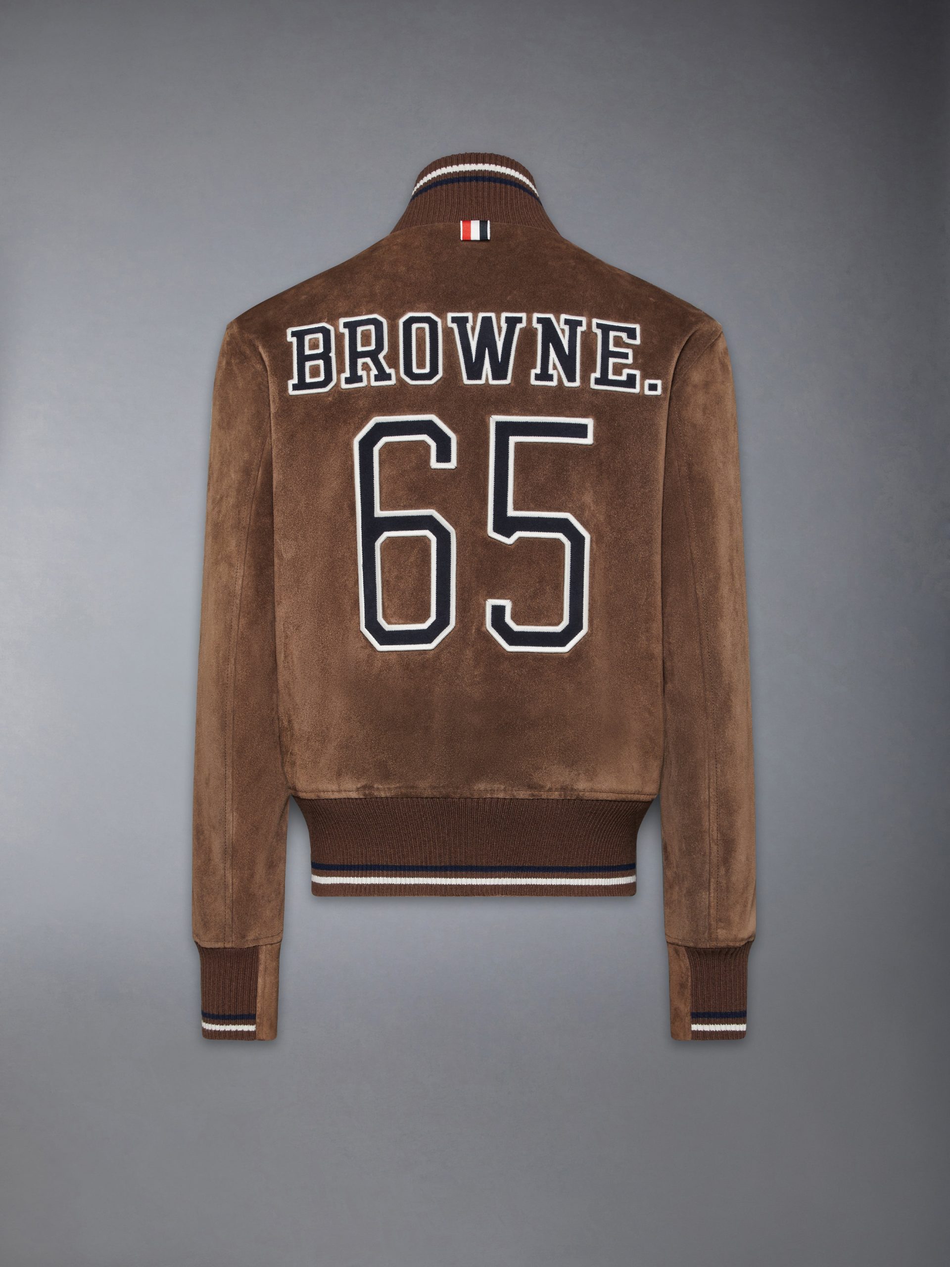 Paying homage to collegiate classics. bold Browne lettering and the number 65 — a nod to Thom’s birth year—are rendered in an iconic font. famously tied to Notre Dame. Polished snap buttons. engraved with the Thom Browne insignia. reflect Thom’s unwavering dedication to perfection—where every detail. no matter how small. is crafted with intention and the utmost care.