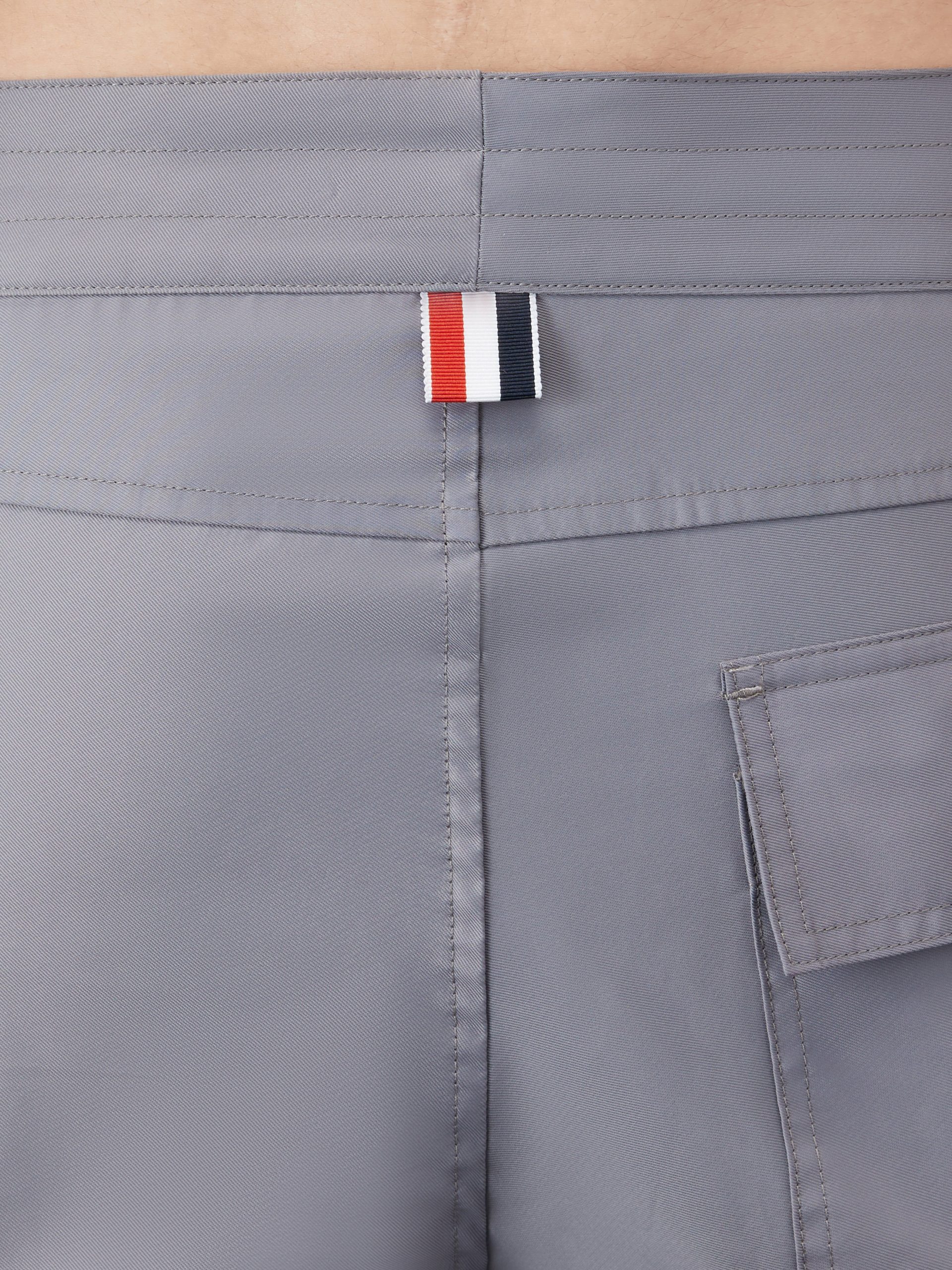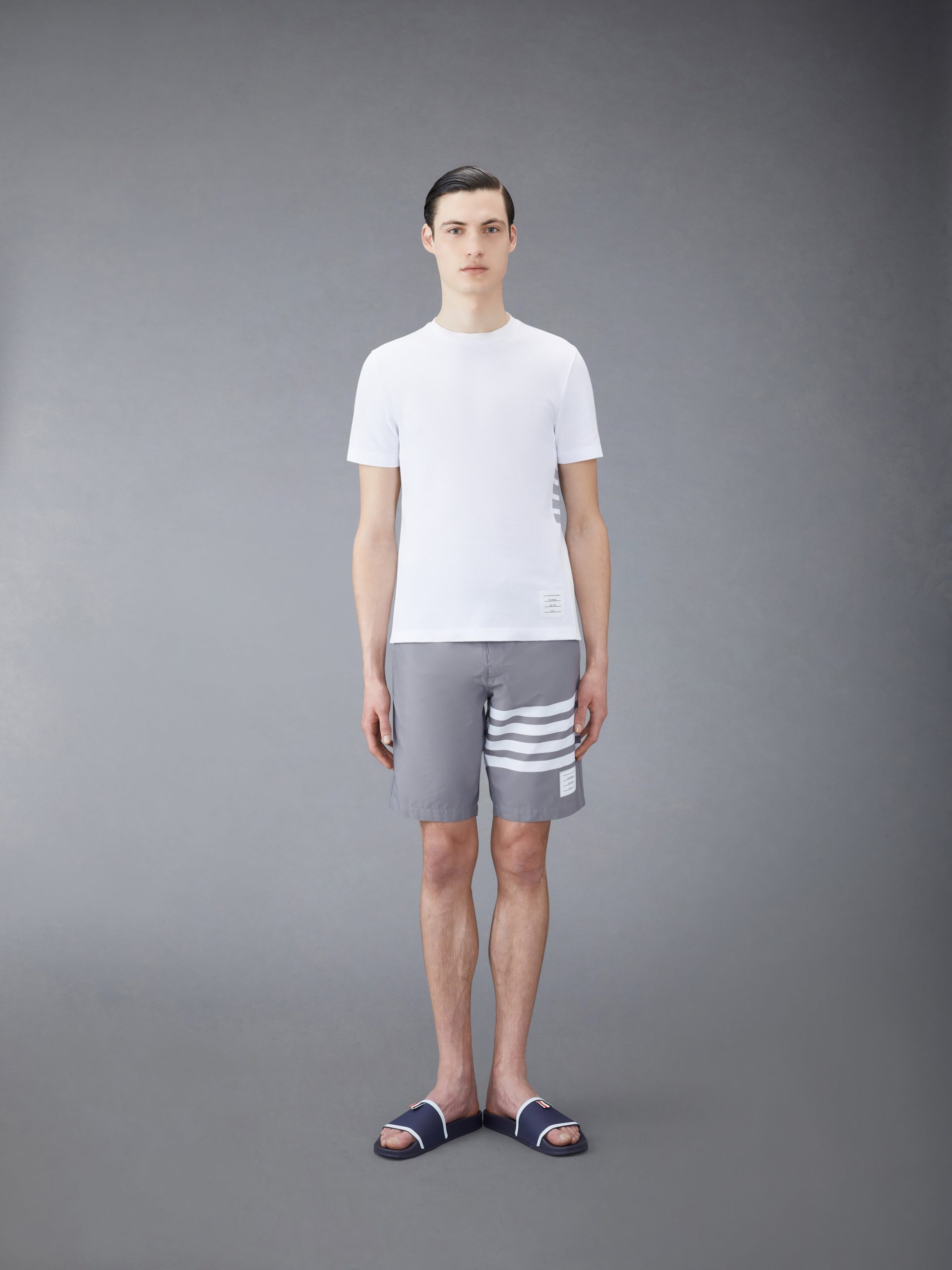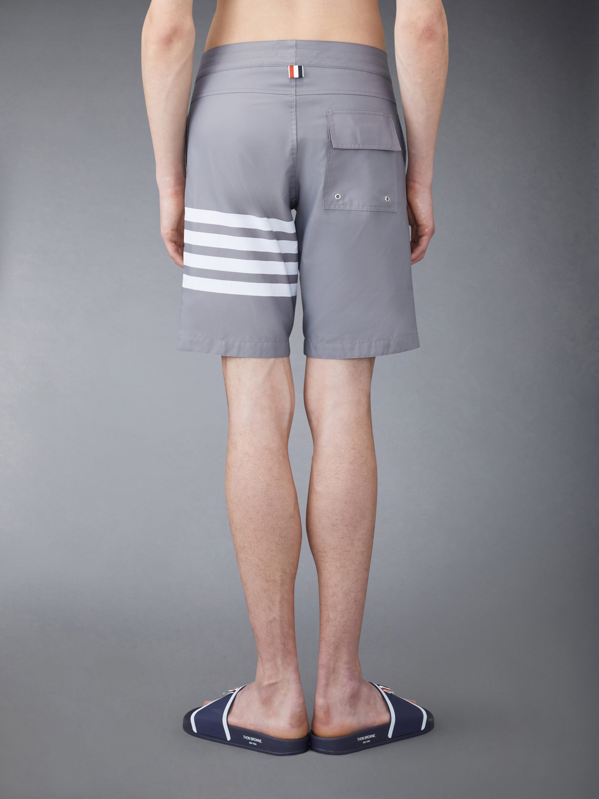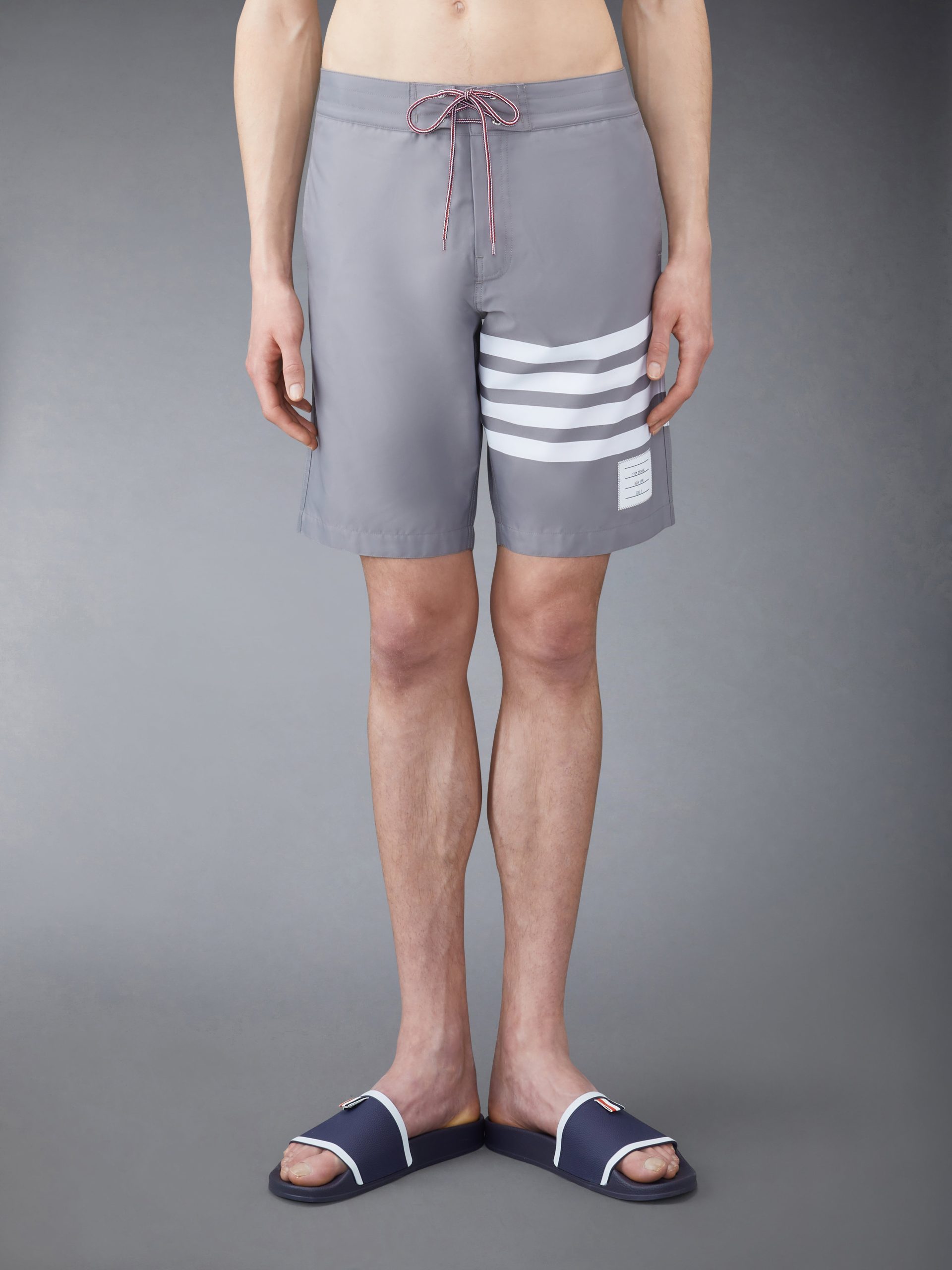 Swimwear made artful. Our Swim Tech 4-Bar Board Shortsis equipped with sleek cut-outs and our iconic stripe grosgrain loop tab.