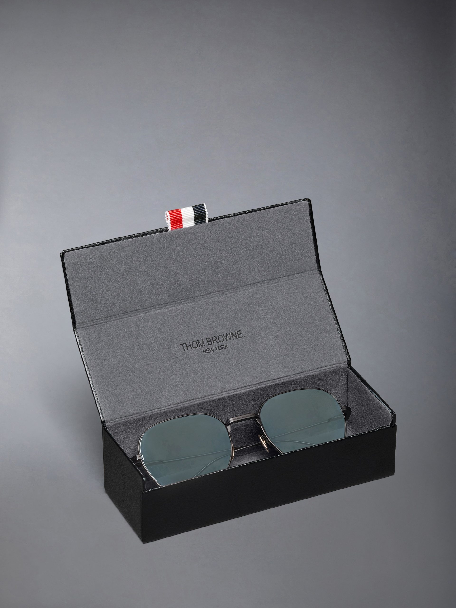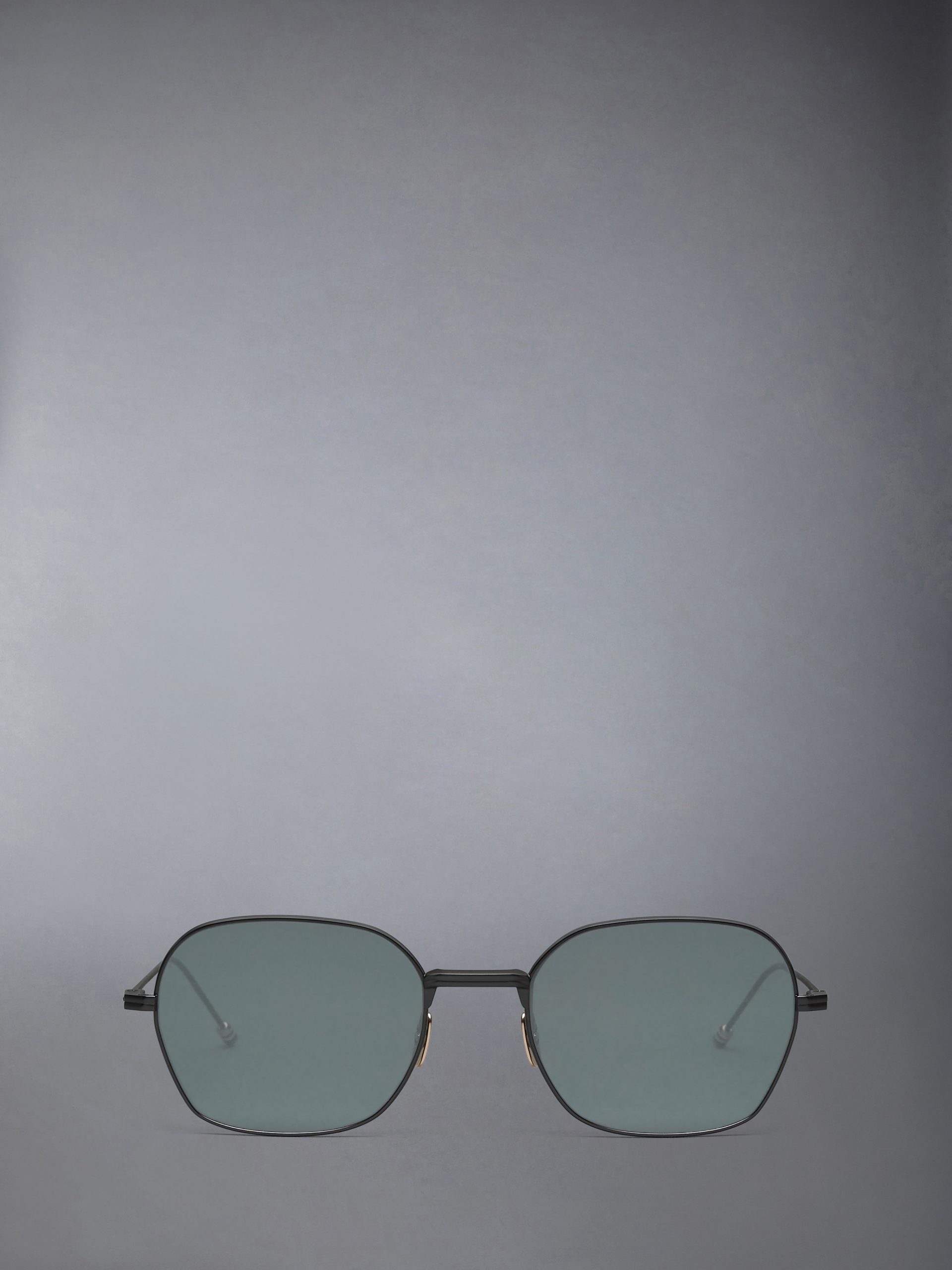 Minimal in aesthetic. measured in design. Made in Japan from premium materials. these frames reflect Thom Browne’s dedication to form and craft. distilled into an understated silhouette. Anti-reflective lenses reduce glare. enhance optical clarity. while signature 4-bar detailing and tricolor enamel temple tips complete the design.