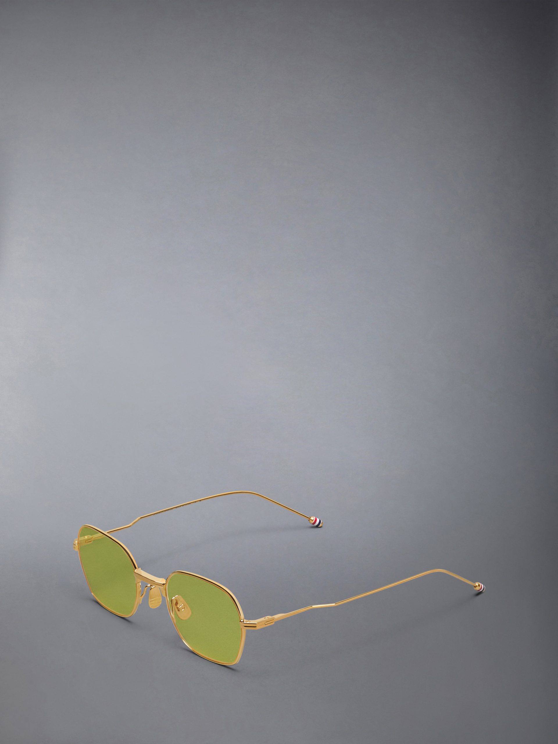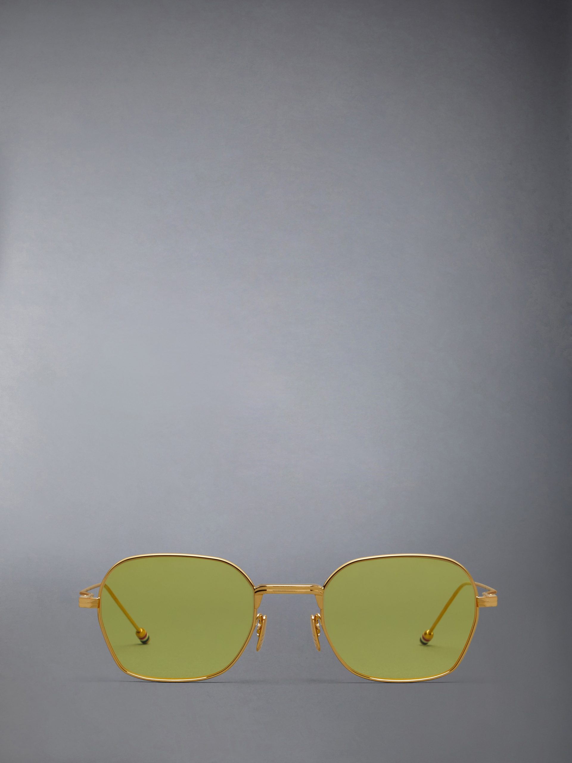 Thom continues to find new ways to evolve traditional silhouettes in an understated yet impactful manner. always approaching design with a meticulous attention to detail. These ultra-lightweight 18k gold-plated titanium frames are finished with our tricolor stripes at the temple tips and nose pads engraved with our signature 4-bar detailing. Japanese acetate lenses deliver stunning optical clarity and 100% UVA/UVB protection. while ergonomic nose pads offer a comfortable. pressure-free fit for all-day wear. These frames are the epitome of style. sophistication. and function.