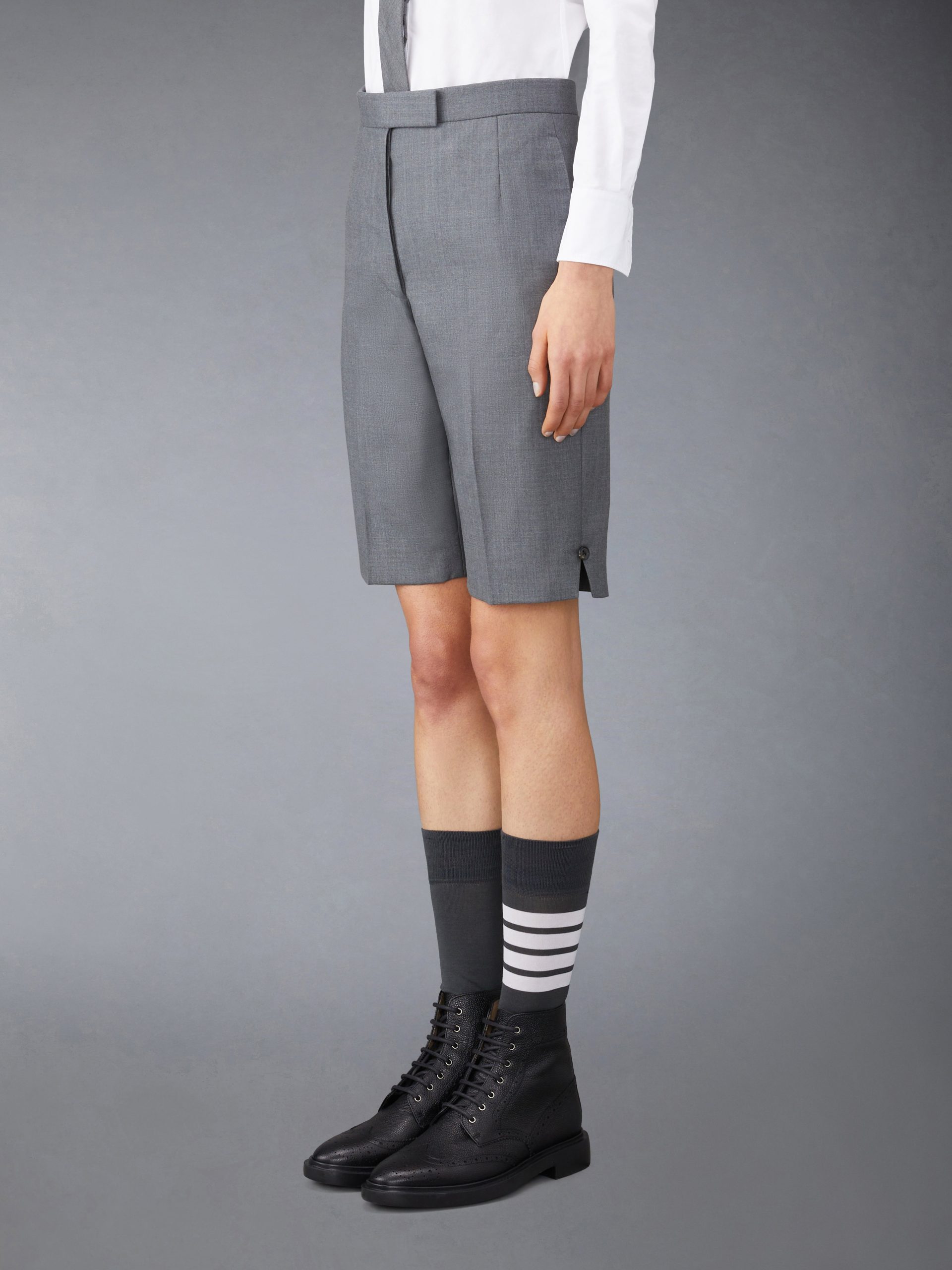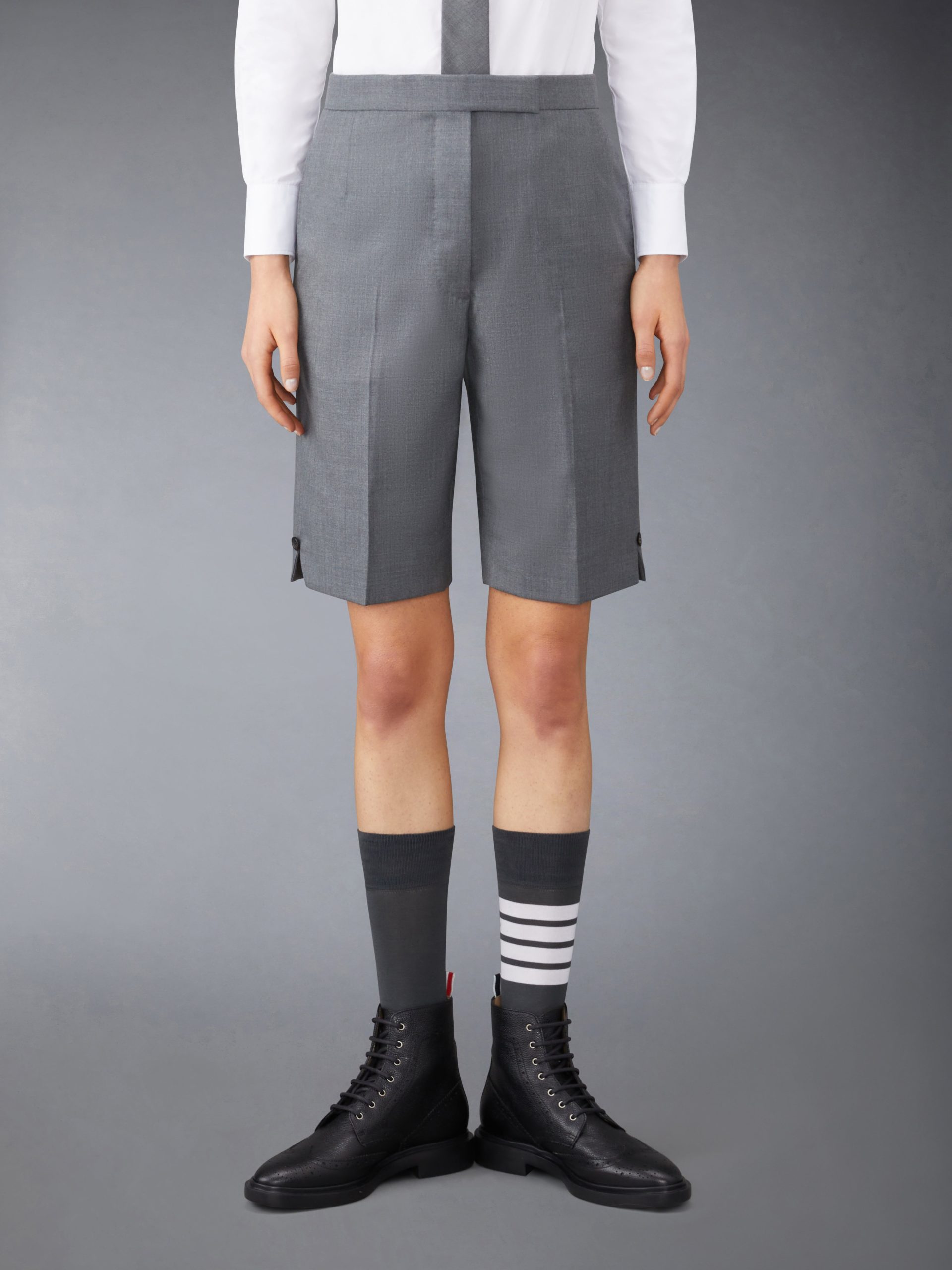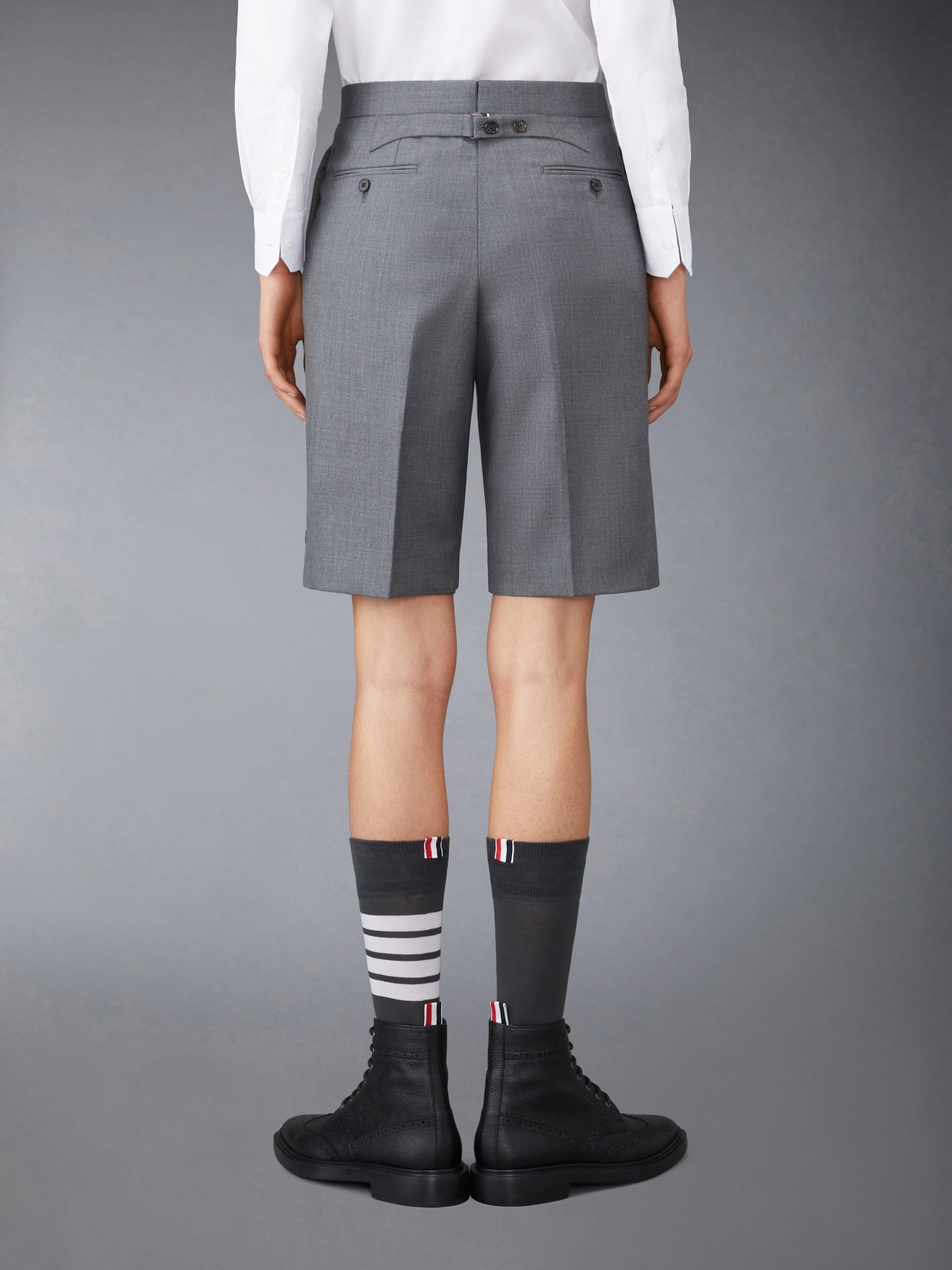 Our Classic Twill Backstrap Bermuda Shorts. Small side slits pay homage to Thom Browne distinguished tailoring.