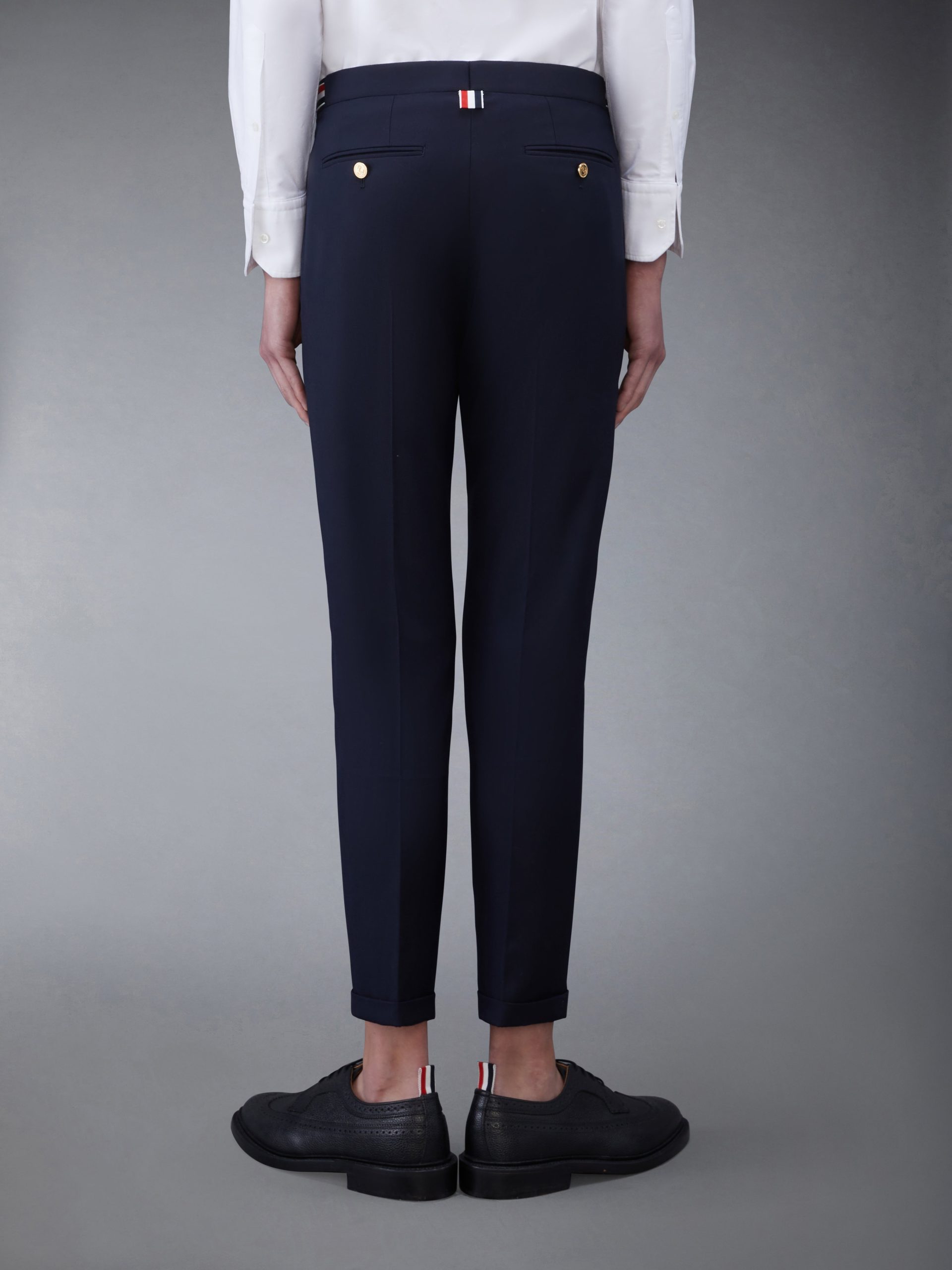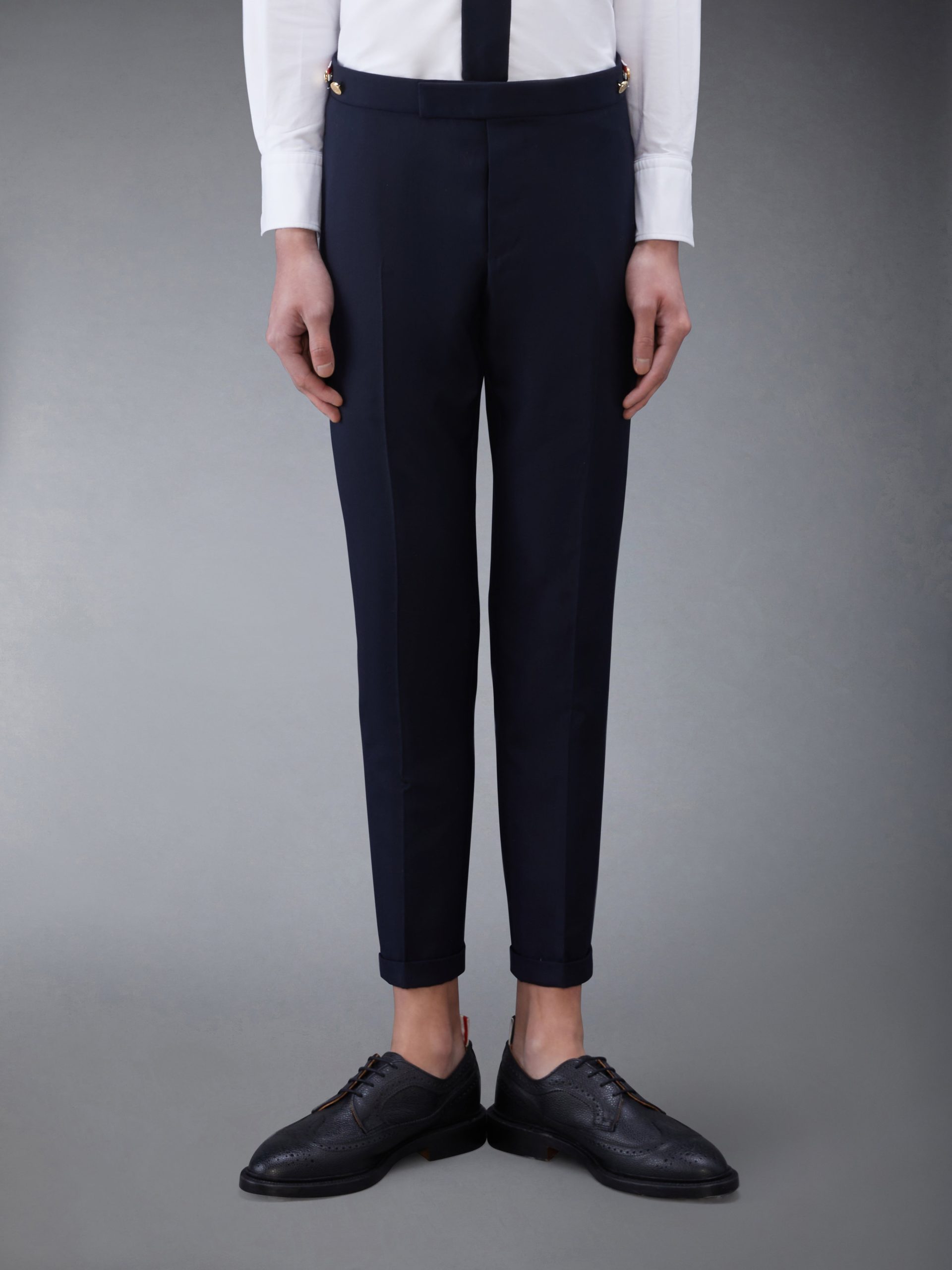 Our Twill Low Rise Trouser. The classic shortened hem pays homage to Thom Browne distinguished tailoring.